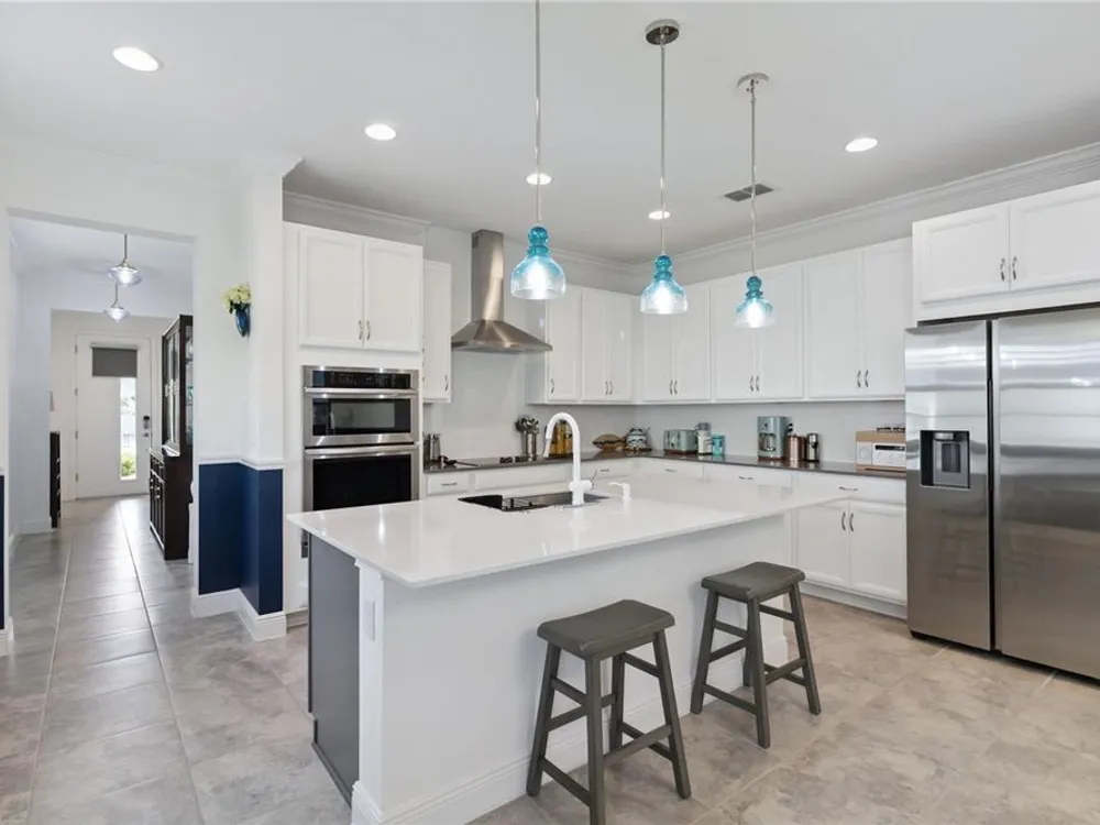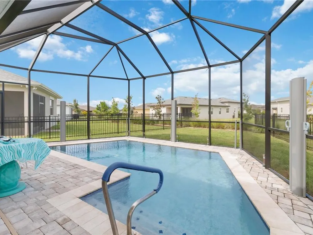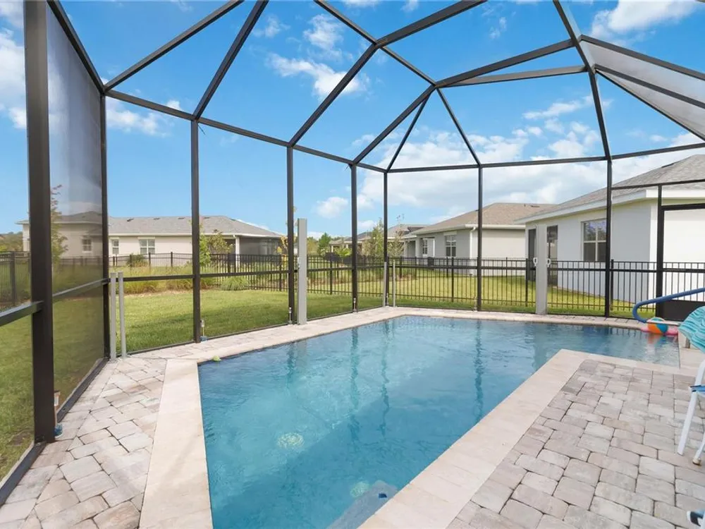 Unlimited Free Golf—Harmony Golf Preserve—Resort Style Living. If you would like the opportunity to play golf on this 18 hole, par 72, Johnny Miller Signature Design Course, every day of the year, read on. Check out this gorgeous 3 bedroom, 2 bath, 2 year old pool home, in the highly desirable, 55+ community, Lakes at Harmony. This beautiful home has all the bells and whistles, starting with the kitchen, a true chef’s delight, including upgraded stainless steel appliances, double built-in wall ovens, a beautiful quartz center island, and custom overhead lighting throughout. Centrally located, the kitchen overlooks the dining and family room areas, so you will never miss out on the fun when family and friends visit. Moving on, we have the perfect split bedroom plan with the owner’s suite conveniently located off the family room, and featuring a substantial walk-in closet, dual sinks, a private water closet, and beautiful tile, glassed-in shower. Ensuring the privacy of the owners and their guests, the secondary bedrooms are located towards the front of the home along with a spacious laundry room and shared bath, with a tiled tub and shower combo. Completing this stunning home is a 2 car garage just off the front entry and a covered screened lanai and custom built salt water pool, with retractable privacy screens surround. Ready to venture out, there is never a lack of things to do in Harmony from exploring one of 3 community pools, to taking one of several boats out on the lake for a lazy afternoon of fishing, and everything in between. Do as much or as little as you like. It is your choice. Harmony is an easy drive to Orlando International Airport, and to the pristine waters of the Atlantic coast. Harmony-balance, peace and fulfillment. Embrace it all. Make your appointment today.