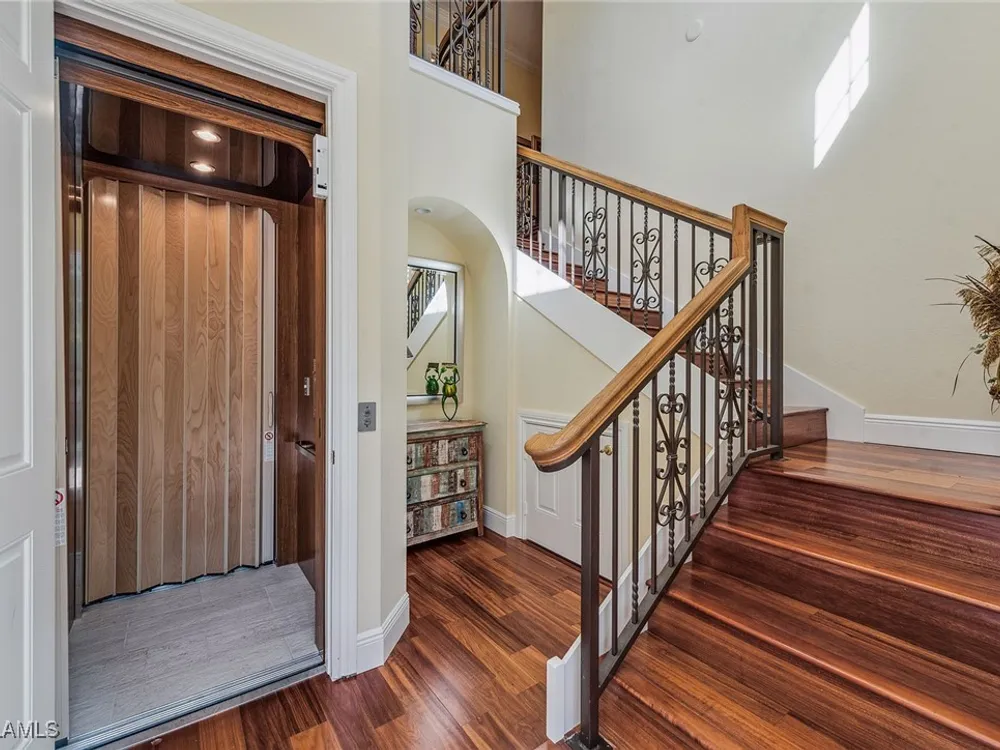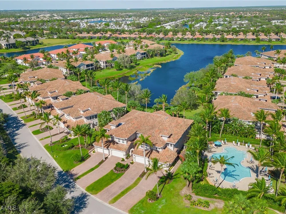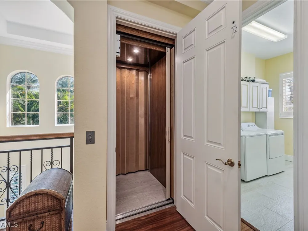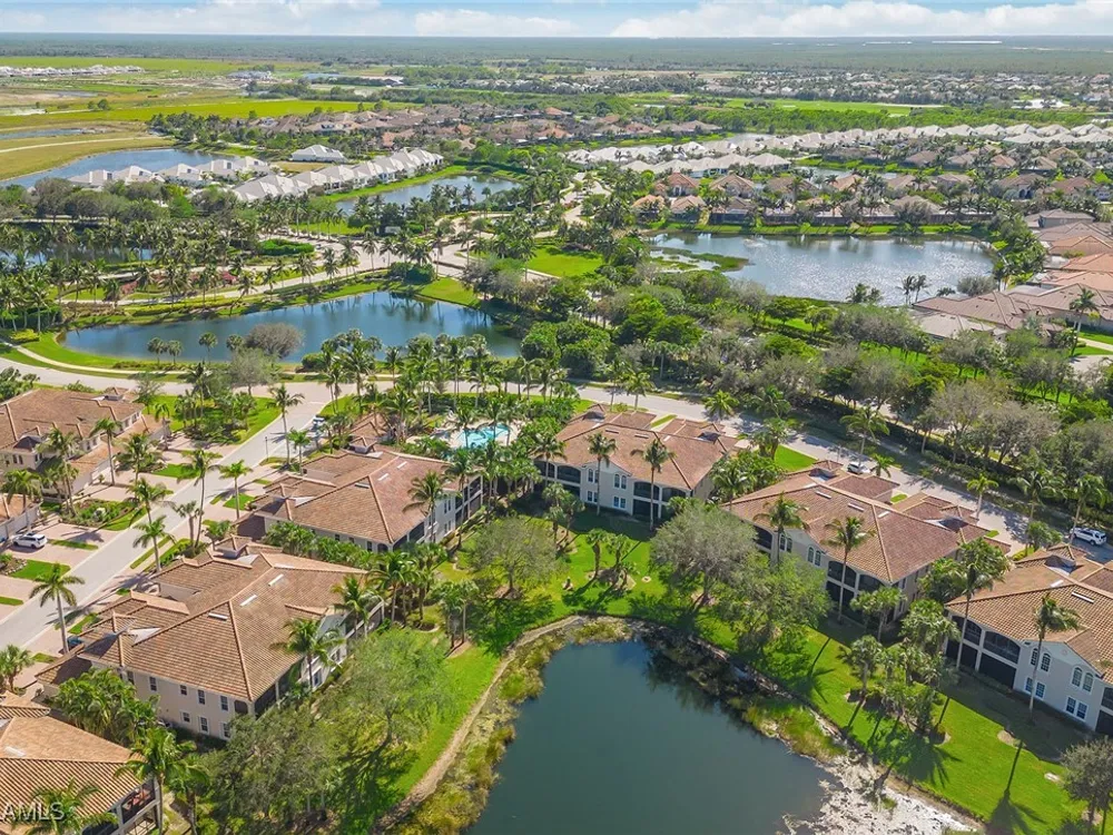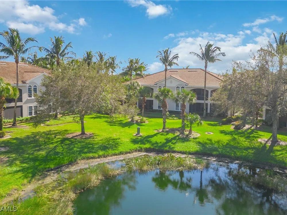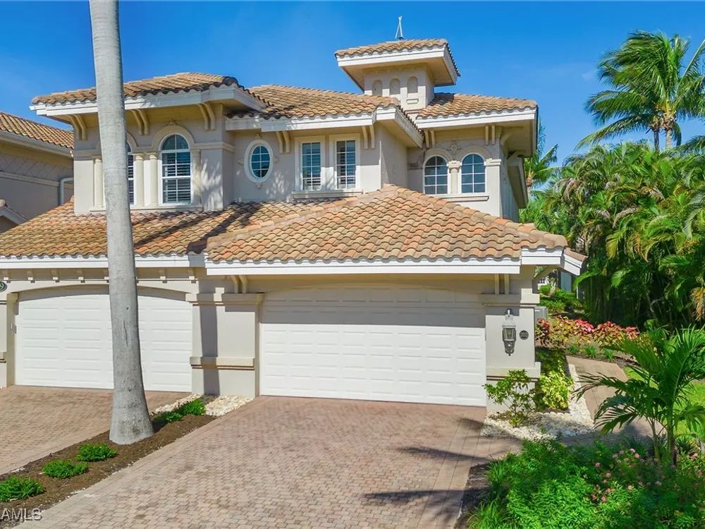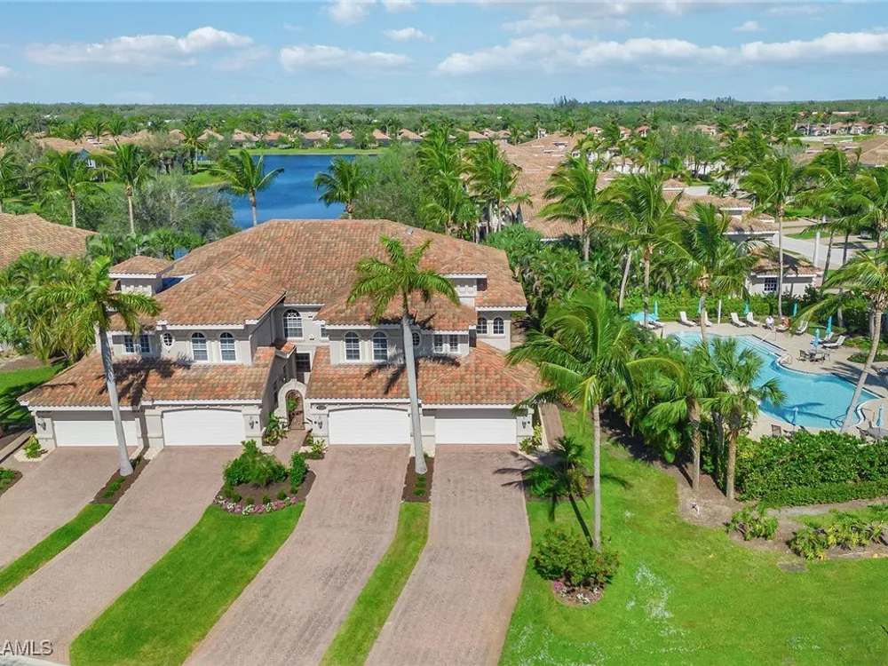 Enjoy an immaculately maintained top-floor coach home in Fiddler’s Creek with 3,010 square feet of luxurious living space, including three spacious bedrooms, each with its en-suite full bath, a private den and an attached two-car garage. Just near the community pool. The exterior features a newer tile roof, a brick paver driveway and walkway, and lush landscaping that ideally complements the home’s elegant design. Step inside to a grand foyer adorned with a soaring two-story tray ceiling, a private elevator and a wood staircase accented with wrought iron railings that lead to the main living area on the second floor. Every detail of the interior exudes sophistication, from the recessed lighting, upgraded fixtures and crown molding to the arched doorways, plantation shutters and hardwood floors that flow throughout the space. The heart of the home, the kitchen, is a chef's dream with stainless steel gas appliances, white cabinetry, under-cabinet lighting, granite countertops and backsplash, a French door pantry and a cozy eat-in area. This culinary haven seamlessly transitions into the open-concept family room, dining area and living room, all bathed in natural light and offering direct access to the expansive covered and screened-in lanai overlooking the lake. Here, you’ll find the ideal setting for entertaining or relaxation, with ample space for dining and lounging while taking in the serene water views. The owner’s suite is a private retreat, entered through French doors, and showcases two arched windows, a glass slider to the lanai, a wood-paneled feature wall, two walk-in closets, and a spa-like en-suite bath with dual vanities, a linen closet, a walk-in shower and a deep soaking tub. The two spacious guest bedrooms are equally inviting, each featuring en-suite baths with shower-tub combos and glass enclosures. Additional highlights include a den with French doors, a fully equipped laundry room and a tankless gas water heater. This exceptional residence lives like a single-family home and combines timeless elegance with modern convenience, all set within the unparalleled amenities and lifestyle of Fiddler's Creek. Residents of this gated award-winning resort community enjoy a state-of-the-art fitness center with trainers and classes, active pickleball and tennis programs, bocce ball, casual and fine dining, a resort-style pool and hot tub, sauna and steam rooms, spa services, and an extensive activity and event calendar. Optional golf memberships are available with no wait, with a spectacular new clubhouse and freshly renovated championship golf course. Beach and marina memberships are also available. Ideally close to a Publix and just a short drive to Old Naples and Marco Island, including shopping, dining, beaches, yacht clubs, executive airport, nature preserves, museums, galleries, parks, paddleboarding, kayaking and everything we love about life in Southwest Florida!