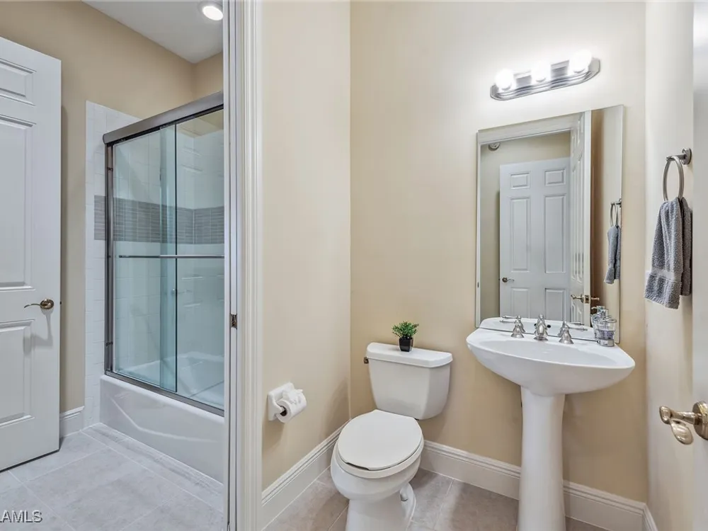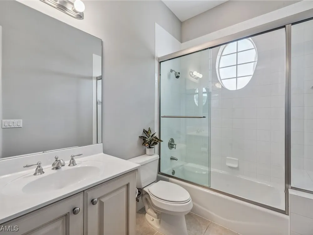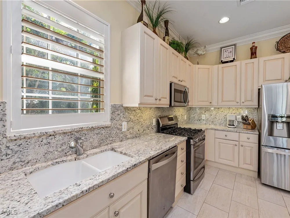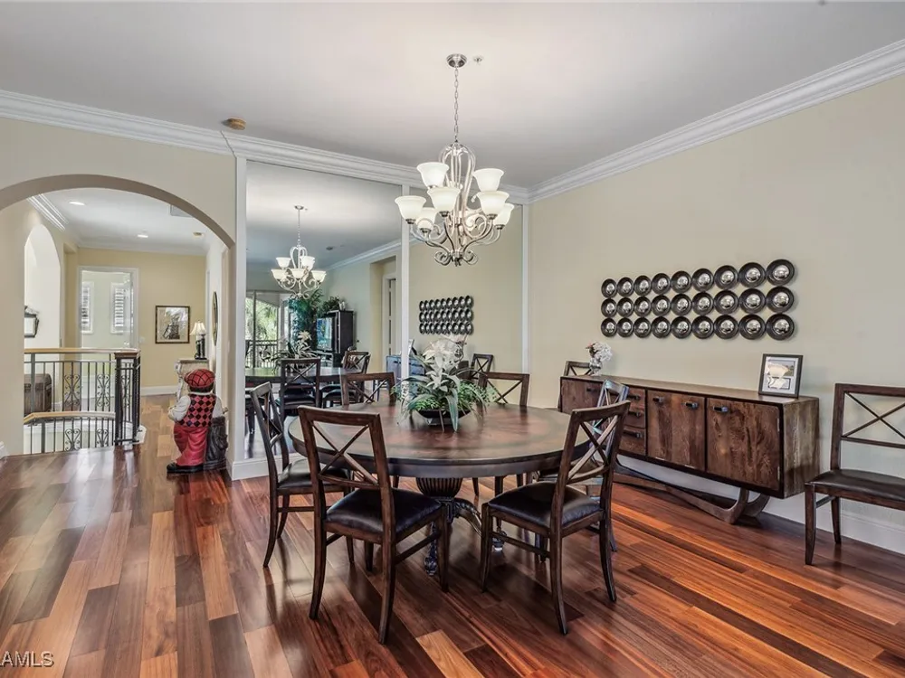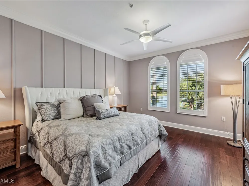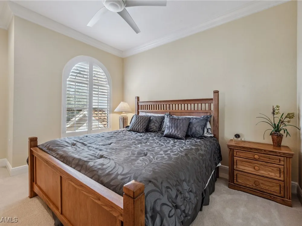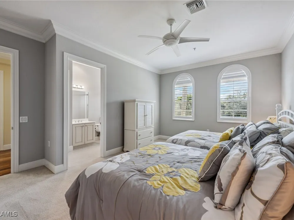 Enjoy an immaculately maintained top-floor coach home in Fiddler’s Creek with 3,010 square feet of luxurious living space, including three spacious bedrooms, each with its en-suite full bath, a private den and an attached two-car garage. Just near the community pool. The exterior features a newer tile roof, a brick paver driveway and walkway, and lush landscaping that ideally complements the home’s elegant design. Step inside to a grand foyer adorned with a soaring two-story tray ceiling, a private elevator and a wood staircase accented with wrought iron railings that lead to the main living area on the second floor. Every detail of the interior exudes sophistication, from the recessed lighting, upgraded fixtures and crown molding to the arched doorways, plantation shutters and hardwood floors that flow throughout the space. The heart of the home, the kitchen, is a chef's dream with stainless steel gas appliances, white cabinetry, under-cabinet lighting, granite countertops and backsplash, a French door pantry and a cozy eat-in area. This culinary haven seamlessly transitions into the open-concept family room, dining area and living room, all bathed in natural light and offering direct access to the expansive covered and screened-in lanai overlooking the lake. Here, you’ll find the ideal setting for entertaining or relaxation, with ample space for dining and lounging while taking in the serene water views. The owner’s suite is a private retreat, entered through French doors, and showcases two arched windows, a glass slider to the lanai, a wood-paneled feature wall, two walk-in closets, and a spa-like en-suite bath with dual vanities, a linen closet, a walk-in shower and a deep soaking tub. The two spacious guest bedrooms are equally inviting, each featuring en-suite baths with shower-tub combos and glass enclosures. Additional highlights include a den with French doors, a fully equipped laundry room and a tankless gas water heater. This exceptional residence lives like a single-family home and combines timeless elegance with modern convenience, all set within the unparalleled amenities and lifestyle of Fiddler's Creek. Residents of this gated award-winning resort community enjoy a state-of-the-art fitness center with trainers and classes, active pickleball and tennis programs, bocce ball, casual and fine dining, a resort-style pool and hot tub, sauna and steam rooms, spa services, and an extensive activity and event calendar. Optional golf memberships are available with no wait, with a spectacular new clubhouse and freshly renovated championship golf course. Beach and marina memberships are also available. Ideally close to a Publix and just a short drive to Old Naples and Marco Island, including shopping, dining, beaches, yacht clubs, executive airport, nature preserves, museums, galleries, parks, paddleboarding, kayaking and everything we love about life in Southwest Florida!