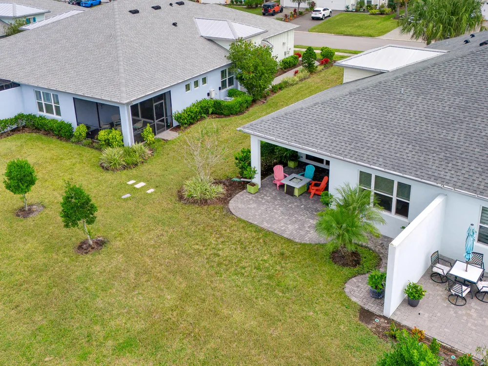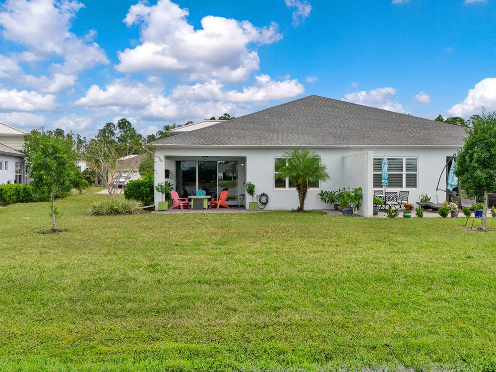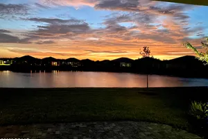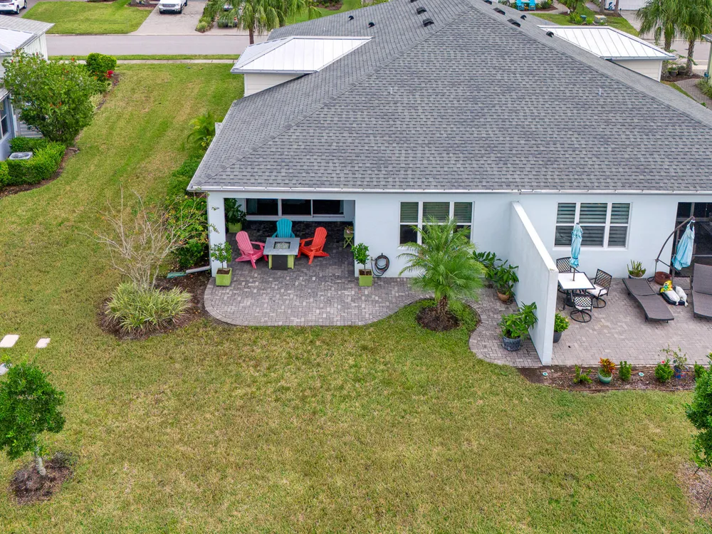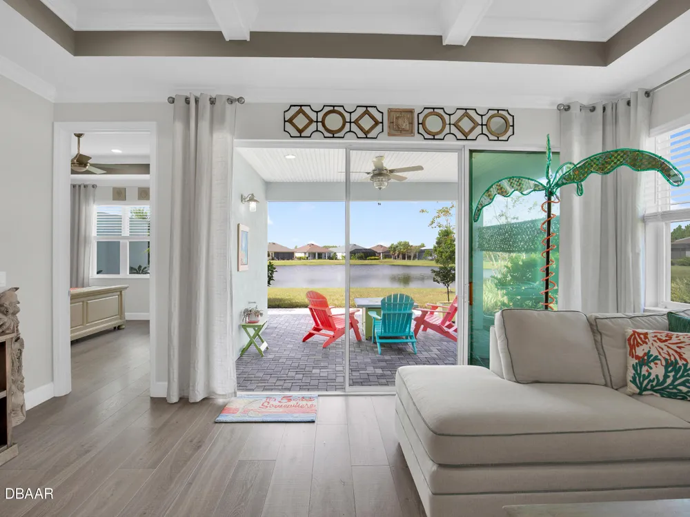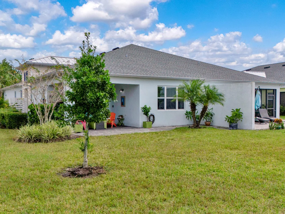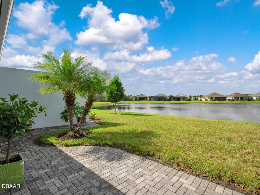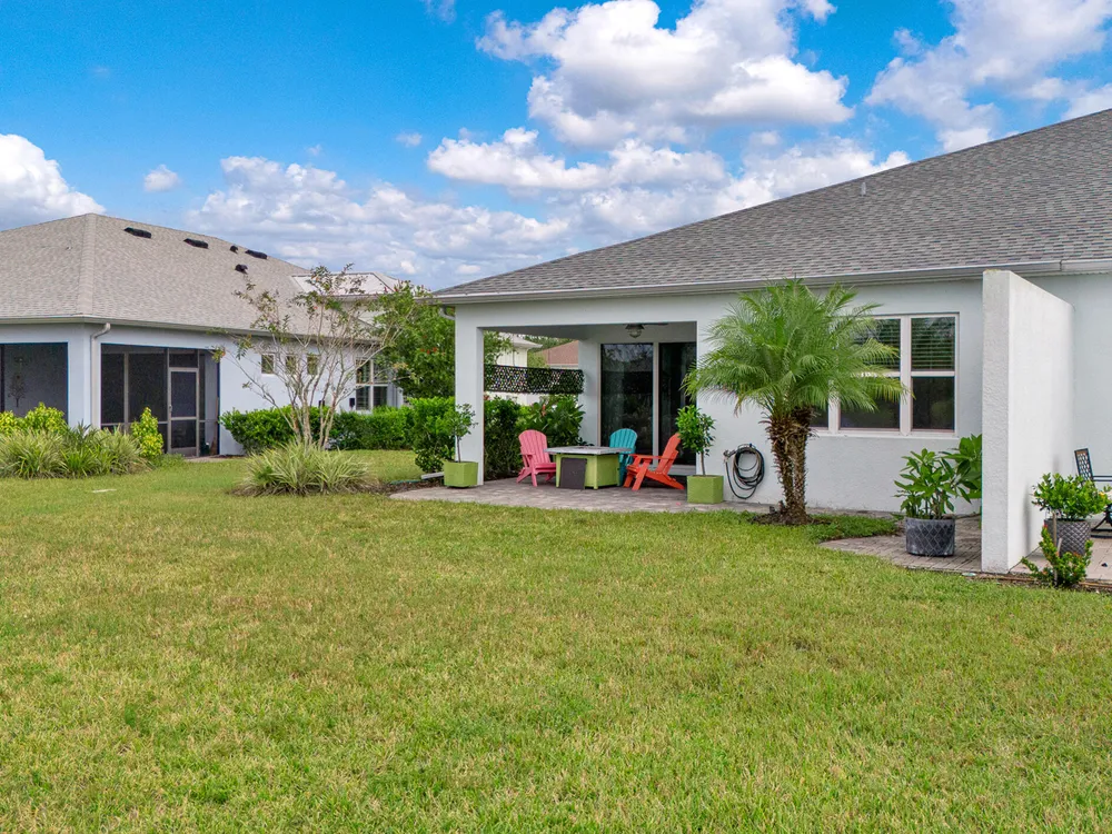GORGEOUS POND VIEW ALONG WITH DESIGNER FINISHES IN THIS ANTIGUA VILLA IN Phase 1! PERFECTION! This stunning home sits gracefully on a quiet street, offering long serene water views & extra green space alongside for added privacy. Upgraded landscaping & professionally designed lighting elevate curb appeal. Inside,8 ft doors, coastal plank LVP & crown molding flow throughout, complemented by neutral light gray walls for a fresh, airy feel. Subtle details everywhere. Chef's kitchen features white crown-molded cabinetry, quartz counters, subway tile backsplash, upgraded hardware, high-end pendant lighting, gas range & low-profile microwave. A shiplap-accented dining area & coffered-ceiling great room w/ recessed lighting create inviting spaces to gather. The open den offers flexibility for work or relaxation. The primary suite boasts pond views, tray ceiling & accent wall w/ ensuite bath showcasing seamless glass walk-in shower, white cabinetry & striking tilework with listello detail. The Guest bath mirrors these upscale finishes and includes a tub. Step onto the extended paver lanai surrounded by upgraded palms and lush landscapingyour private oasis on the water. Upgraded HAVC . All this and a short golf cart ride away from amazing 5 star amenities, fitness center, pickleball courts, band shell with weekend live music, paradise pool and sports pool.