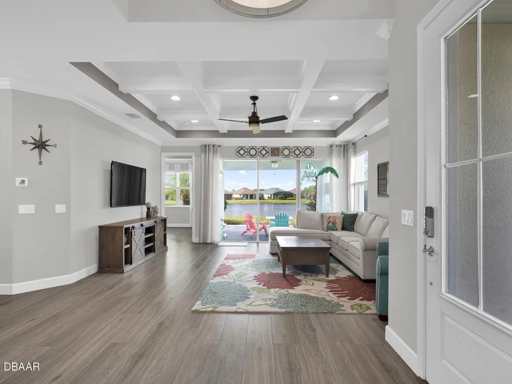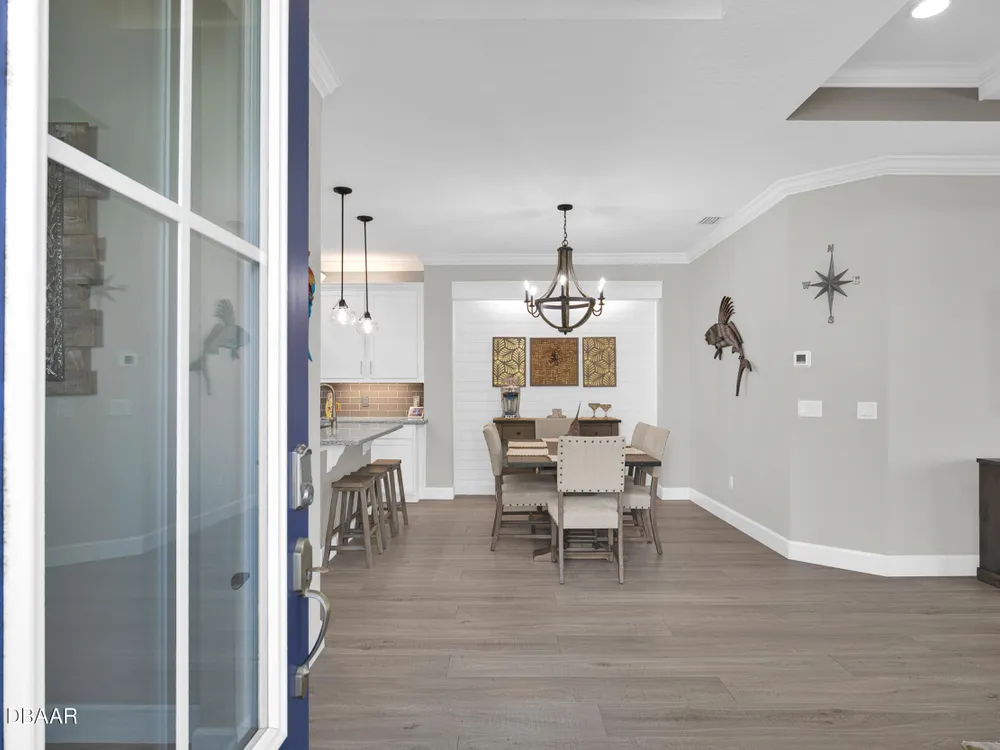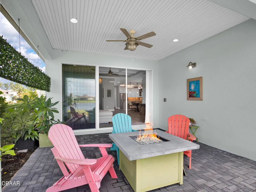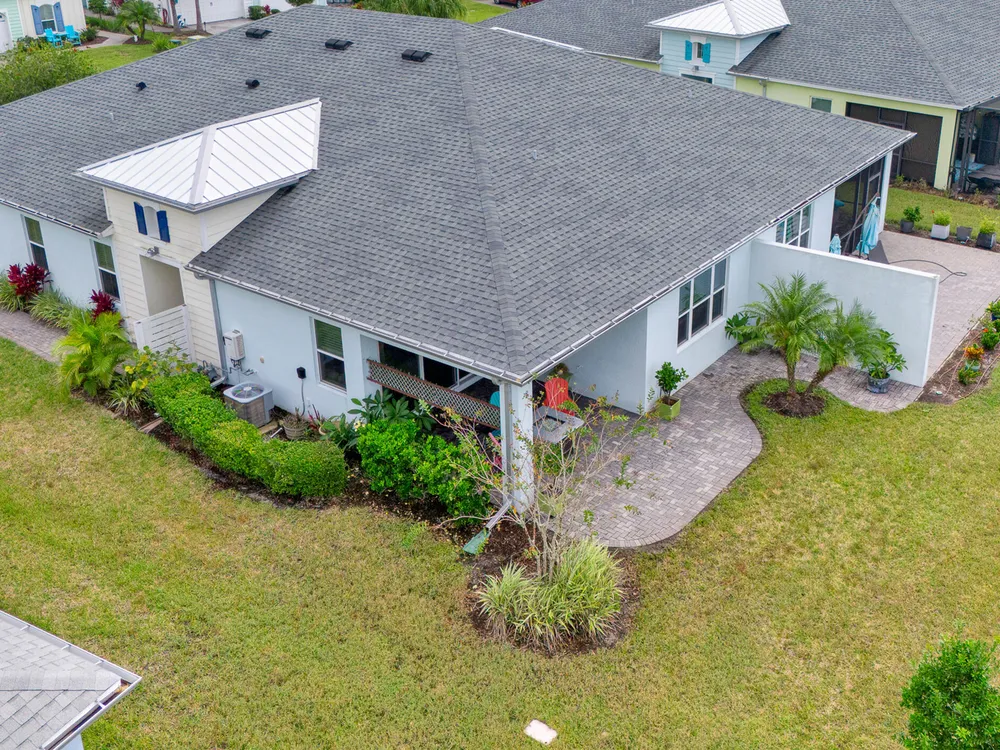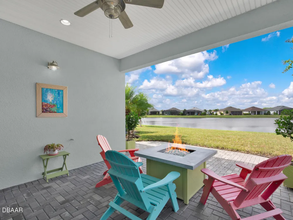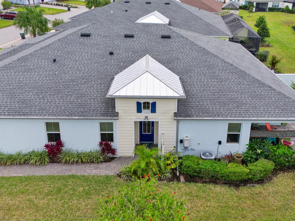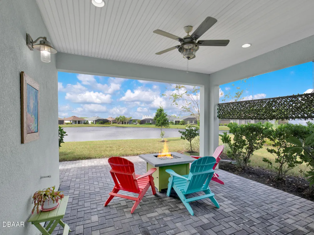 GORGEOUS POND VIEW ALONG WITH DESIGNER FINISHES IN THIS ANTIGUA VILLA IN Phase 1! PERFECTION! This stunning home sits gracefully on a quiet street, offering long serene water views & extra green space alongside for added privacy. Upgraded landscaping & professionally designed lighting elevate curb appeal. Inside,8 ft doors, coastal plank LVP & crown molding flow throughout, complemented by neutral light gray walls for a fresh, airy feel. Subtle details everywhere. Chef's kitchen features white crown-molded cabinetry, quartz counters, subway tile backsplash, upgraded hardware, high-end pendant lighting, gas range & low-profile microwave. A shiplap-accented dining area & coffered-ceiling great room w/ recessed lighting create inviting spaces to gather. The open den offers flexibility for work or relaxation. The primary suite boasts pond views, tray ceiling & accent wall w/ ensuite bath showcasing seamless glass walk-in shower, white cabinetry & striking tilework with listello detail. The Guest bath mirrors these upscale finishes and includes a tub. Step onto the extended paver lanai surrounded by upgraded palms and lush landscapingyour private oasis on the water. Upgraded HAVC . All this and a short golf cart ride away from amazing 5 star amenities, fitness center, pickleball courts, band shell with weekend live music, paradise pool and sports pool.