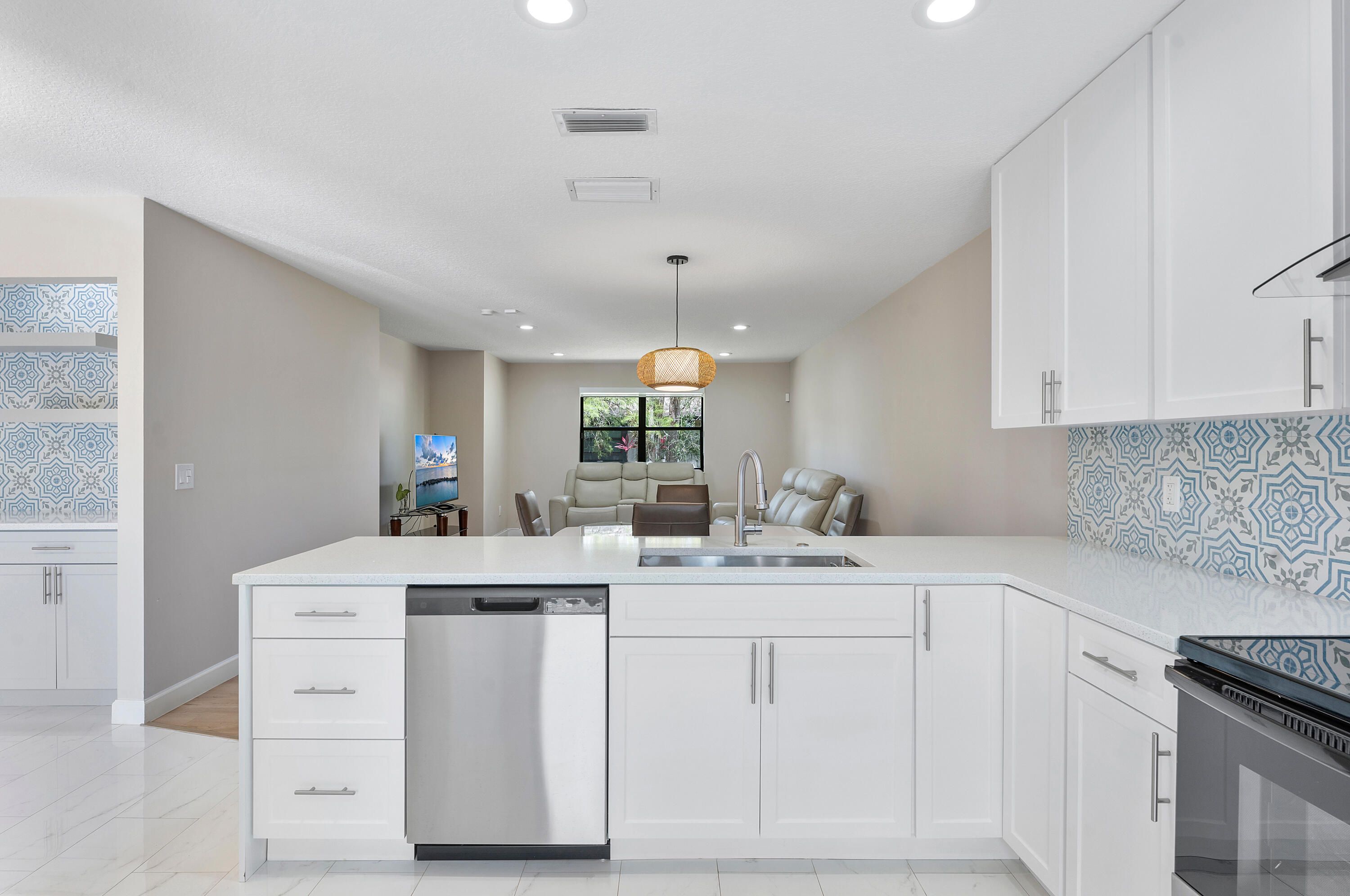Stunning unit, immaculate, move-in ready! Fully renovated 3-bedroom villa nestled in a peaceful neighborhood, offering the perfect blend of modern style and everyday comfort. The open-concept layout is flooded with natural light and features a brand-new kitchen with quartz countertops, stainless steel appliances, soft-close cabinets, and a spacious island that doubles as a breakfast bar. The elegant dining area is ideal for gatherings. All bedrooms are generously sized with ample closets, and the primary suite includes a walk-in closet with room to create a beautiful ensuite bath. This home is move-in ready. Don't miss the opportunity to own this gem!