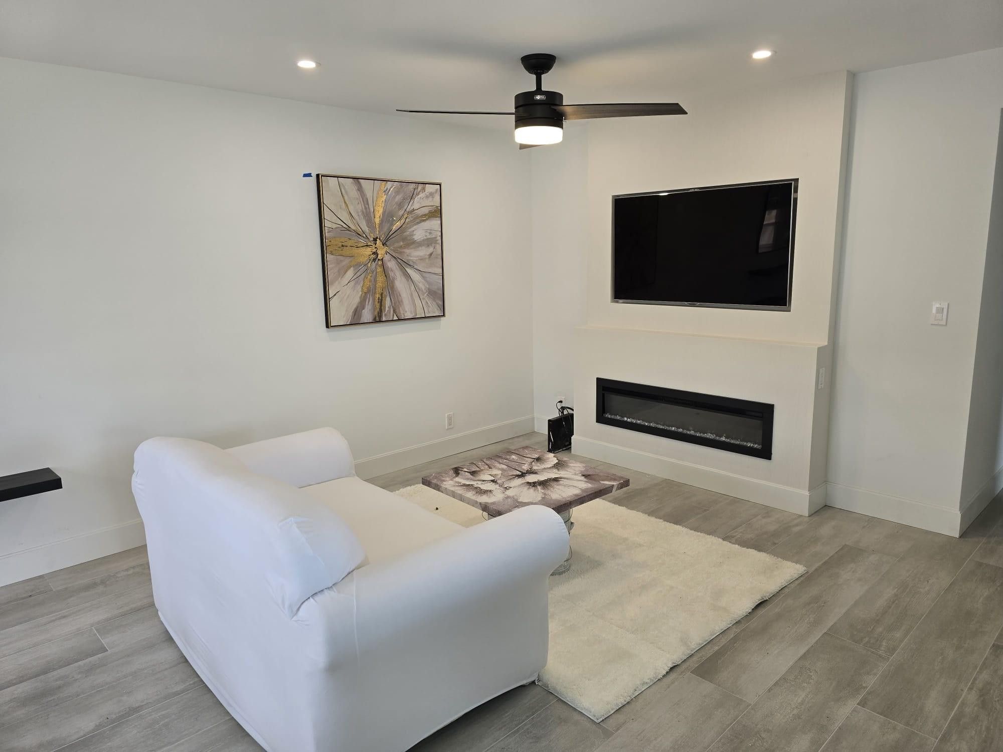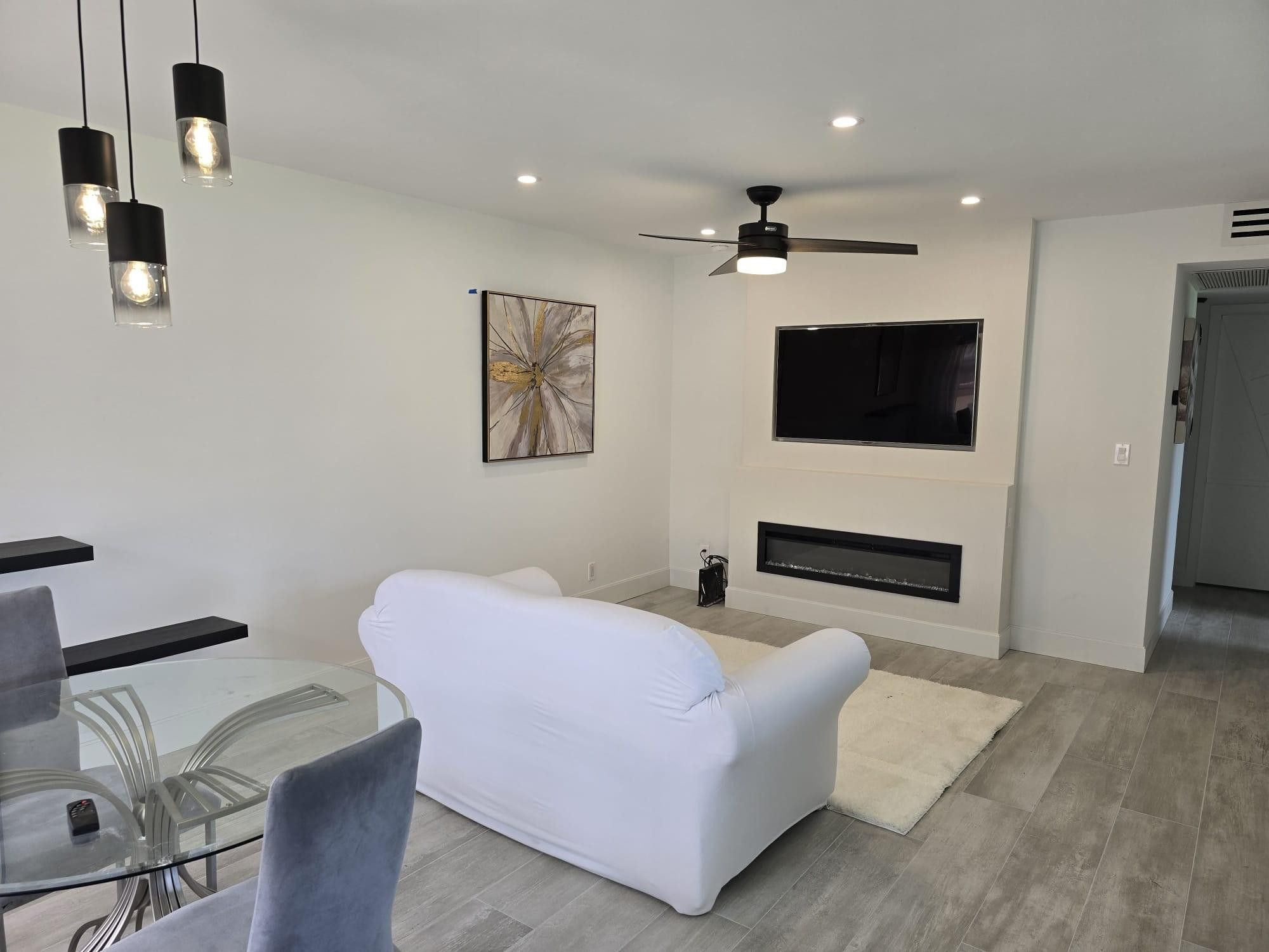 Comfortable corner unit with plenty of natural light on the 2nd floor of 3 story condo builidng. Fully renovated with abundant cabinet space in kitchen, electric fireplace, new central air, water heater, electrical panel, baths, and accent lighting. All Smart appliances wifi ready Age restricted, 55+ community.