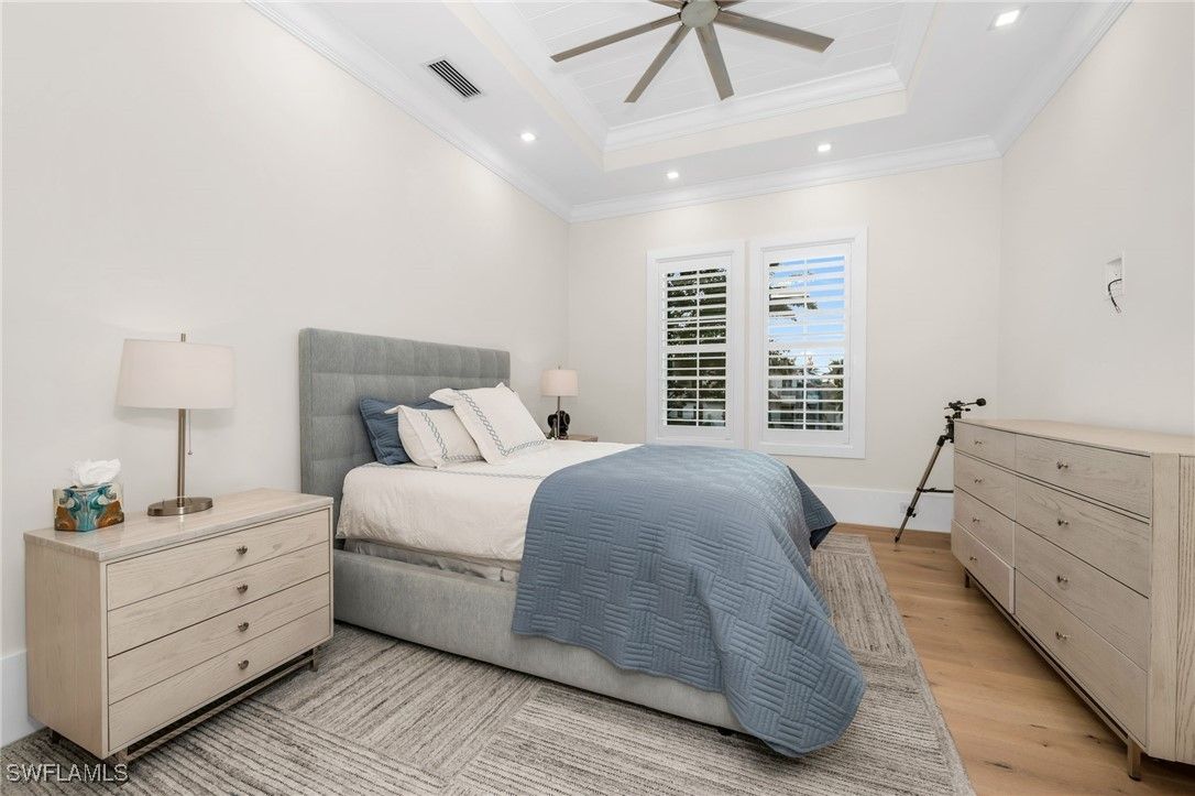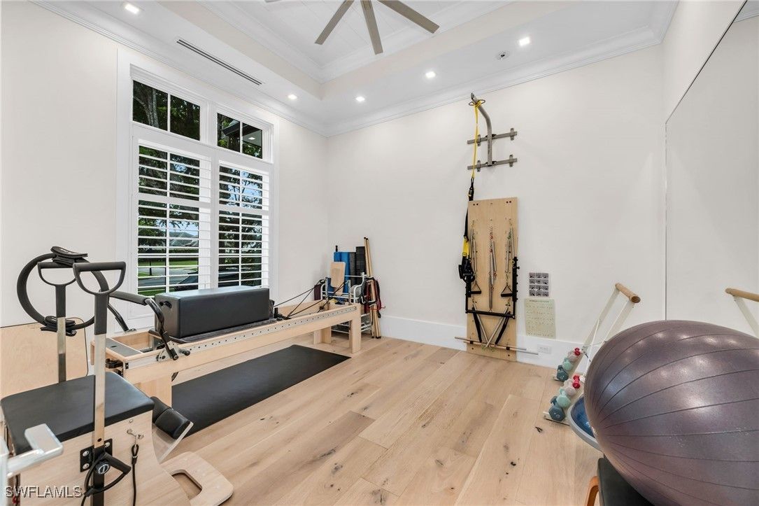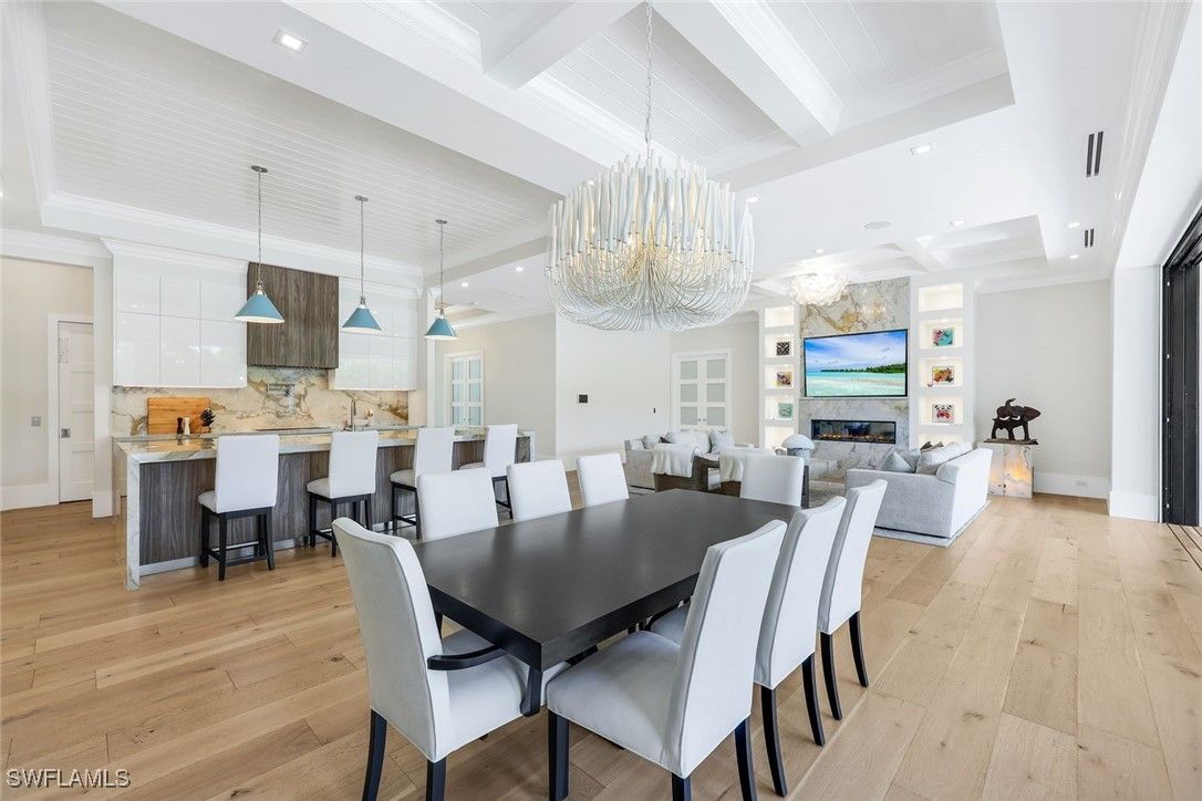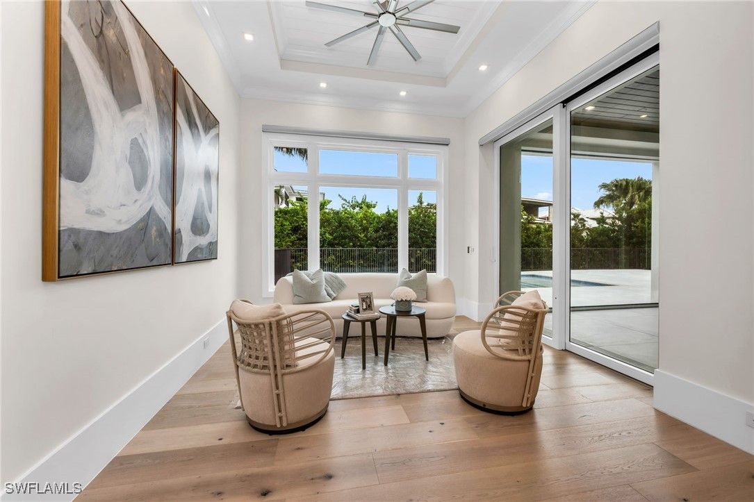 Stunning 2023 custom built home meticulously designed by Clive Daniel and Robb & Stucky interiors, furniture negotiable and features 5 bedroom/en suites, plus a Pilates/yoga studio. CHECK OUT THE VIDEO! This home is designed to be handicap friendly with an elevator that takes you from the garage level up to the main floor and second floor of the home, perfect for heavy lifting. The primary bedroom features his and her walk-in California Closets, a large walk in shower, a free standing tub, electric blackout hunter Douglas shades and 2 private Japanese smart toilet rooms. Entire home offers an array of technology throughout and is powered by Savant Automations’ new *brilliant smart home system* with video audio and sound controlled from every area of the house linked to your smart phone. As you walk through this well thought out floor plan, you will find an expansive family room with floor to ceiling Anderson pocket sliding glass doors that allows plenty of natural light with wide plank legno bastone flooring throughout. The family room will lead you into the oversized Chef's Kitchen with Sub-Zero Wolf and Asko Appliances with a full butler's pantry and 2 sub zero wine towers with 4 refrigeration drawers. The second floor offers 3 en-suites with private balconies along with a large bonus room that can be used as a home theatre set up or game room. Relax by your Resort Style salt water pool/spa surrounded by Brazilian trees while enjoying the Florida weather that also features a 900 sq foot lanai area with electric roll down screens and shutters, a fireplace, mounted 85” TV with 10 outdoor speakers perfect for entertaining. A built-in summer kitchen with outdoor subzero refrigeration and ice maker. This Moorings masterpiece has it all and touched by all. Within minutes to Historic Downtown Naples, white sugar Sand Gulf Beaches, and all that Naples has to offer! Just 1.5 miles to four seasons and waterside shops. Truly a rare find! 12 Foot Elevation.