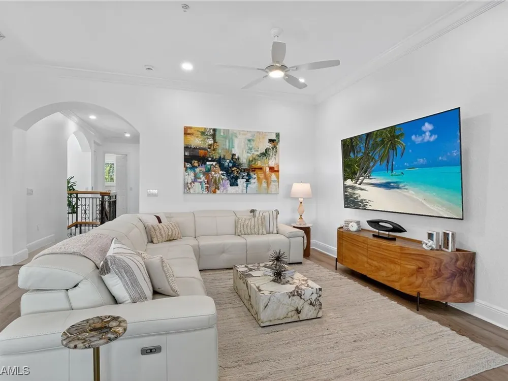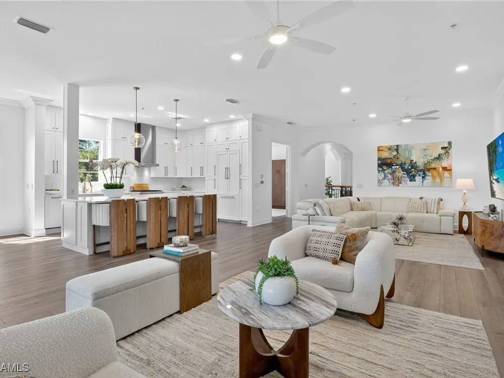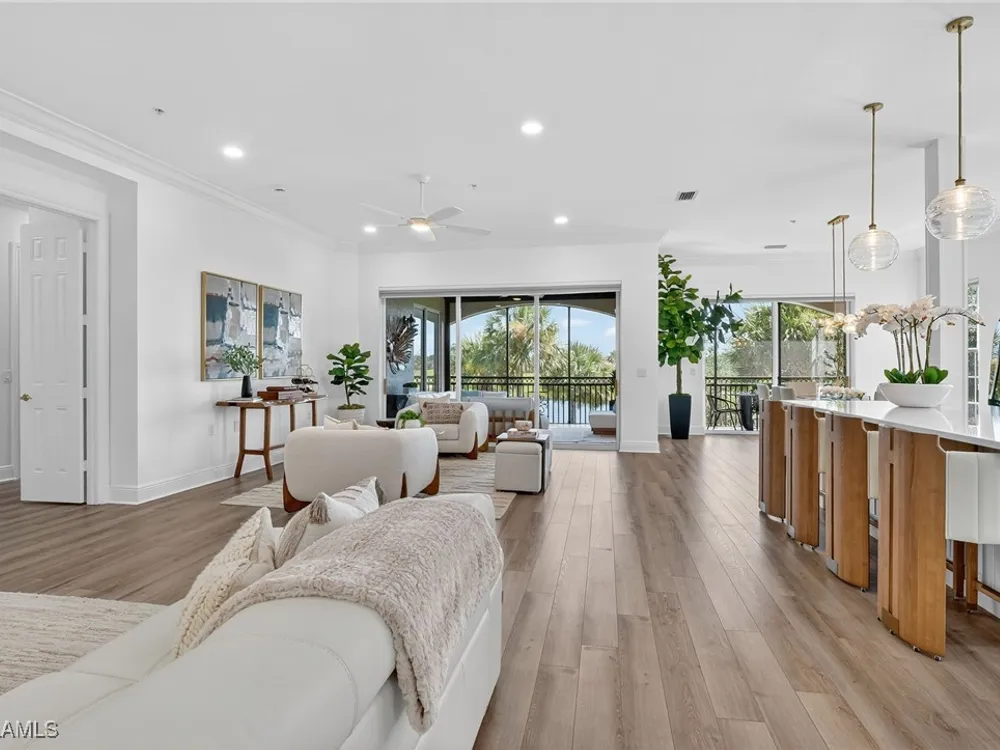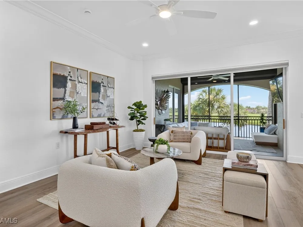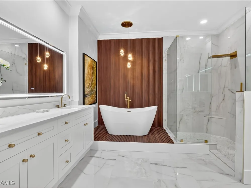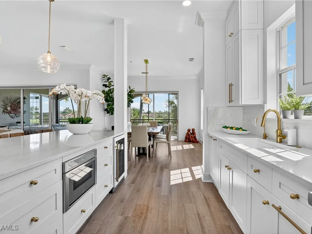 SELLER TO CONTRIBUTE $15,000 TOWARDS THE ONE-TIME CAPITAL AQUISITION FEE!! Modern elegance meets tranquil living in this remodeled coach home in the sought-after Serena neighborhood of Fiddler’s Creek. This stunning end-unit coach home, on a cul-de-sac, offers privacy, elegance, and sleek design. With 3 bedrooms plus a den, 3 full baths, and a 2-car garage, every detail has been elevated with high-end, designer upgrades. A two-story entryway sets the tone for this light-filled residence, which includes the convenience of a new private elevator. Crown molding, wood flooring, plantation shutters, and all-new modern lighting create a refined, yet serene atmosphere throughout. The open-concept kitchen is a chef’s dream, complete with ceiling-height cabinetry, quartz countertops and backsplash, Thermador stainless steel appliances, a gas range with hood, paneled refrigerator, and an oversized island that doubles as a gathering space. The primary suite is a true retreat, featuring a spa-inspired bath with marble floors, dual vanities, a frameless glass shower, and a show stopper free standing tub for the ultimate zen escape. Both guest suites are generously sized with large closets, beautifully remodeled en-suite baths, and plenty of privacy. Outdoors, the spacious screened lanai overlooks tranquil water views and is outfitted with electric storm shutters for peace of mind. Residents of Fiddler’s Creek enjoy access to world-class amenities, including a 54,000-square-foot Club & Spa with two on-site restaurants, resort-style pools, fitness center, tennis, pickleball, and bocce courts. Optional memberships are available for golf, beach, and boating. Ideally located just minutes from the white-sand beaches of Marco Island, downtown Naples, and an array of shopping and dining destinations.