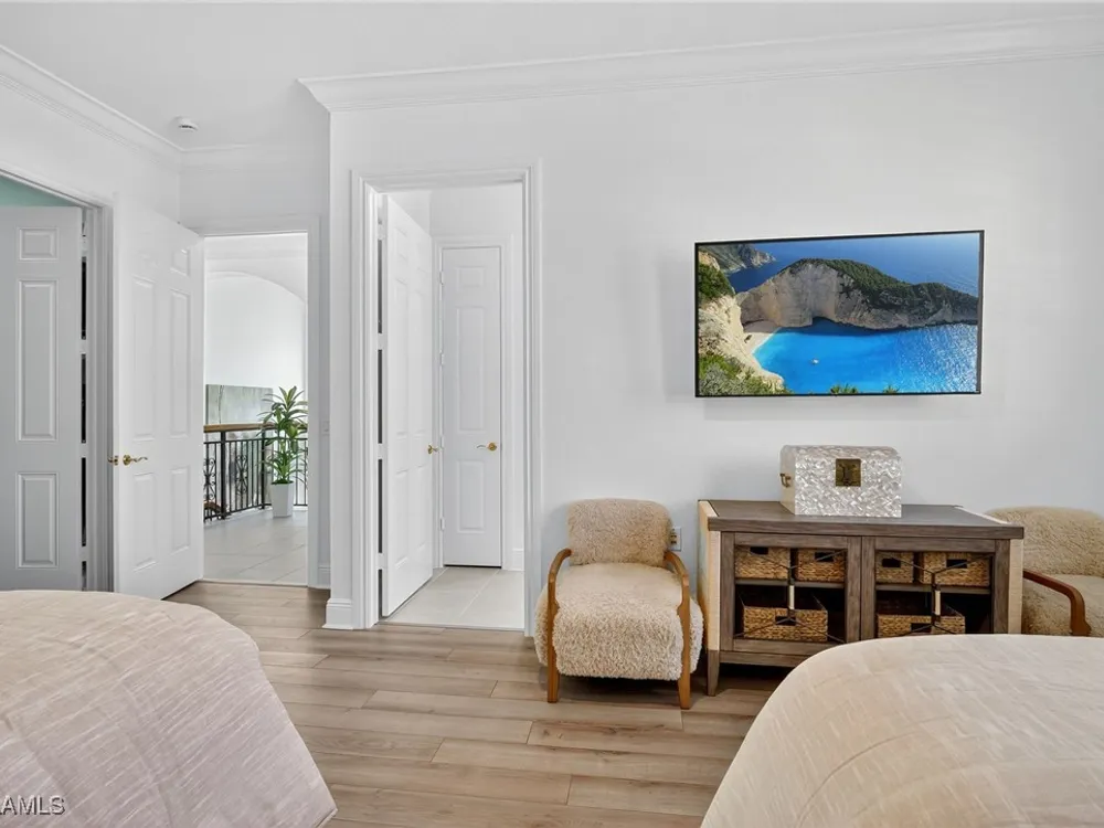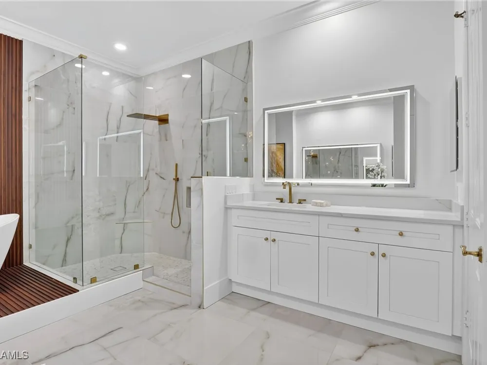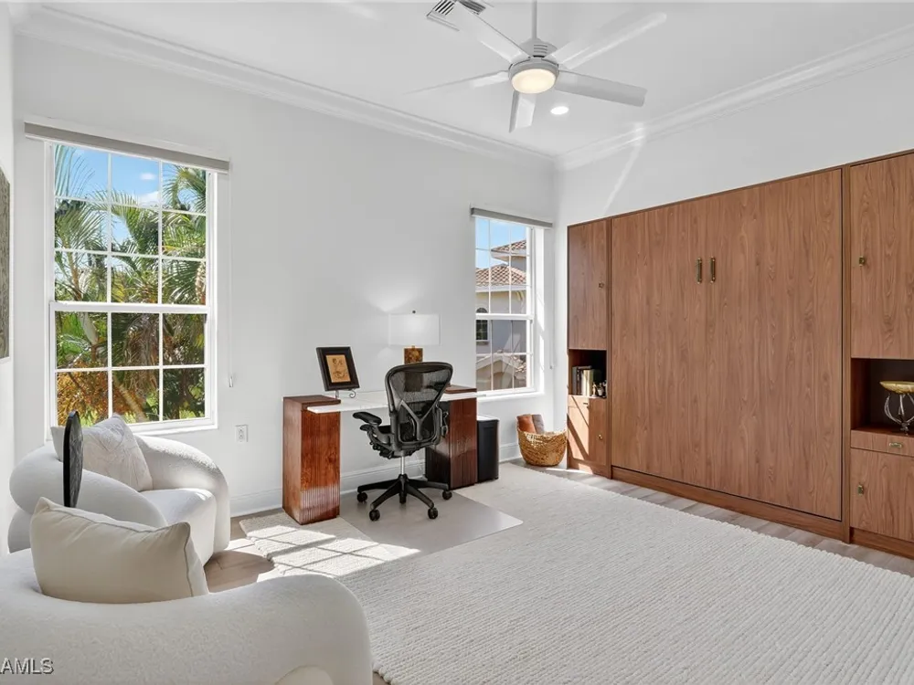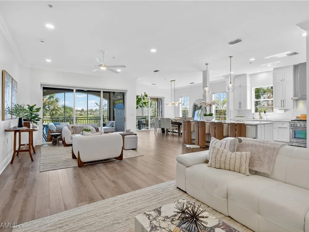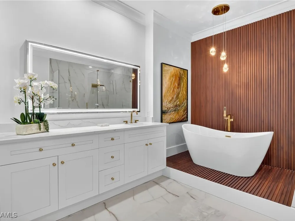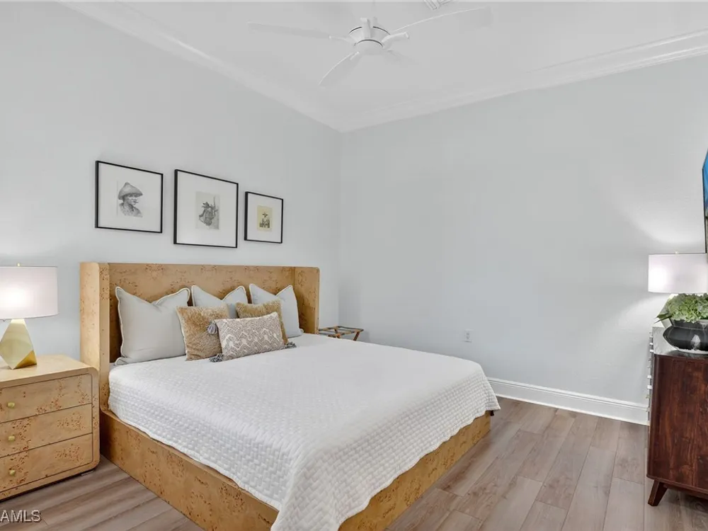 SELLER TO CONTRIBUTE $15,000 TOWARDS THE ONE-TIME CAPITAL AQUISITION FEE!! Modern elegance meets tranquil living in this remodeled coach home in the sought-after Serena neighborhood of Fiddler’s Creek. This stunning end-unit coach home, on a cul-de-sac, offers privacy, elegance, and sleek design. With 3 bedrooms plus a den, 3 full baths, and a 2-car garage, every detail has been elevated with high-end, designer upgrades. A two-story entryway sets the tone for this light-filled residence, which includes the convenience of a new private elevator. Crown molding, wood flooring, plantation shutters, and all-new modern lighting create a refined, yet serene atmosphere throughout. The open-concept kitchen is a chef’s dream, complete with ceiling-height cabinetry, quartz countertops and backsplash, Thermador stainless steel appliances, a gas range with hood, paneled refrigerator, and an oversized island that doubles as a gathering space. The primary suite is a true retreat, featuring a spa-inspired bath with marble floors, dual vanities, a frameless glass shower, and a show stopper free standing tub for the ultimate zen escape. Both guest suites are generously sized with large closets, beautifully remodeled en-suite baths, and plenty of privacy. Outdoors, the spacious screened lanai overlooks tranquil water views and is outfitted with electric storm shutters for peace of mind. Residents of Fiddler’s Creek enjoy access to world-class amenities, including a 54,000-square-foot Club & Spa with two on-site restaurants, resort-style pools, fitness center, tennis, pickleball, and bocce courts. Optional memberships are available for golf, beach, and boating. Ideally located just minutes from the white-sand beaches of Marco Island, downtown Naples, and an array of shopping and dining destinations.