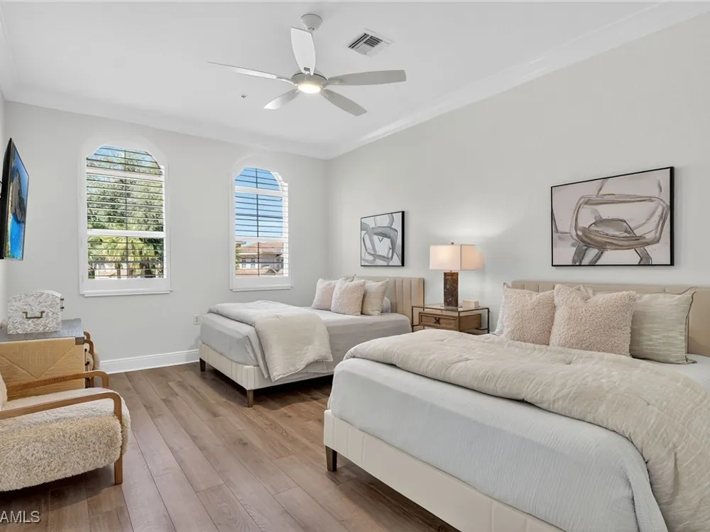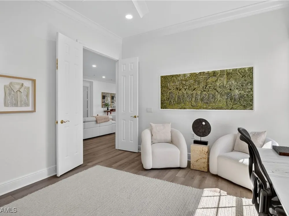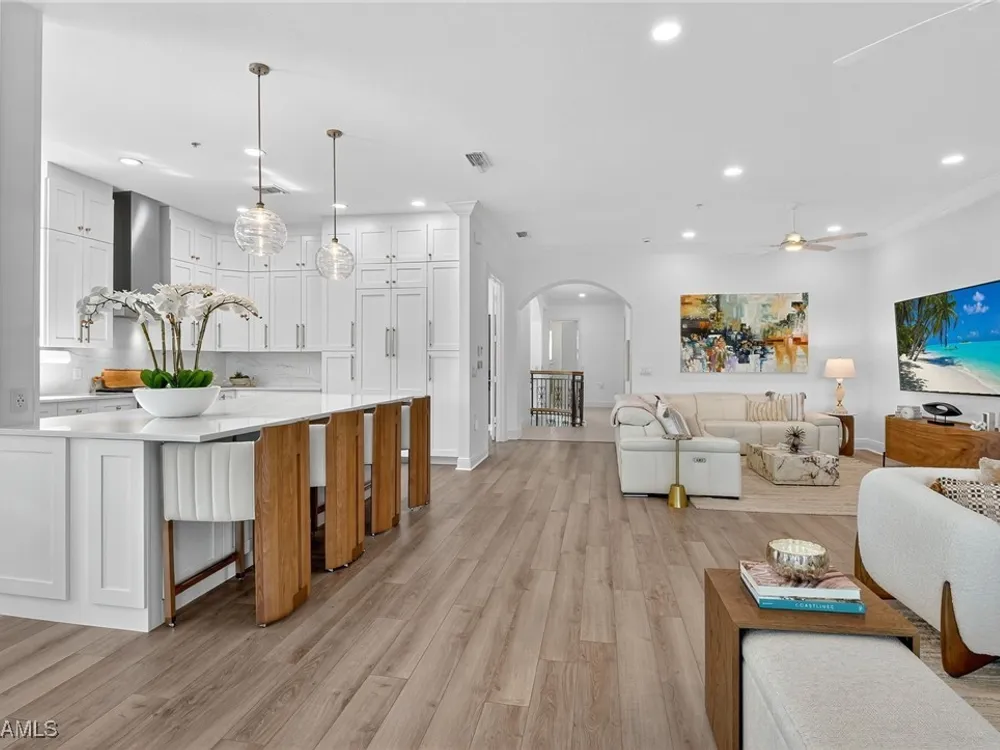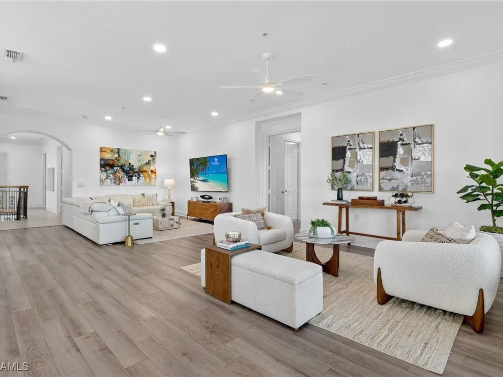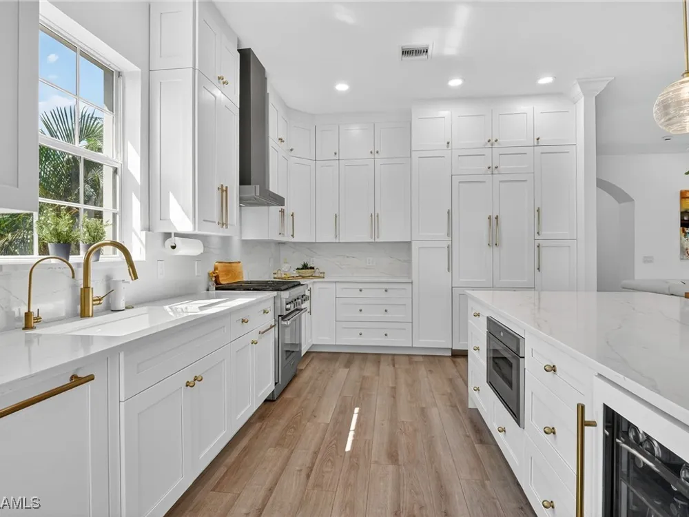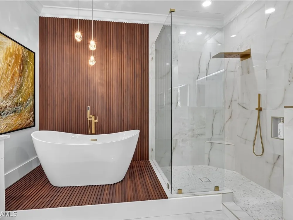 SELLER TO CONTRIBUTE $15,000 TOWARDS THE ONE-TIME CAPITAL AQUISITION FEE!! Modern elegance meets tranquil living in this remodeled coach home in the sought-after Serena neighborhood of Fiddler’s Creek. This stunning end-unit coach home, on a cul-de-sac, offers privacy, elegance, and sleek design. With 3 bedrooms plus a den, 3 full baths, and a 2-car garage, every detail has been elevated with high-end, designer upgrades. A two-story entryway sets the tone for this light-filled residence, which includes the convenience of a new private elevator. Crown molding, wood flooring, plantation shutters, and all-new modern lighting create a refined, yet serene atmosphere throughout. The open-concept kitchen is a chef’s dream, complete with ceiling-height cabinetry, quartz countertops and backsplash, Thermador stainless steel appliances, a gas range with hood, paneled refrigerator, and an oversized island that doubles as a gathering space. The primary suite is a true retreat, featuring a spa-inspired bath with marble floors, dual vanities, a frameless glass shower, and a show stopper free standing tub for the ultimate zen escape. Both guest suites are generously sized with large closets, beautifully remodeled en-suite baths, and plenty of privacy. Outdoors, the spacious screened lanai overlooks tranquil water views and is outfitted with electric storm shutters for peace of mind. Residents of Fiddler’s Creek enjoy access to world-class amenities, including a 54,000-square-foot Club & Spa with two on-site restaurants, resort-style pools, fitness center, tennis, pickleball, and bocce courts. Optional memberships are available for golf, beach, and boating. Ideally located just minutes from the white-sand beaches of Marco Island, downtown Naples, and an array of shopping and dining destinations.