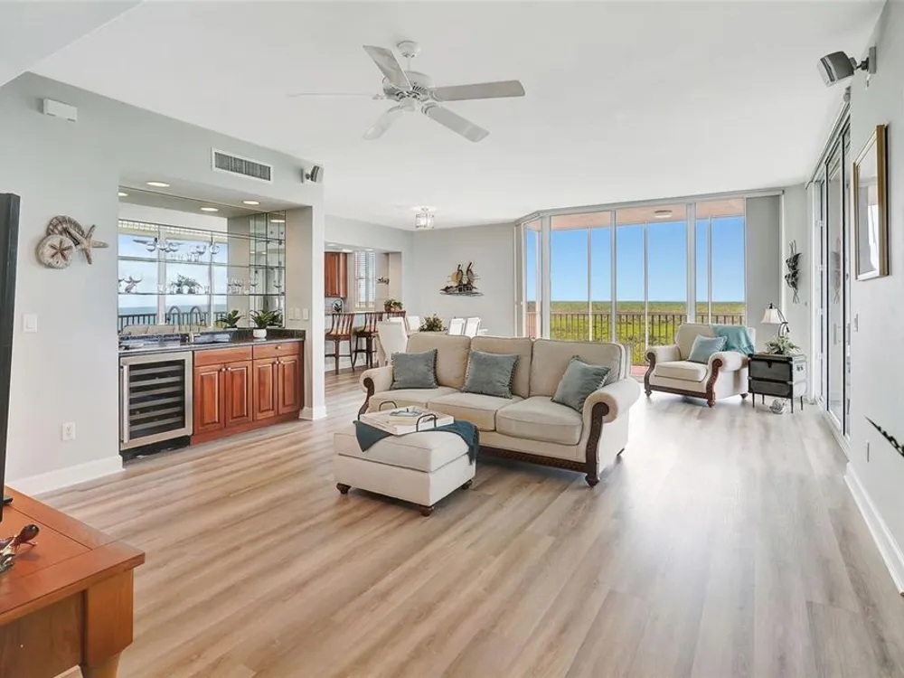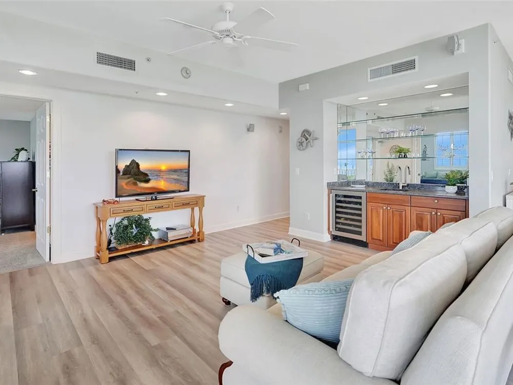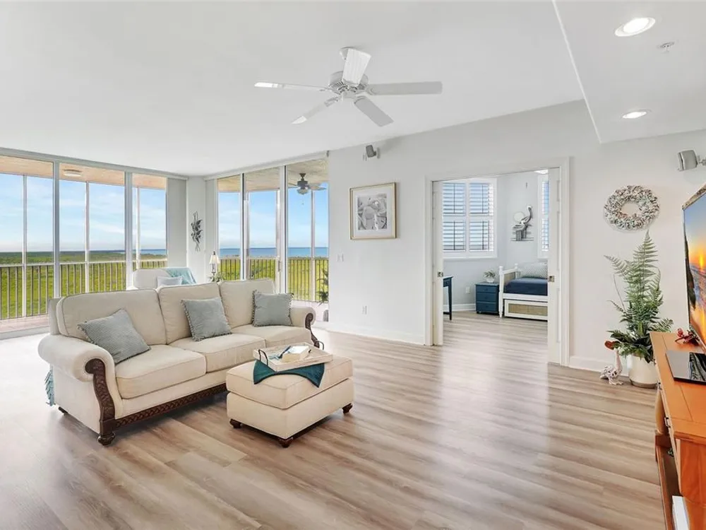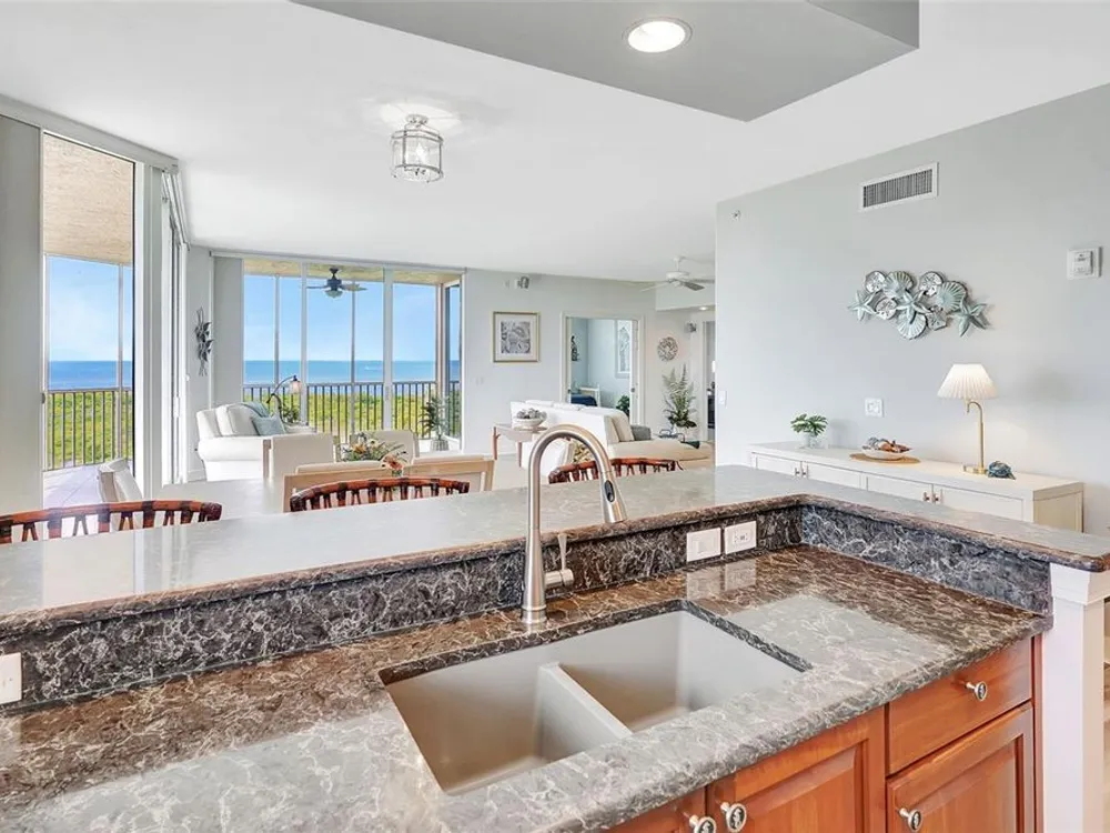 Beautifully revitalized and newly staged, this 6th-floor corner residence at Vista del Sol is offered fully furnished and ready for its next owner. Rarely available, this light-filled corner unit features walls of windows that maximize privacy, natural light, and spectacular views. The versatile den has been thoughtfully transformed into a true 3rd bedroom, making this condo as functional as it is stunning. Step outside to the expansive wrap-around lanai or enjoy a quiet retreat on the private balcony off the primary suite—both perfect vantage points for soaking in panoramic harbor views and breathtaking nightly sunsets. Inside, the open-concept design is elevated by quartz countertops, modern luxury vinyl plank flooring, and timeless plantation shutters, blending style with comfort. A coveted under-building parking space offers convenience and peace of mind, while secure elevator access and maintenance-free living let you spend more time enjoying the Florida lifestyle. Set within **Burnt Store Marina—the largest deep-water marina on Florida’s Gulf Coast—**this residence offers access to a world-class boating and yachting haven. Beyond the water, the community delivers the ultimate resort experience with a 27-hole championship golf course, pickleball and tennis courts, a state-of-the-art fitness center, walking and biking paths, on-site dining, and an active social calendar. Watch dolphins and manatees play in the harbor, take your boat directly into Charlotte Harbor and the Gulf of Mexico, or simply relax poolside with neighbors in this vibrant, gated community. Whether you’re seeking a seasonal retreat, an investment opportunity, or a year-round residence, this furnished condo checks every box. Don’t miss this rare chance to own one of Vista del Sol’s premier residences—schedule your private showing today and discover why this home is truly one of a kind.