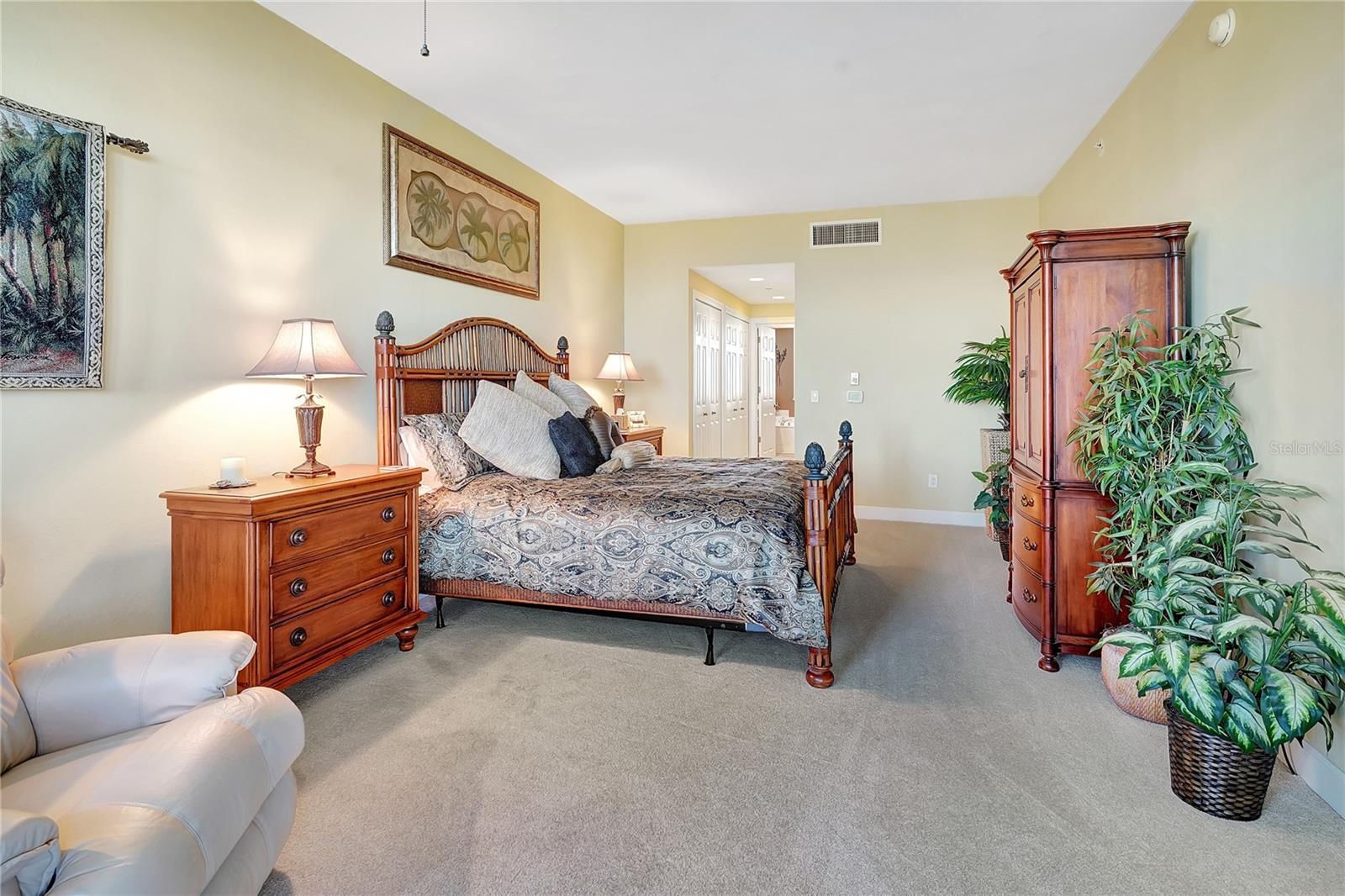 Experience Luxury Coastal Living at Its Finest. Discover refined elegance in this top-floor penthouse condo at Vista Del Sol, perfectly situated within prestigious Burnt Store Marina. This exquisite residence captures unparalleled panoramic views of Charlotte Harbor, Boca Grande, Cayo Costa, and the surrounding tropical paradise. Step inside the spacious open-concept floor plan, where soaring ceilings and floor-to-ceiling glass doors fill the living spaces with natural light and seamless access to the expansive private lanai — ideal for entertaining or taking in spectacular sunsets over the harbor. Designed for both comfort and sophistication, this penthouse offers two luxurious primary suites, each with balcony access, generous walk-in closets, and elegant en-suite bathrooms featuring dual vanities, soaking tubs, and separate showers. The split-bedroom layout ensures privacy for both owners and guests, while the versatile den can easily serve as a third bedroom or office, complemented by its own adjacent full bath. Additional highlights include a spacious laundry room, separate storage closet, and two under-building parking spaces for convenience and security. This exceptional residence is offered fully furnished with upscale Tommy Bahama décor, creating a turnkey opportunity for immediate enjoyment. Residents of Vista Del Sol enjoy access to exclusive amenities — including a heated pool, spa, and the vibrant Burnt Store Marina lifestyle featuring boating, golf, tennis, dining, and social events. Don’t miss this rare opportunity to own a luxury waterfront penthouse in one of Southwest Florida’s most desirable coastal communities. Schedule your private showing today!