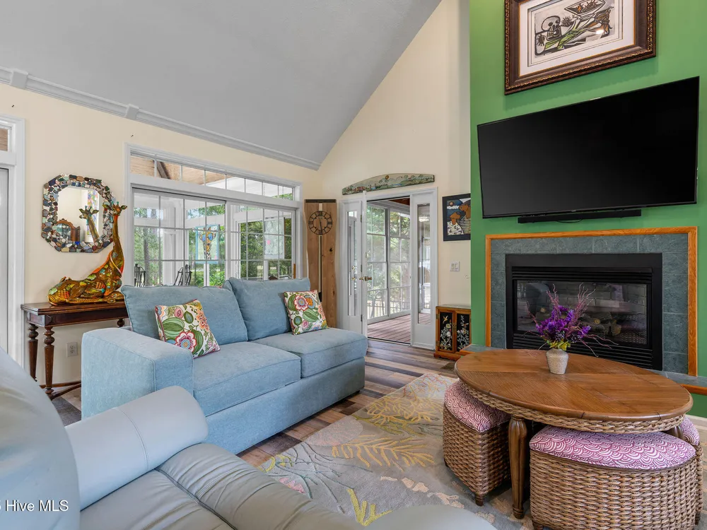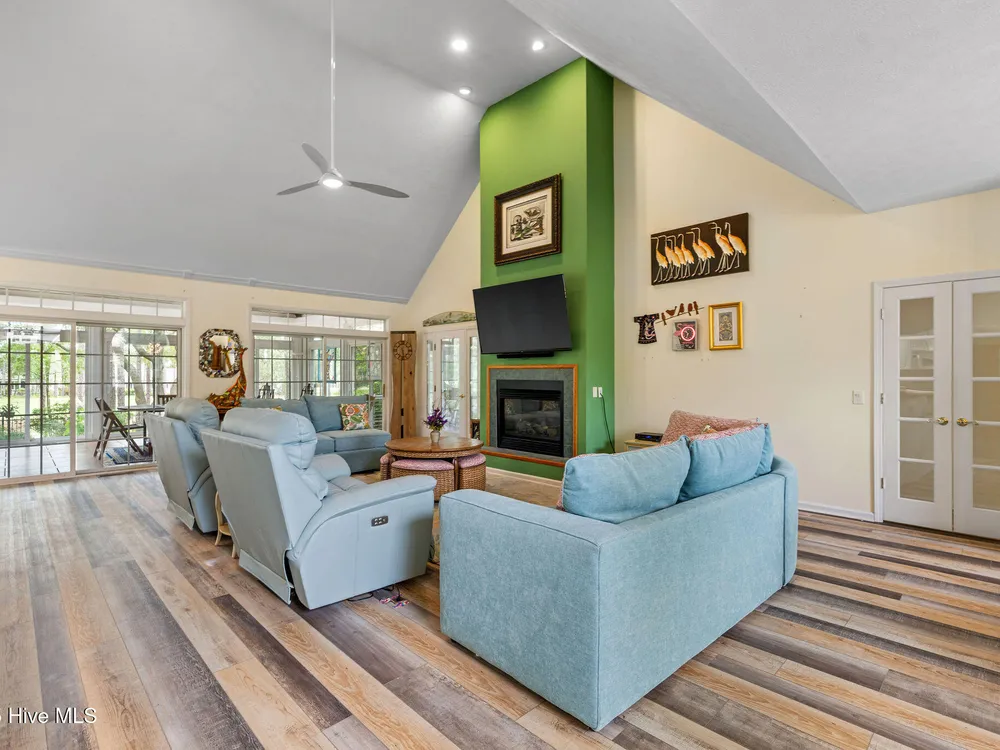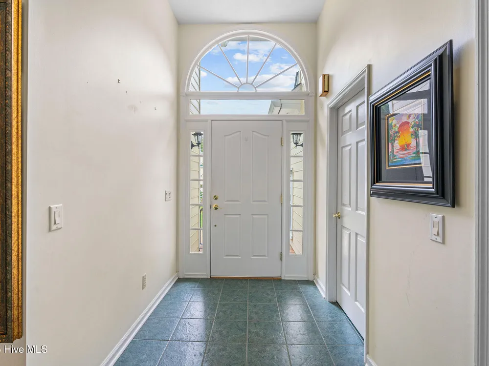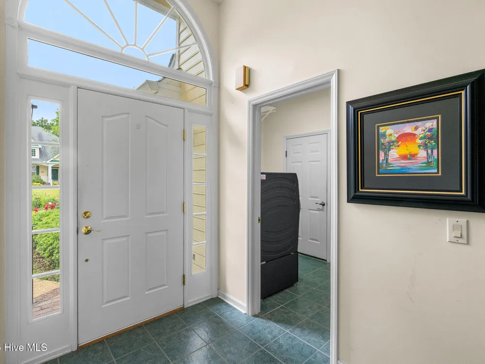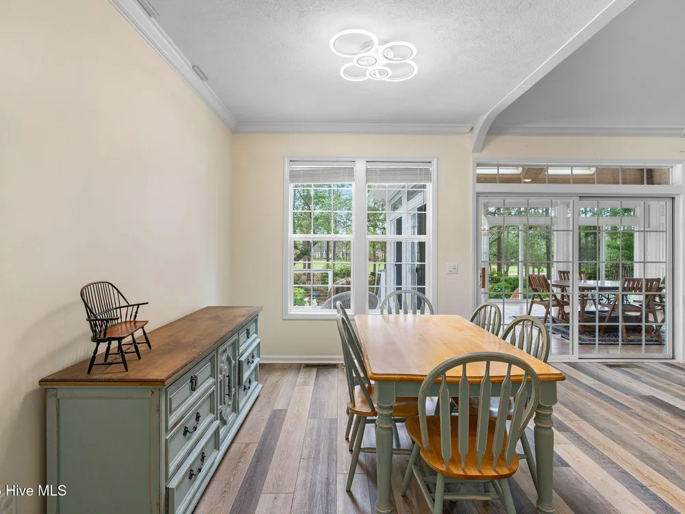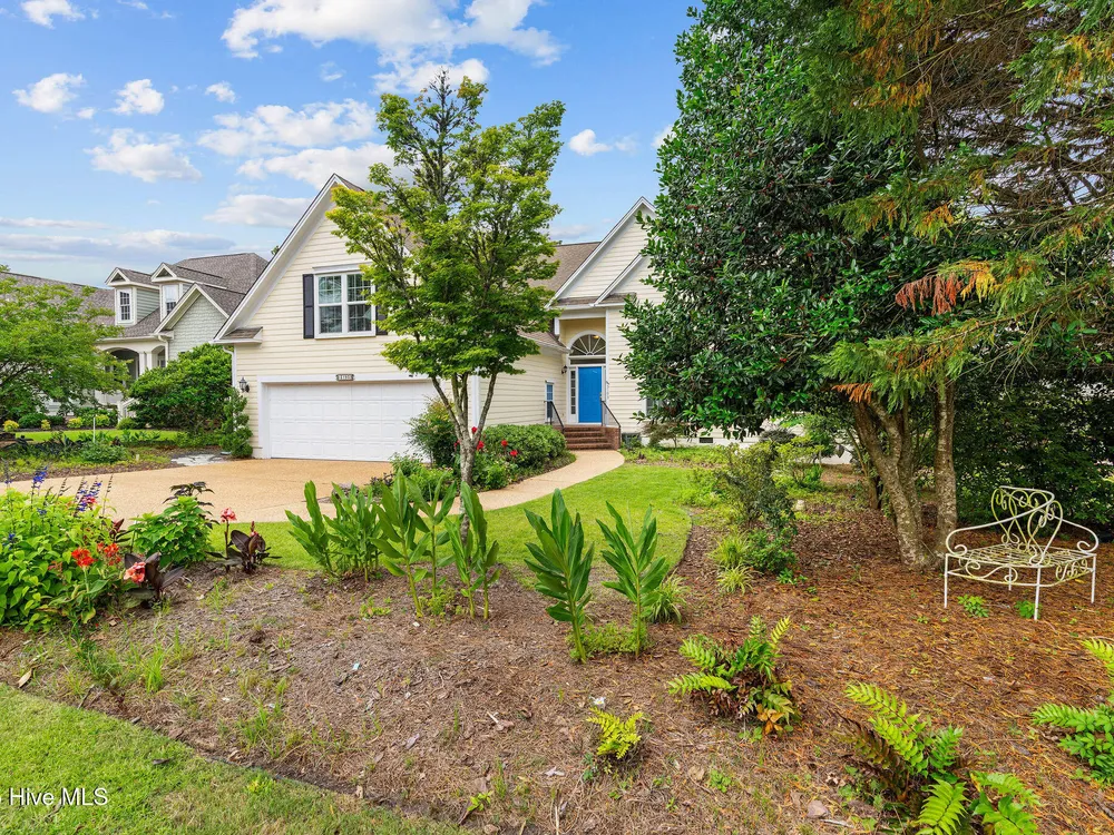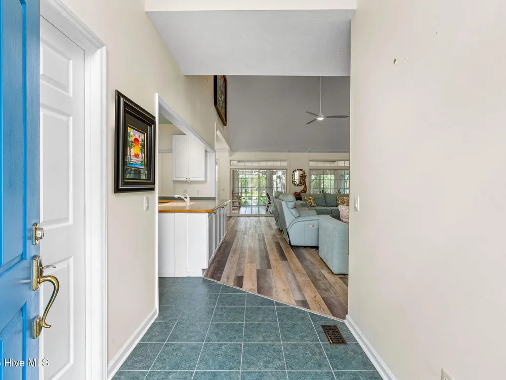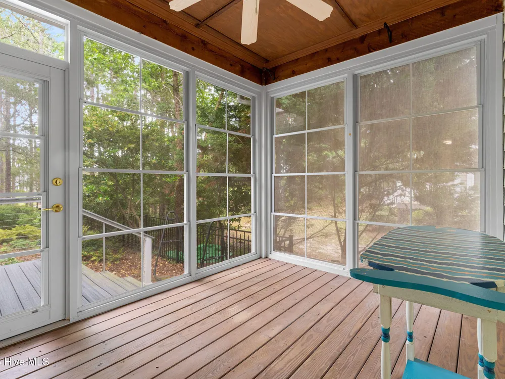 Welcome to 3193 Wexford Way, a delightful 3-bedroom, 2-bathroom home that exudes charm from the moment you arrive. The property boasts eye-catching curb appeal with vibrant, well-maintained landscaping that adds a burst of color and warmth to the front yard. An exposed aggregate driveway and matching walkway lead to the inviting front entrance, where classic brick steps provide a graceful transition into the home. This welcoming exterior sets the stage for a residence that combines comfort, style, and a sense of home. Step inside the welcoming foyer, where natural light pours in through the sidelights and arched transom window framing the front door, illuminating the coastal blue tiled flooring. From here, the home opens into a spacious, open-concept living room featuring a soaring vaulted ceiling and stylish LVP flooring. A gas fireplace, elegantly trimmed in tile and wood and set within a striking floor-to-ceiling surround, serves as the focal point of the room. Large sliding glass doors usher in even more natural light and lead to the stunning sunroom, where a tongue and groove ceiling with detailed beams and skylights enhances the airy, serene atmosphere. Here, panoramic views stretch across the lush, garden-like backyard landscaping to the golf course just beyond the fenced yard, offering a peaceful and picturesque retreat.Perfect for entertaining, the home offers a formal dining room that flows seamlessly into the open living space, ideal for hosting large gatherings. A casual dining area, complete with a convenient pass-through to the kitchen, provides a more relaxed setting for everyday meals. The kitchen is both functional and inviting, featuring pristine white cabinetry and appliances, ample storage and counter space, and a dedicated pantry. For outdoor dining and summer barbecues, a large open patio offers the ideal grilling spot, while a closed-in porch--accessible from both the backyard and the living room--invites quiet moments of relaxation