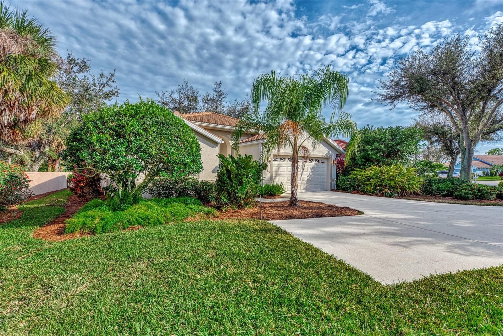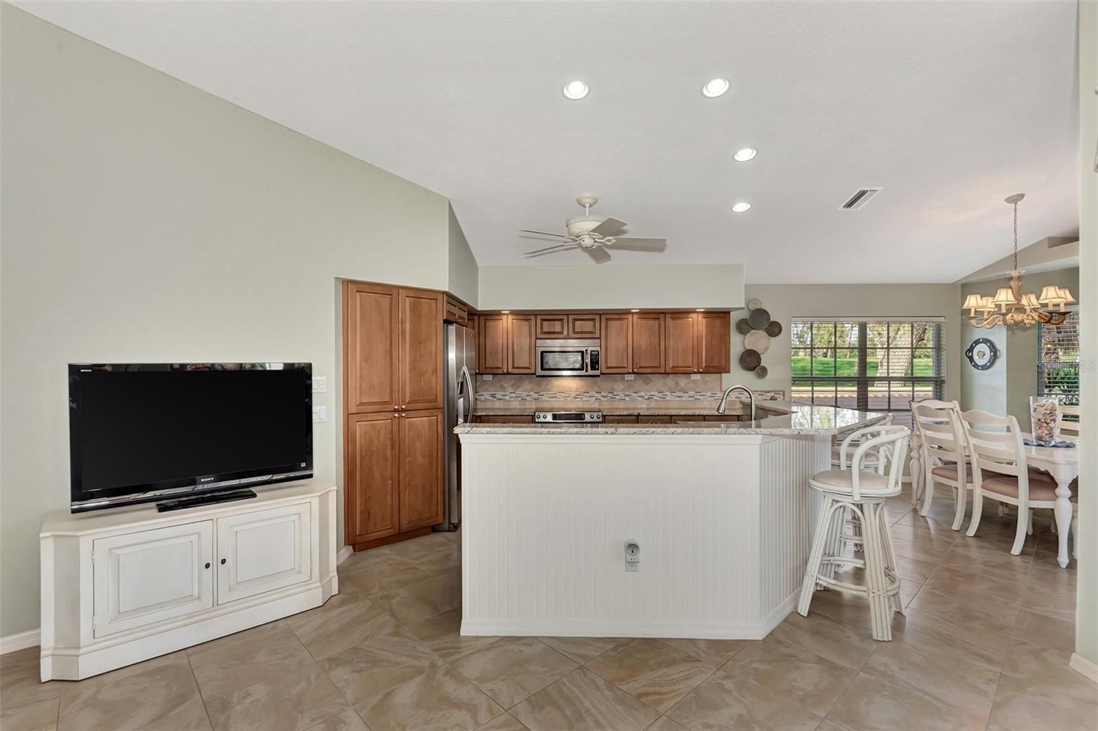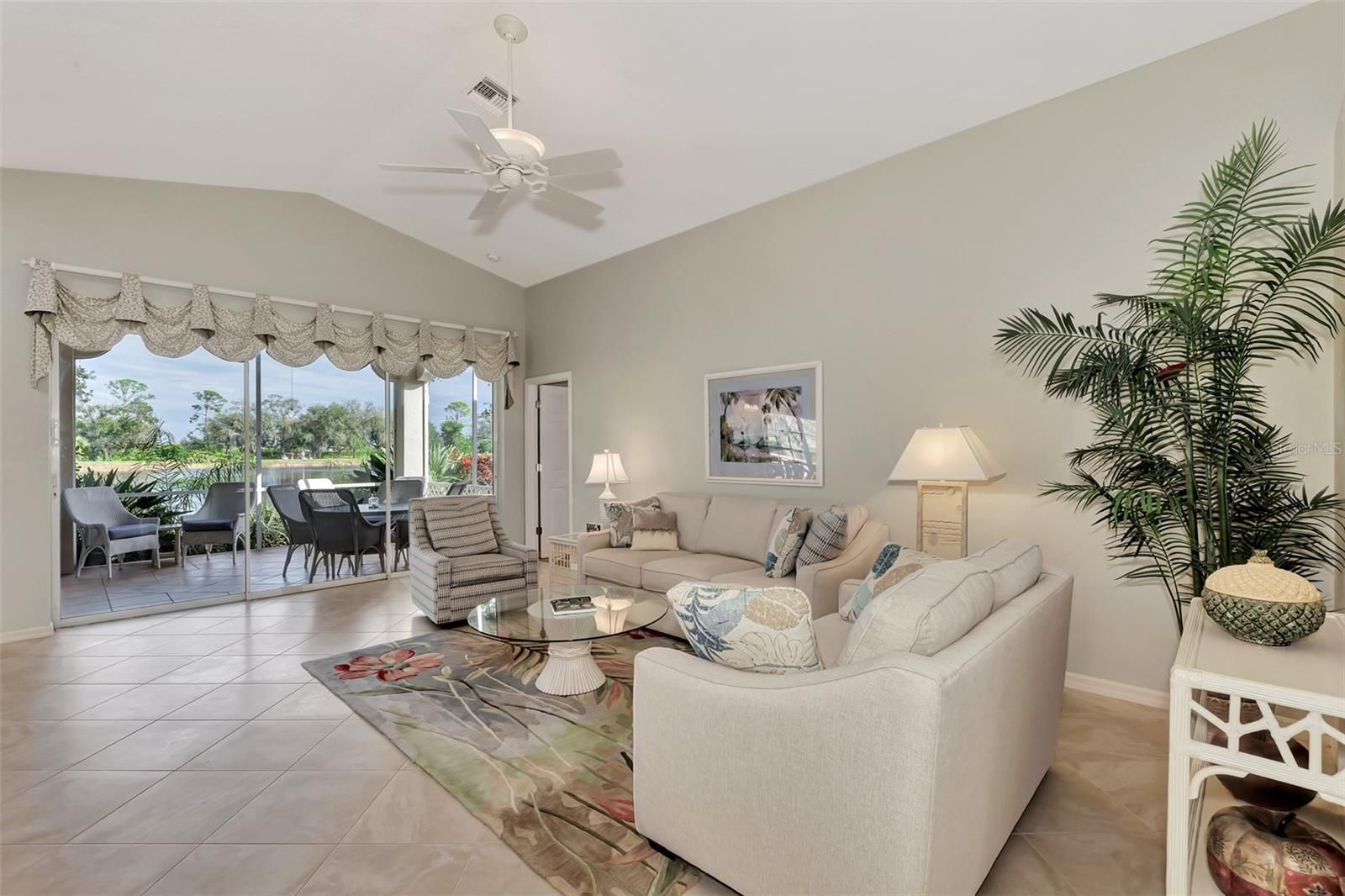 BEAUTIFUL TURNKEY FURNISHED 2 bedroom, 2 bathroom +Den Home with a serene backyard water view in the fabulous Riverwood community! Enjoy your morning coffee with a delightful pond view from your screened and roomy Lanai with ceramic tile flooring. This lovely home boasts a private setting and an Open and Split Bedroom Floor Plan with lots of natural light. Porcelain tile floors on the diagonal in living areas. Kitchen Renovation complete with Kitchenaid Stainless Steel Appliances, an abundance of Wood Cabinets with soft-close doors, pot drawers and pullout shelves, Granite countertops, Tile Backsplash and dimmable recessed ceiling lighting. Adjacent dining room with windows on three sides. The spacious living room is open to the kitchen and includes newer (w/in past 5 years) comfortable furniture than has been used infrequently. Both Bedrooms and Den are carpeted and offer generous space. The Primary Bedroom has a walk-in closet, slider door access to a paver patio, and an ensuite bathroom with dual sink vanity, make-up counter; walk-in shower with built-in bench. The 2nd bedroom has an adjustable bed/mattress and walk-in closet. The Den is currently used as a bedroom with twin beds. Newer Bedroom & Den Mattresses (w/in past 5 years) and only used a few times. The guest bathroom with shower/tub combination and dual sink vanity. NEW ROOF (2019) with Low Profile Roof Vents and No Damage to the home from Hurricane Ian. Exterior and Interior Walls Repainted (approx 2018). A/C replaced (2016). NEW 50 gallon Water Heater (2021). Garage Door opener and track wheels were replaced and provide quiet open-and-close operation. Sliding Glass door locks have Updated Locks. Utility Sink in garage. Riverwood: 1300 acres, gated, golf, resort style community. NEW RESORT STYLE & LAP POOL. SEPARATE FITNESS CENTER, PICKLEBALL COURTS, NEW SMALL AND LARGE DOG PARKS! Enjoy all that Riverwood has to offer in our lush tree lined streets, renovated activity center with all the social activities offered, 6 Har-Tru tennis courts, croquet court. An Audubon Green Community Award Winner for its natural habitat for Florida Wildlife. Optional amenities: Dog Park, Riverwood Golf Club, Par 72 Championship course & Beach Club on Manasota Key. Close to boating, cultural events, dining, shopping & beautiful beaches of SW FL. Located between Sarasota & Ft Myers on Florida’s West Coast in Paradise! Room Feature: Linen Closet In Bath (Primary Bedroom).