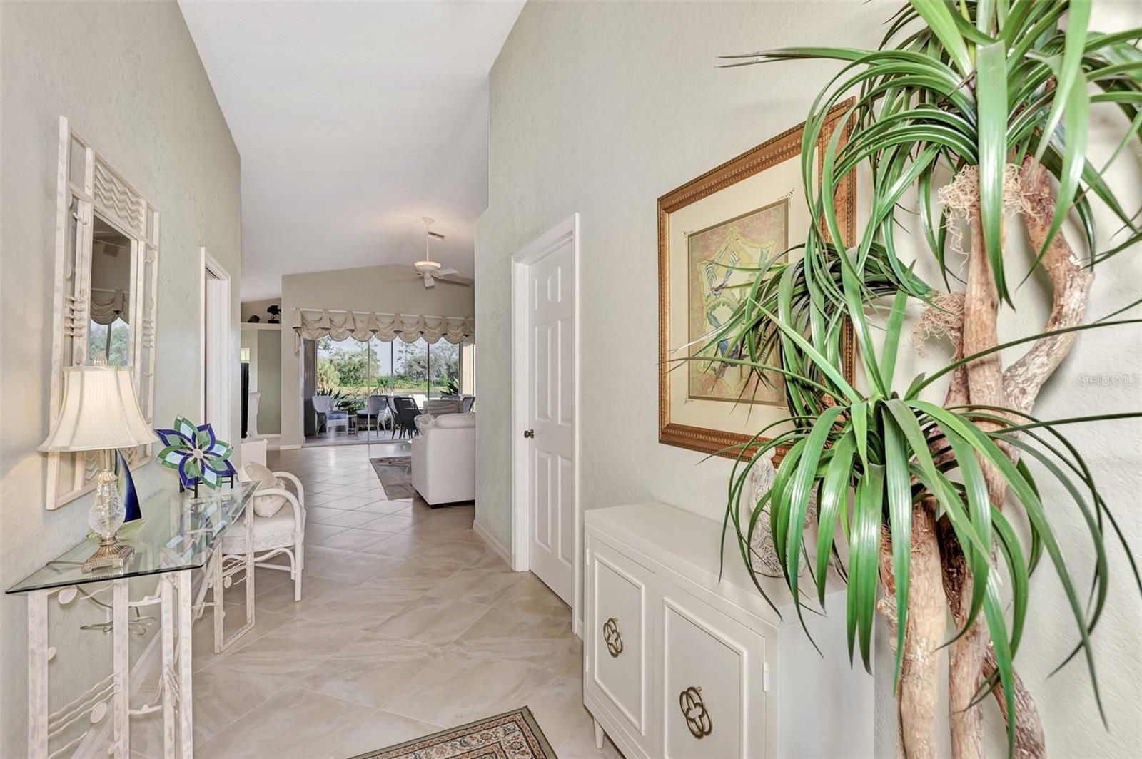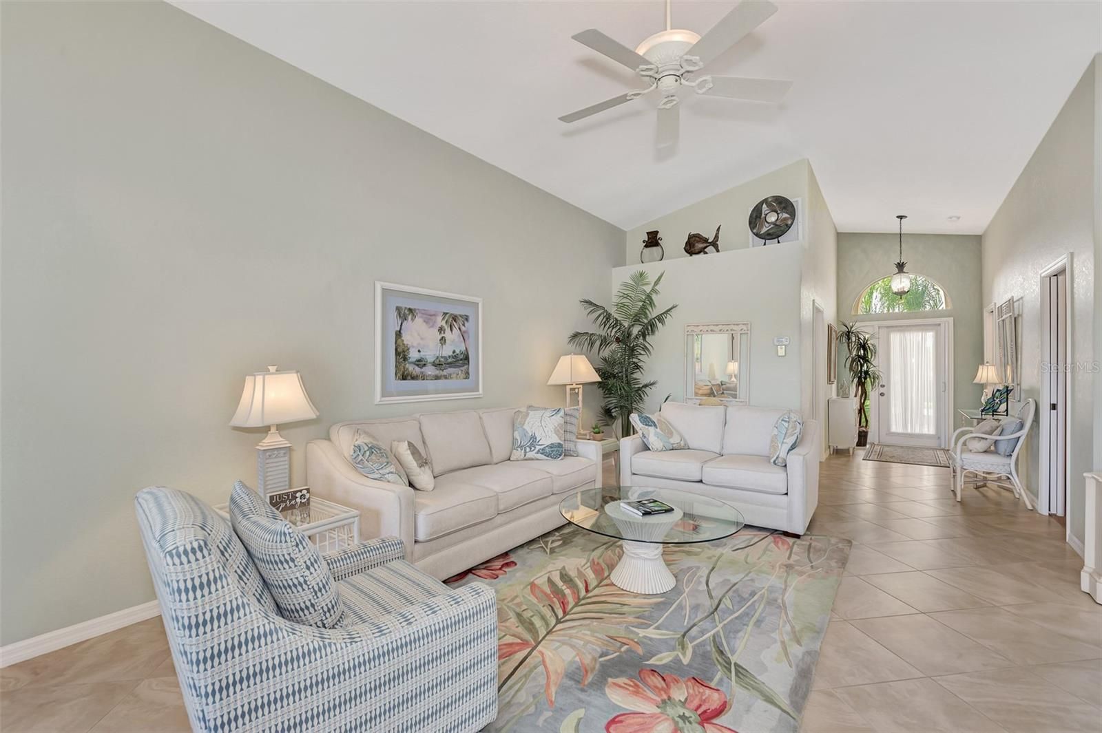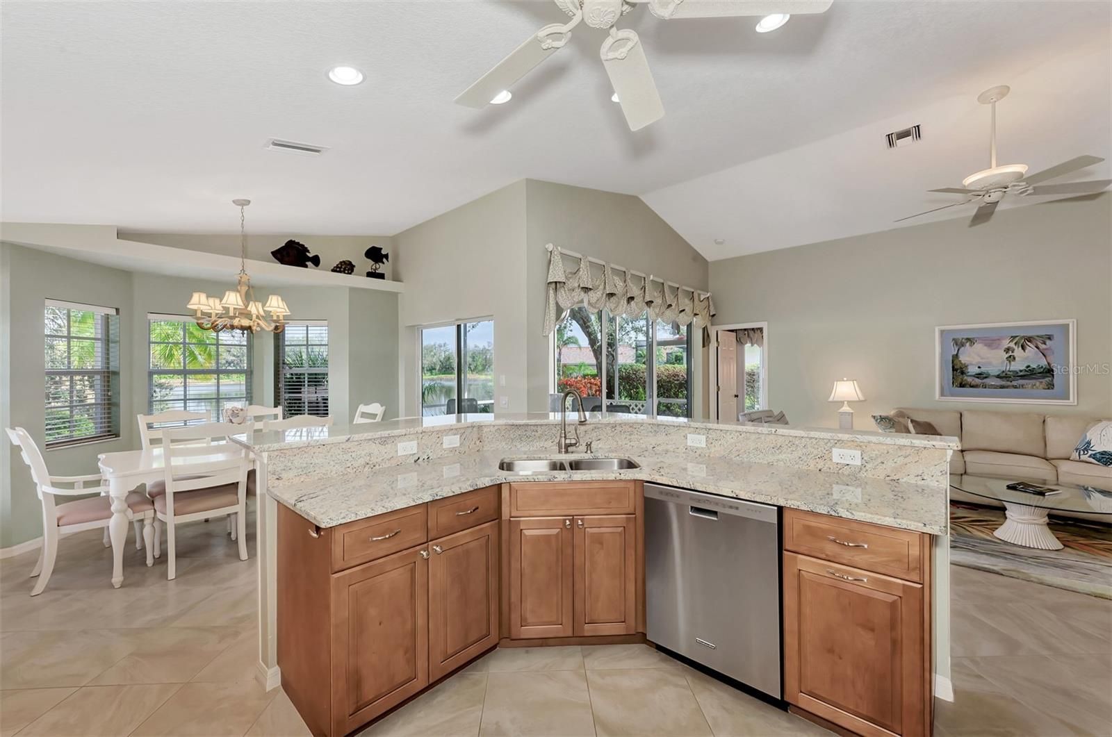 BEAUTIFUL TURNKEY FURNISHED 2 bedroom, 2 bathroom +Den Home with a serene backyard water view in the fabulous Riverwood community! Enjoy your morning coffee with a delightful pond view from your screened and roomy Lanai with ceramic tile flooring. This lovely home boasts a private setting and an Open and Split Bedroom Floor Plan with lots of natural light. Porcelain tile floors on the diagonal in living areas. Kitchen Renovation complete with Kitchenaid Stainless Steel Appliances, an abundance of Wood Cabinets with soft-close doors, pot drawers and pullout shelves, Granite countertops, Tile Backsplash and dimmable recessed ceiling lighting. Adjacent dining room with windows on three sides. The spacious living room is open to the kitchen and includes newer (w/in past 5 years) comfortable furniture than has been used infrequently. Both Bedrooms and Den are carpeted and offer generous space. The Primary Bedroom has a walk-in closet, slider door access to a paver patio, and an ensuite bathroom with dual sink vanity, make-up counter; walk-in shower with built-in bench. The 2nd bedroom has an adjustable bed/mattress and walk-in closet. The Den is currently used as a bedroom with twin beds. Newer Bedroom & Den Mattresses (w/in past 5 years) and only used a few times. The guest bathroom with shower/tub combination and dual sink vanity. NEW ROOF (2019) with Low Profile Roof Vents and No Damage to the home from Hurricane Ian. Exterior and Interior Walls Repainted (approx 2018). A/C replaced (2016). NEW 50 gallon Water Heater (2021). Garage Door opener and track wheels were replaced and provide quiet open-and-close operation. Sliding Glass door locks have Updated Locks. Utility Sink in garage. Riverwood: 1300 acres, gated, golf, resort style community. NEW RESORT STYLE & LAP POOL. SEPARATE FITNESS CENTER, PICKLEBALL COURTS, NEW SMALL AND LARGE DOG PARKS! Enjoy all that Riverwood has to offer in our lush tree lined streets, renovated activity center with all the social activities offered, 6 Har-Tru tennis courts, croquet court. An Audubon Green Community Award Winner for its natural habitat for Florida Wildlife. Optional amenities: Dog Park, Riverwood Golf Club, Par 72 Championship course & Beach Club on Manasota Key. Close to boating, cultural events, dining, shopping & beautiful beaches of SW FL. Located between Sarasota & Ft Myers on Florida’s West Coast in Paradise! Room Feature: Linen Closet In Bath (Primary Bedroom).