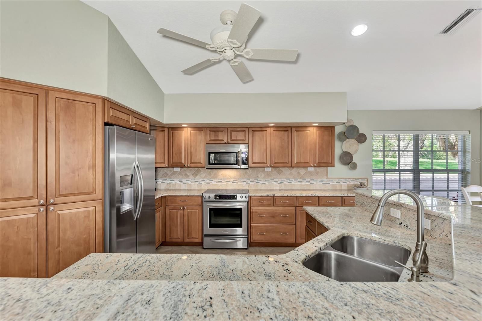 - Cathedral Ceiling(s), Ceiling Fan(s), Open Floorplan, Split Bedrooms, Stone Counters, Thermostat, Walk-In Closet(s), Window Treatments