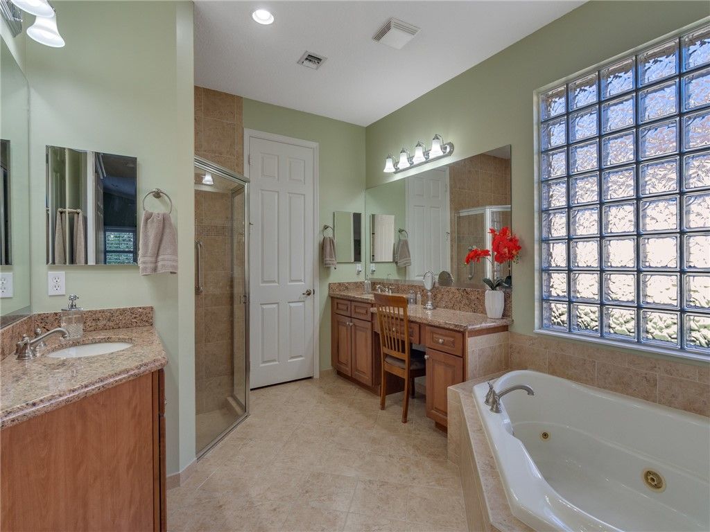 - Bathtub, Closet Cabinetry, High Ceilings, Jetted Tub, Kitchen Island, Primary Downstairs, Pantry, Split Bedrooms, Walk-In Closet(s)