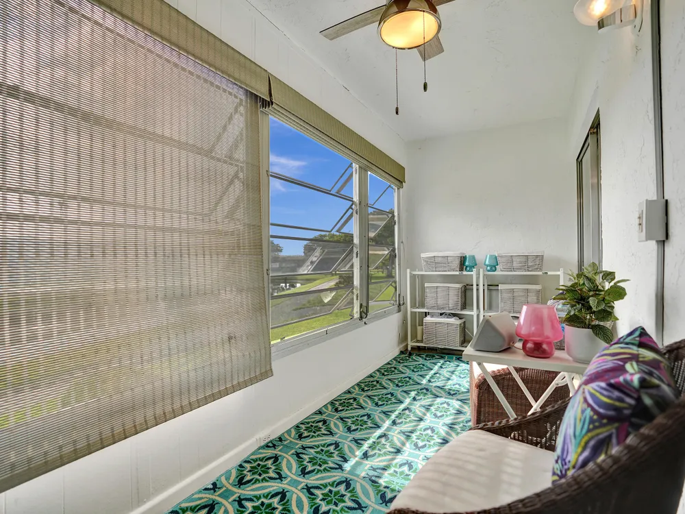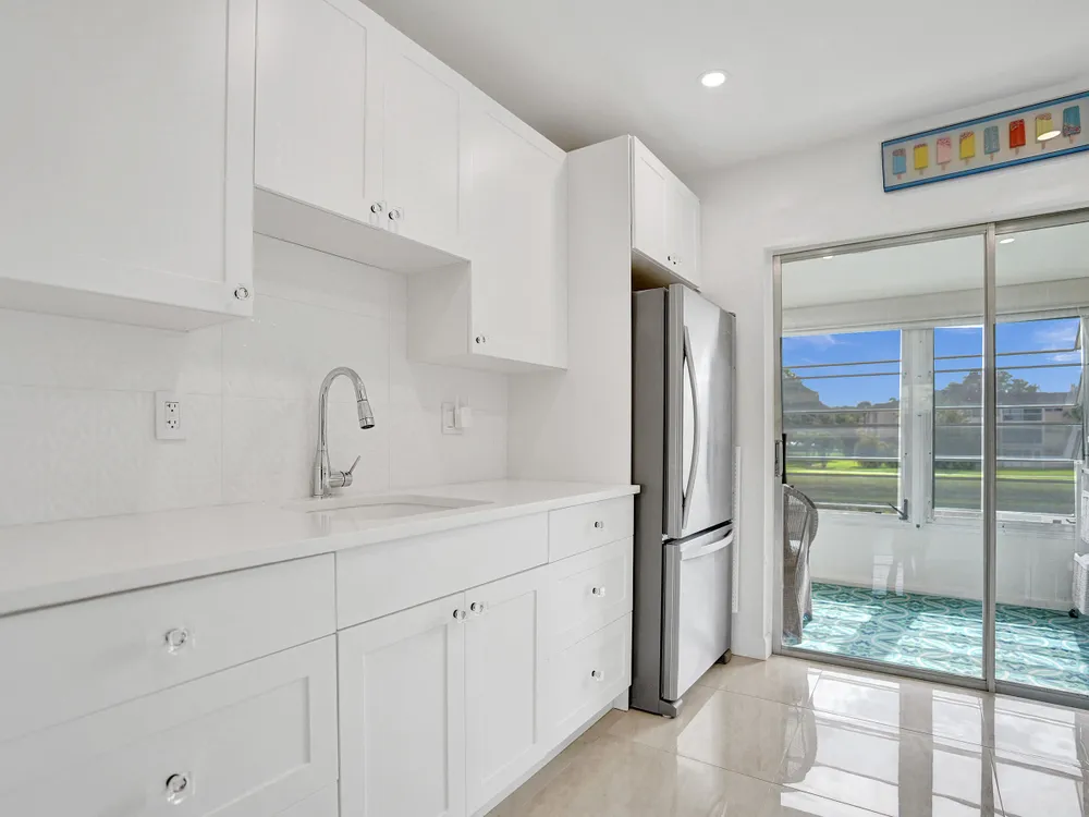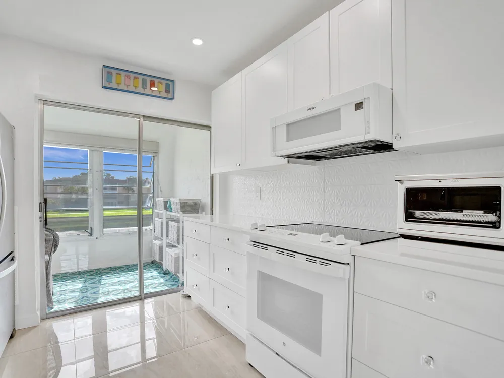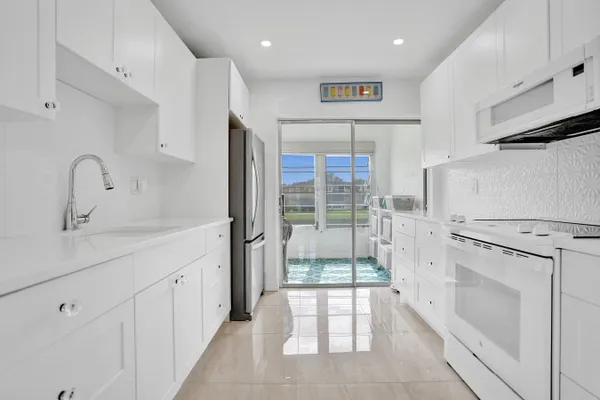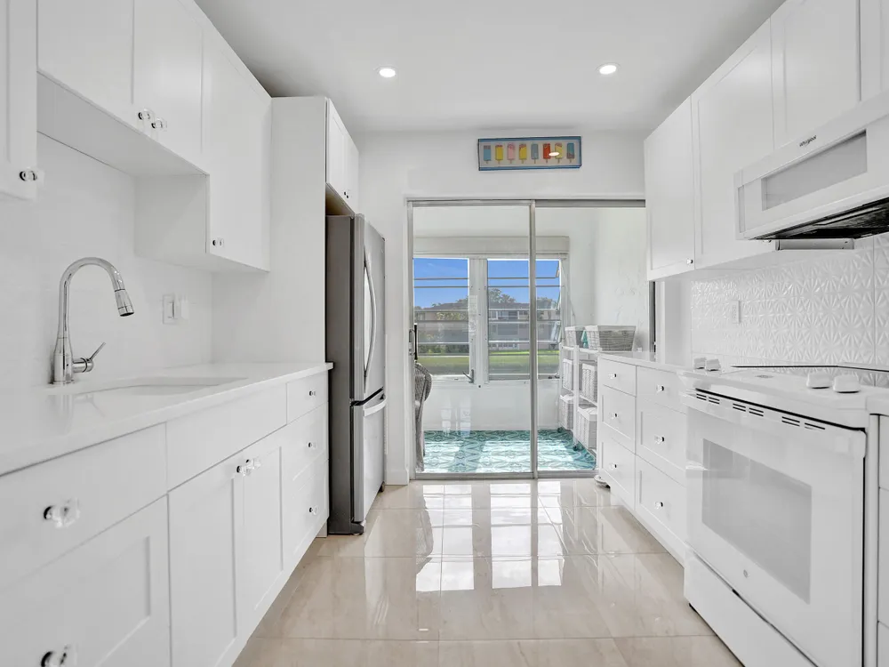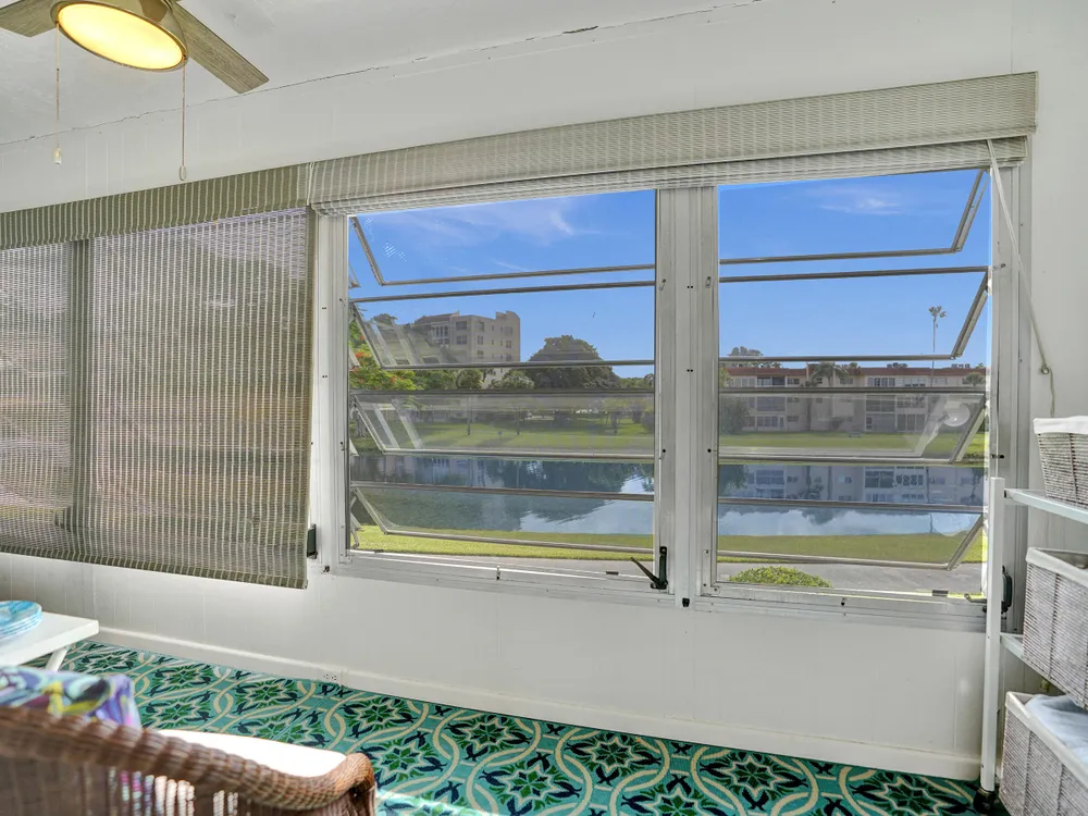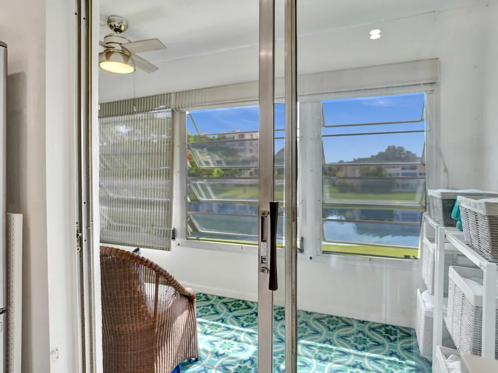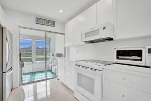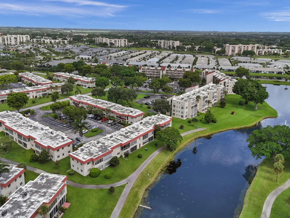 Fully renovated in 2023, this pristine 1-bedroom, 1.5-bath condo in Delray Beach's top-rated 55+ community offers stunning water views from the enclosed Florida room with double balconies. The modern galley kitchen features quartz countertops, stacked drawers, a designer backsplash, garbage disposal, and top-of-the-line stainless steel appliancesa"including a stove that's barely been used. Porcelain flooring flows throughout, complemented by custom LED lighting, crystal knobs, and high-end doors. Both bathrooms are completely updated with frameless glass doors and elegant finishes. The spacious bedroom includes a custom walk-in closet. Enjoy peace of mind with a 2023 roof, A/C (2018), water heater (2019), and upgraded outlets and switches. HOA covers internet, cable, water, lawn care,