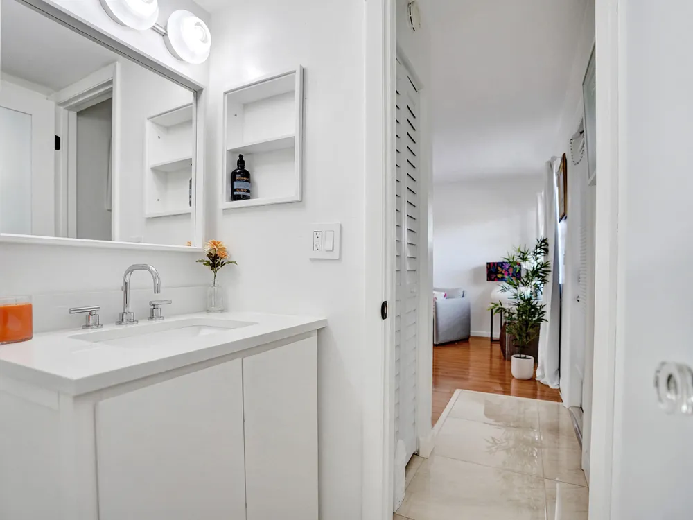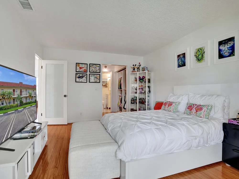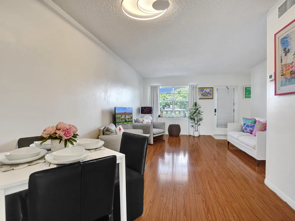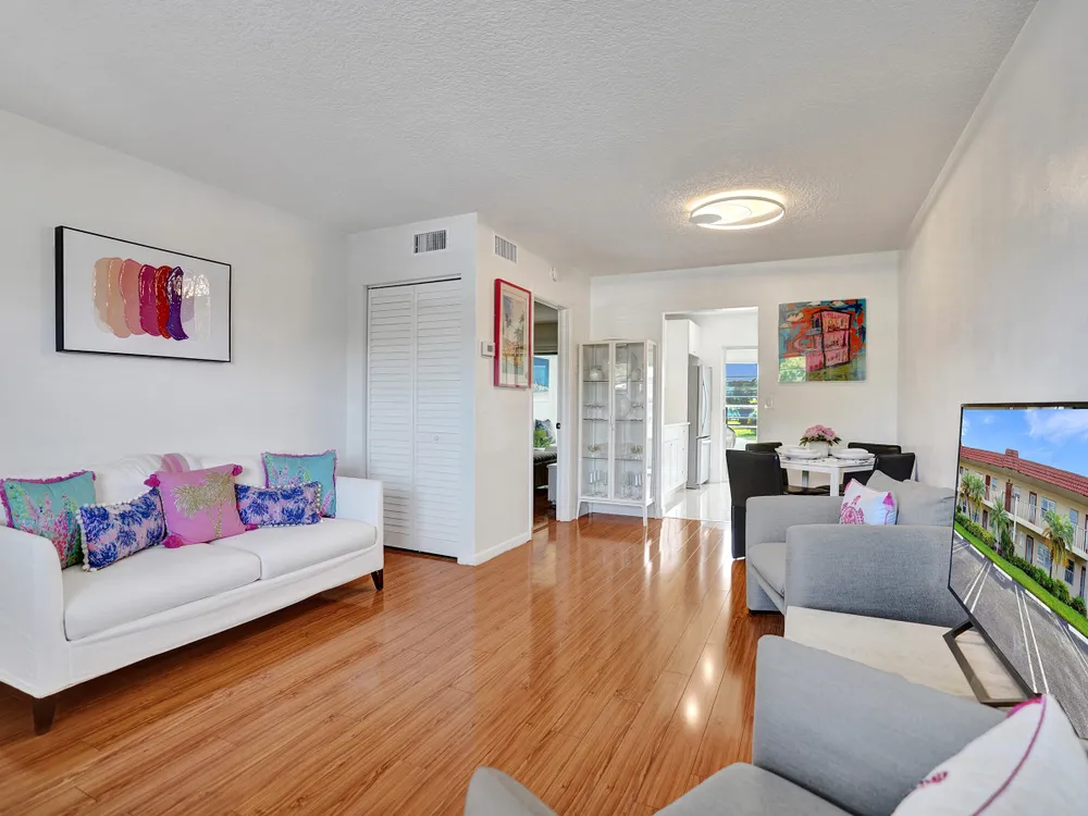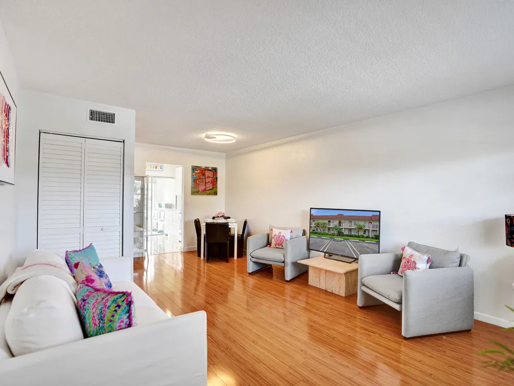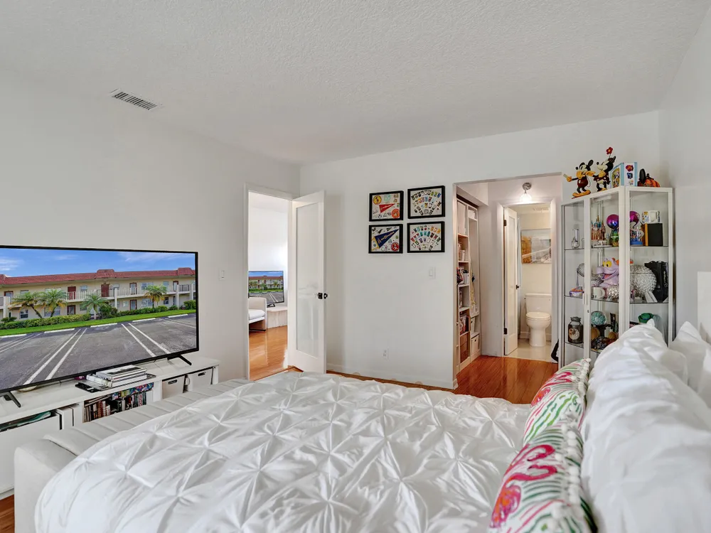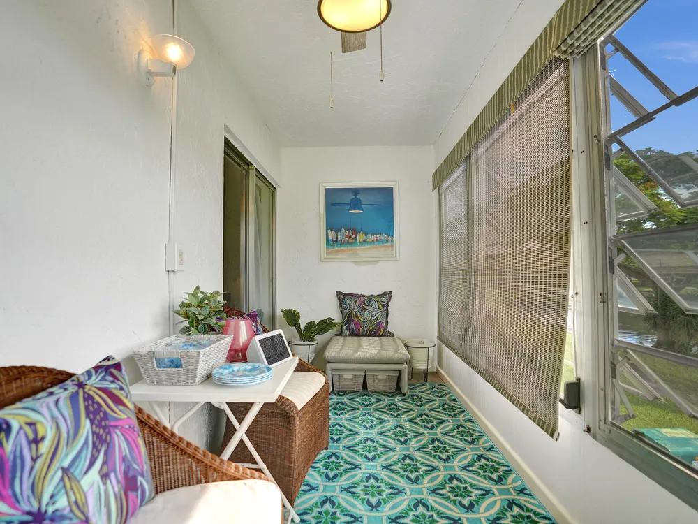 Fully renovated in 2023, this pristine 1-bedroom, 1.5-bath condo in Delray Beach's top-rated 55+ community offers stunning water views from the enclosed Florida room with double balconies. The modern galley kitchen features quartz countertops, stacked drawers, a designer backsplash, garbage disposal, and top-of-the-line stainless steel appliancesa"including a stove that's barely been used. Porcelain flooring flows throughout, complemented by custom LED lighting, crystal knobs, and high-end doors. Both bathrooms are completely updated with frameless glass doors and elegant finishes. The spacious bedroom includes a custom walk-in closet. Enjoy peace of mind with a 2023 roof, A/C (2018), water heater (2019), and upgraded outlets and switches. HOA covers internet, cable, water, lawn care,
