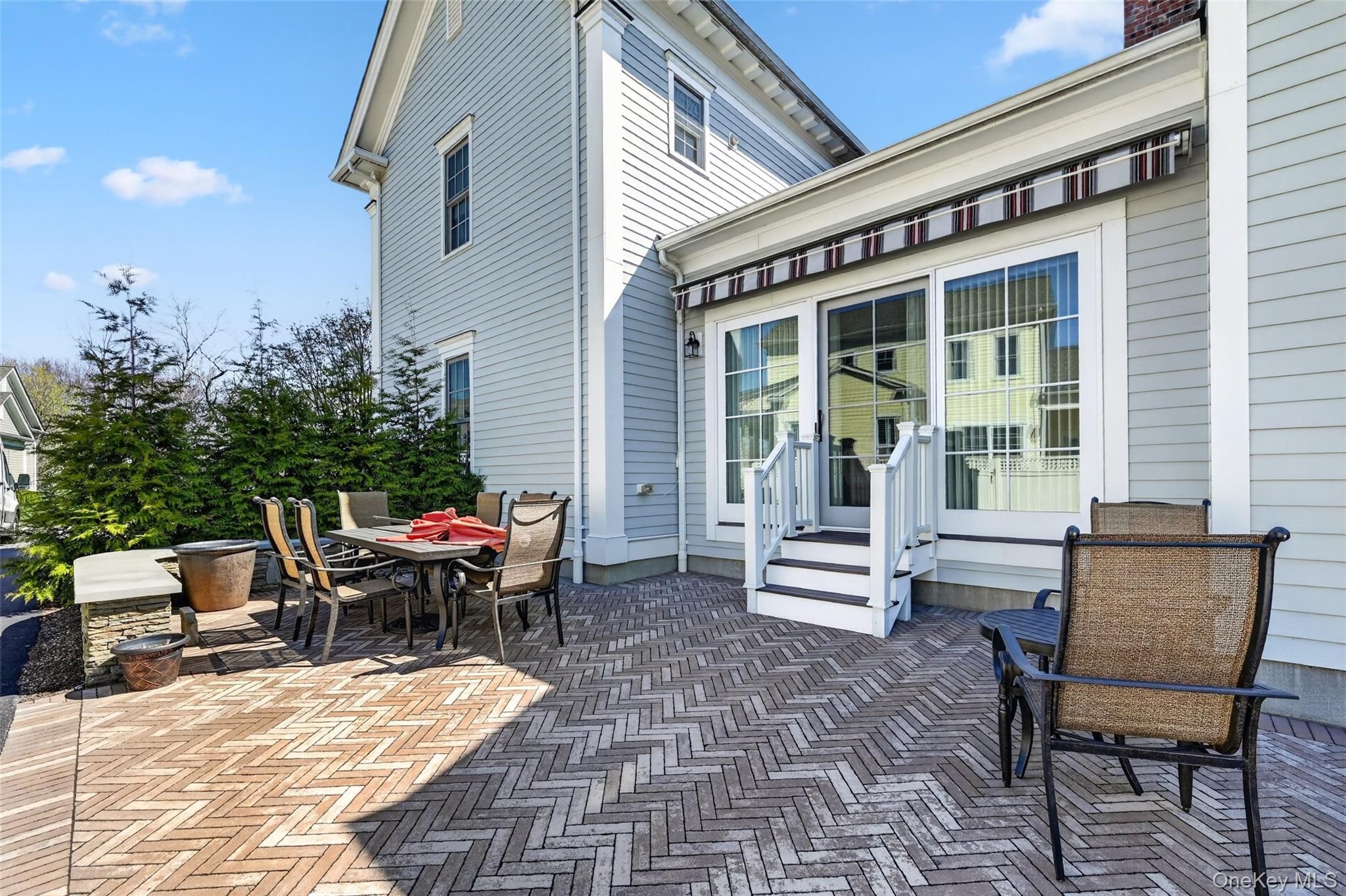 Located in the highly sought-after Warwick Grove 55+ community in Warwick, New York, this impeccably maintained 3 bedroom, 2.5 bath Colonial offers refined comfort, privacy, and effortless living in the heart of Orange County. The desirable first-floor primary suite allows for true single-level living and features two spacious closets and a private bath with double sinks, a soaking tub, and a separate glass-enclosed shower. Expansive windows throughout the home fill the interior with natural light, creating bright and welcoming living and dining spaces ideal for both everyday living and entertaining. The well-appointed kitchen offers generous cabinetry, granite counters, island seating, and seamless flow into the main living area. A butler’s pantry adds both function and elegance, making hosting simple and organized. Upstairs, two additional bedrooms and a full bath provide flexible space for guests, or a home office. The thoughtful separation between the main-level primary suite and second-floor living area ensures privacy and versatility. Outdoor living is equally impressive. A beautifully crafted herringbone paver patio with custom retaining walls creates a private outdoor retreat, complete with a remote-controlled awning for shade and comfort. Residents of Warwick Grove enjoy exclusive amenities including a clubhouse, pool, fitness center, and on-site post office, all within a beautifully maintained active adult community. Located just minutes from the Village of Warwick’s dining, shopping, wineries, and local attractions, this home offers the perfect blend of comfort, convenience, and vibrant 55+ living in the Hudson Valley.
