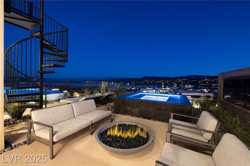 Blue Heron ShowHome! The residence boasts stunning Lake Views of Lake Las Vegas, set one of Lake Las Vegas finest lake view lot. Vaulted ceilings, a floating staircase, and picture windows create an inviting atmosphere. Glass pocket doors seamlessly blend indoor and outdoor living. The kitchen is an outstanding space that you can cook in, and the large waterfall island is perfect for entertaining. The grand entrance courtyard features a spacious guest suite and a loft with lake views. The rooftop deck offers a breathtaking 360-degree vista. Smart home technology enhances modern living. Outside, an infinity pool, spa, and outdoor entertainment center await. Furniture is included. This prestigious luxury Lake Las Vegas Masterplan offers access to restaurants, sports clubs, and Jack Nicklaus golf courses. Sport membership valued at $25,000.00 provided at closing!!