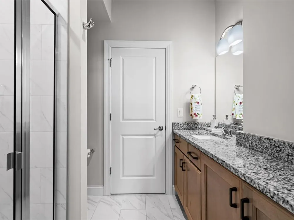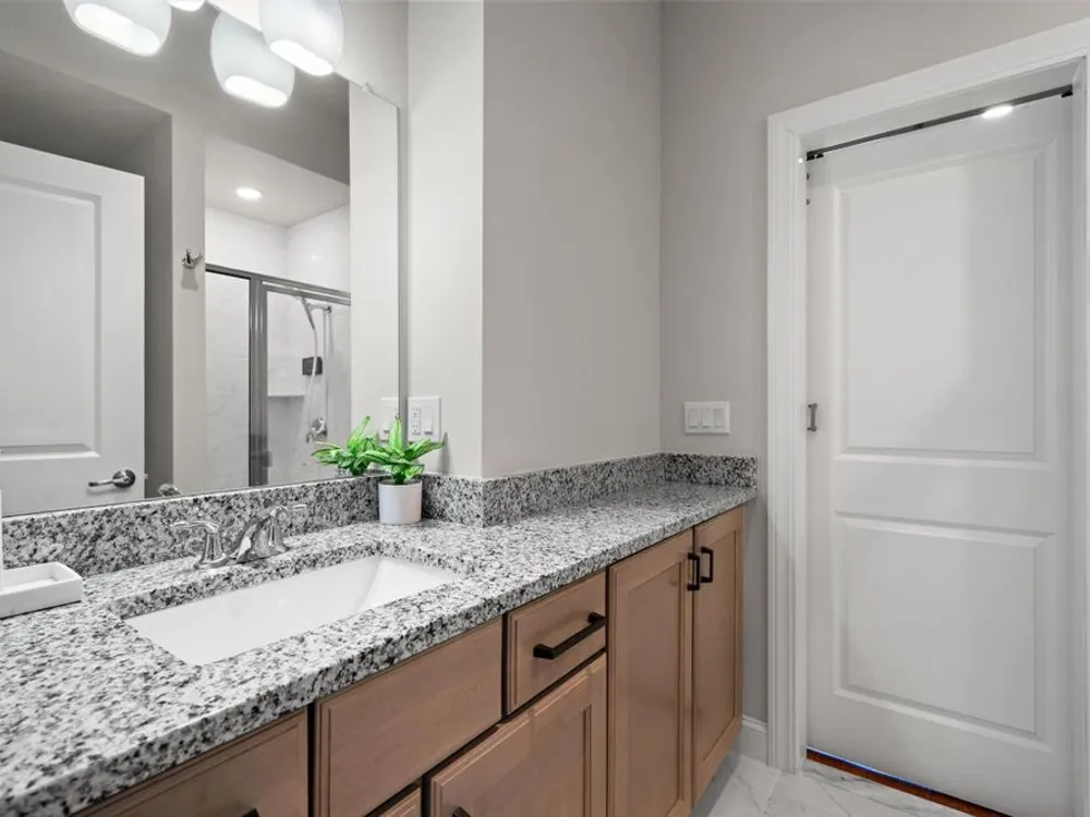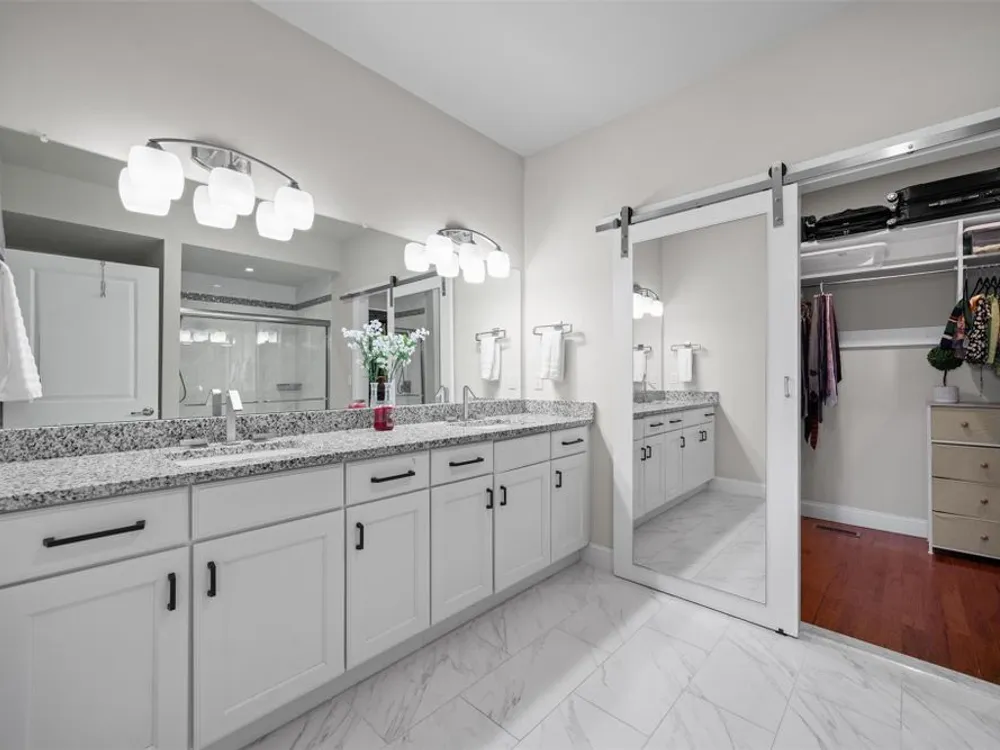 - Bedroom on Main Level, Bath on Main Level, Ceiling Fan(s), Chef's Kitchen, Double Vanity, Eat-in Kitchen, Granite Counters, His and Hers Closets, In-Law Floorplan, Primary Bathroom, Primary Downstairs, Open Floorplan, Open Kitchen, Soaking Tub, Storage, Walk-In Closet(s), Washer/Dryer Hookup