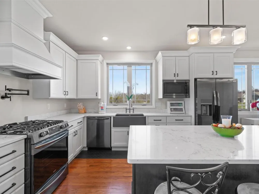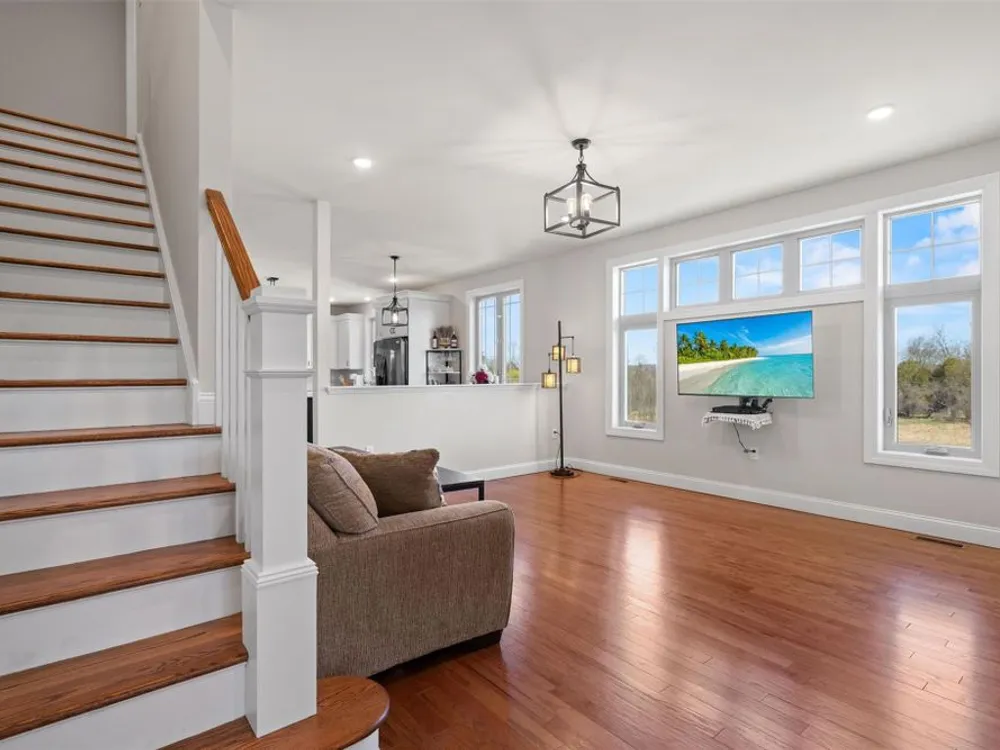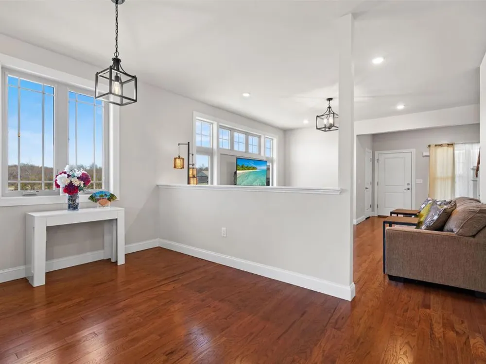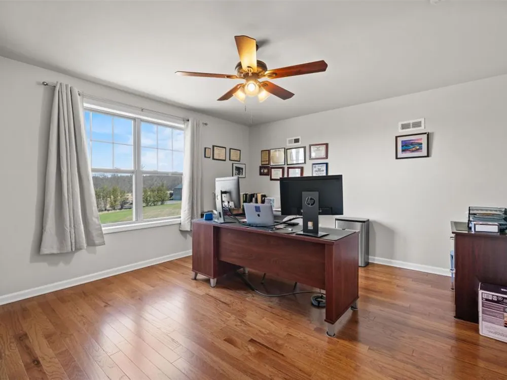 Welcome to your dream retreat in this stunning 4-bedroom (legally 3), 4-bath newer townhome, perfectly situated on a coveted corner lot in the upscale and active 55+ Blackburne Farms community. Enjoy breathtaking views of serene ponds and sprawling farmland from the comfort of your own home. Step inside to discover gleaming hardwood floors that flow throughout the open, modern layout, designed for both relaxation and entertaining. This thoughtfully crafted residence boasts a two-car garage with EV chargers, ensuring convenience for your eco-friendly lifestyle. The primary suite on the ground floor is a true sanctuary, featuring a private covered balcony where you can unwind while soaking in the peaceful surroundings, as well as additional guest quarters and a dedicated laundry room. Need additional workspace? The built-in office spaces on the lower floor have you covered, with a separate full suite, complete with its own entrance, parking spot, kitchenette, bathroom, laundry room and bedroom/office areas—offering ideal flexibility for guests, extended family, or even a private rental opportunity. Upstairs on the second floor, a versatile loft area with its own bath and sunny bedroom/office area, provides additional living space, perfect for hobbies or lounging. Location is everything, and this home delivers—minutes from the airport and train station for effortless travel, plus nearby state parks for outdoor adventures. As part of this vibrant community, you’ll enjoy access to a clubhouse, gym, and dog park, all while the HOA takes care of snow removal for worry-free winters. Don’t miss this rare blend of luxury, convenience, and natural beauty—your ideal townhome awaits!