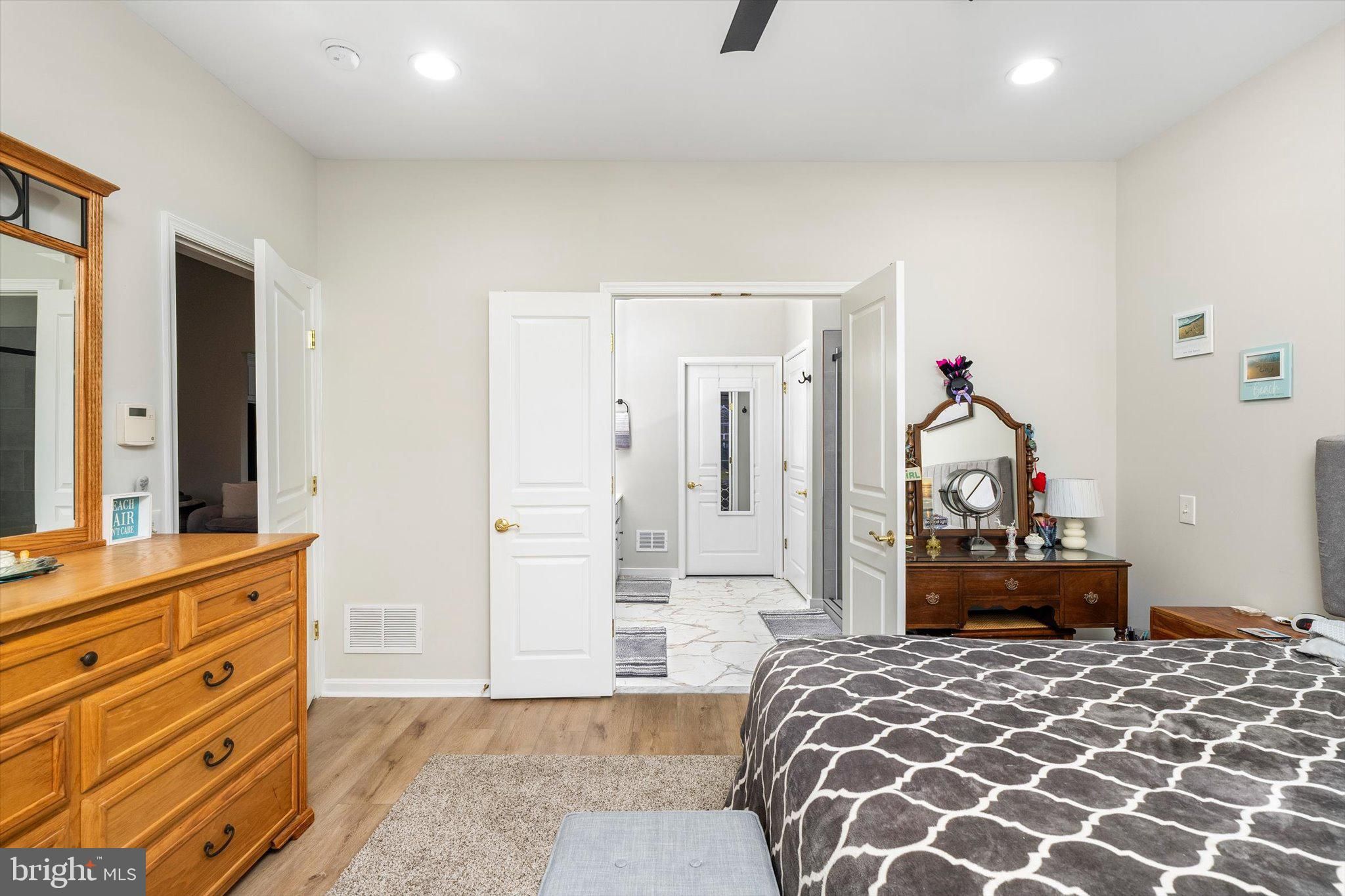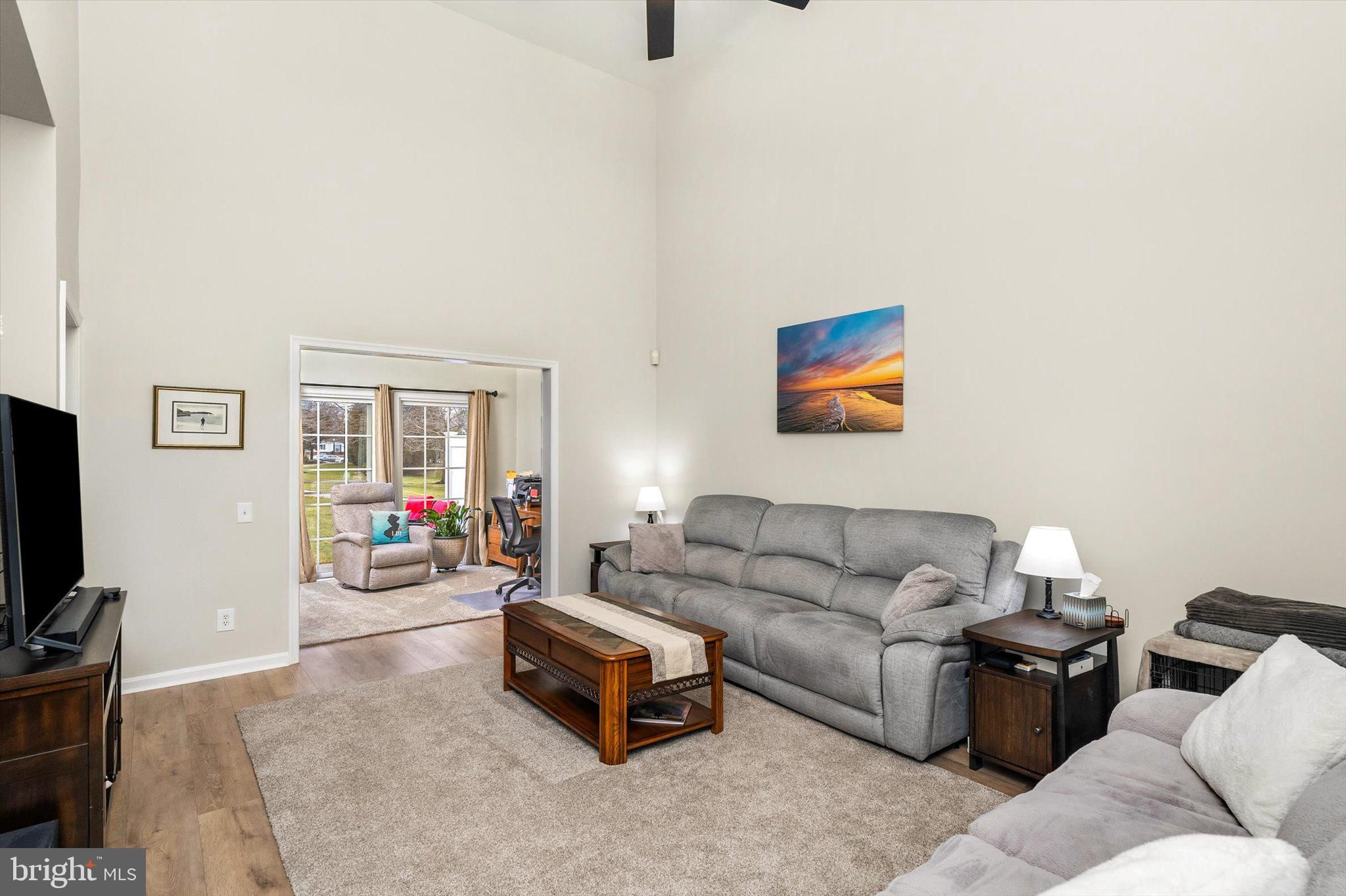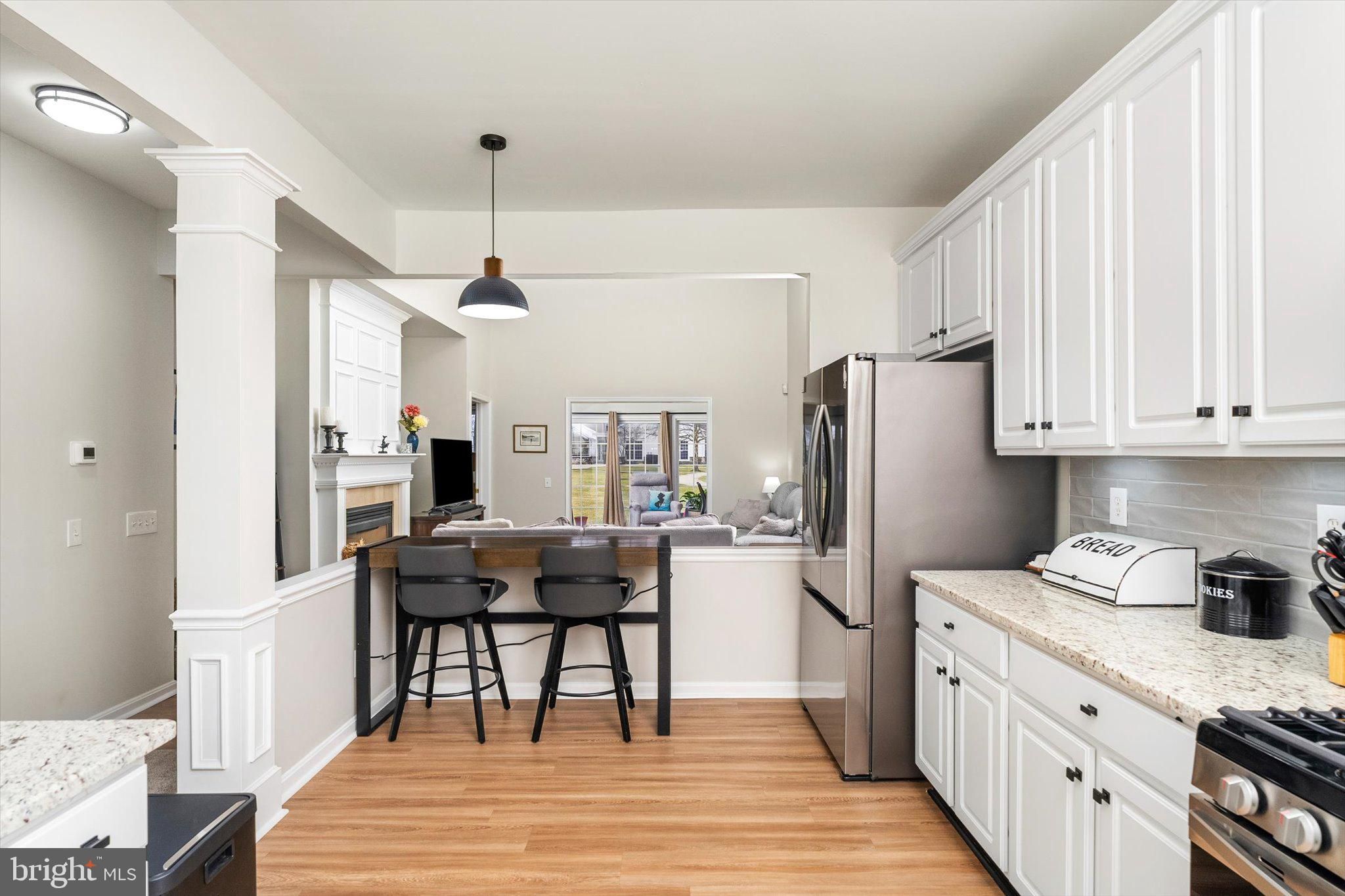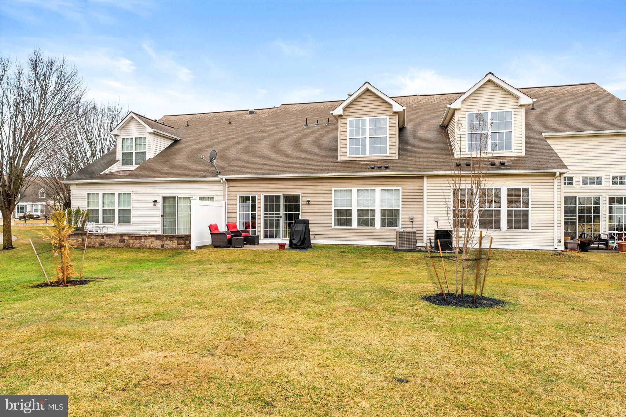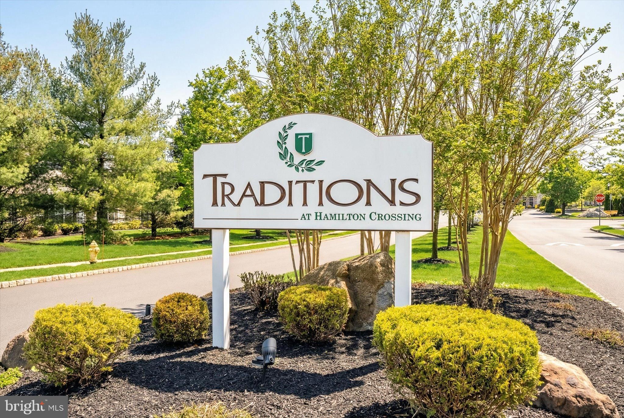 Do not miss this stunning and all updated 2 bedroom, 2 full bathroom home in the highly desirable active 55+ community of Traditions at Hamilton. This Crosswicks model is in the perfect location within easy walking distance to the clubhouse, pool and has beautiful views of the lake and garden. The open floor plan features all new luxury vinyl plank flooring and fresh paint throughout. You'll be greeted by the foyer and ample dining room, beautiful and spacious eat-in kitchen with 42-inch cabinetry, new granite countertops, designer tile backsplash, and new stainless steel appliances. The large living room has a cathedral ceiling, recessed lights, ceiling fan and a gas-burning fireplace with mantle, creating an open yet cozy space. Off of the family room is a light-filled sunroom with new ceiling fan and sliding doors to the patio, that can be used as a home office or additional recreation space. The luxurious primary bedroom suite has custom blinds, recessed lights, ceiling fan, a spacious bathroom with enlarged designer-tiled walk-in shower with custom glass door, double sinks, private toilet, and a huge walk-in closet with a new custom closet organizer system. The generous second bedroom has a ceiling fan and a large closet. This home also features a large laundry room with new washer and dryer, cabinetry, and sink. The freshly painted attached garage offers plenty of storage space and has newly installed pull-down attic stairs for even more storage. There is also a new HVAC system including York AC and Rheem heater. The clubhouse features a fitness center, many gathering spaces, and a ballroom for social events. Outdoor amenities include a pool, tennis courts, pickleball, a greenhouse, scenic ponds, a garden, a gazebo, and walking trails, for your leisure and enjoyment. Wonderfully located near plenty of parks, shopping, restaurants, places of worship, all major highways and train stations. Take advantage of this opportunity to enjoy the low-maintenance lifestyle of this truly move-in ready active adult home in Central NJ.
