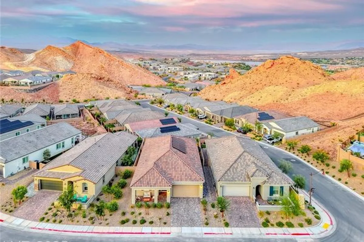 Discover unparalleled luxury in Lake Las Vegas’s most exclusive cliff-side enclave. This newer-construction home, set on a private lot with no front or direct rear neighbors, showcases breathtaking mountain and lake panoramas that you must see. Natural light floods an open-concept interior, highlighting upscale designer finishes and a chef’s gourmet kitchen with quartz countertops, farmhouse sink, custom backsplash and oversized island. The primary suite boasts a spa-inspired bath with dual vanities, an expansive walk-in shower and a generous walk-in closet. Enjoy morning coffee with 360° views from the covered porch or your secluded backyard patio. Premium upgrades include water softener, EV-charger pre-wiring and owned solar panels installed by the builder. Enjoy resort-style amenities featuring 24-hr roving security, scenic parks and serene trails, premier golf and lake access, plus a fully transferable $25,000 value Sports Club membership. Live the high life in your new dream home.