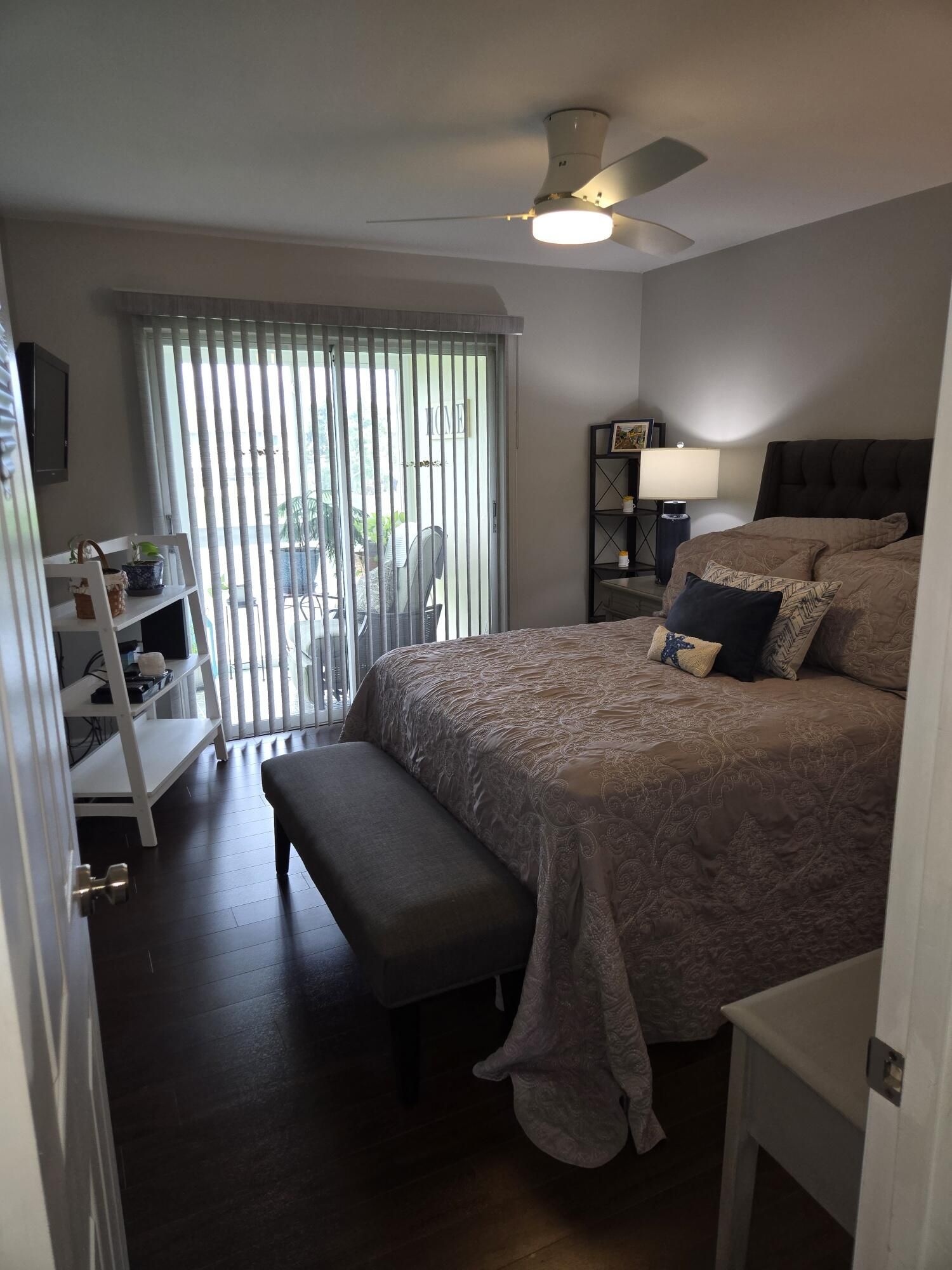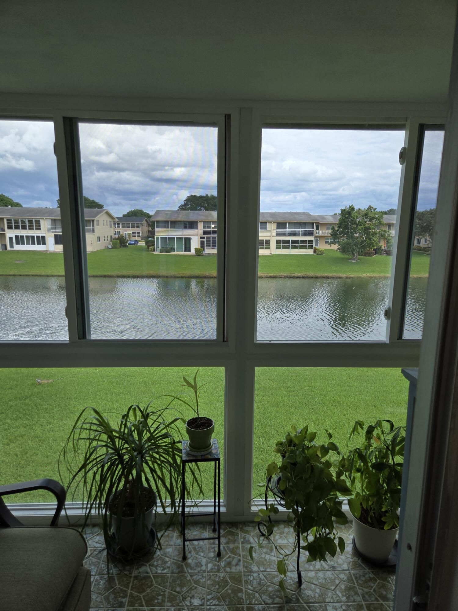 This is a beautiful condo that you will be pleased to call your home. It is conveniently located near the Clubhouse and the Haverhill gate. The updated kitchen features granite counter tops, upgraded stainless steel appliances and cabinets with under counter lighting. There is upgraded lighting and ceiling fans throughout. Both bathrooms have been tastefully upgraded. There is instant hot water system. Two sliding glass doors lead out to the large lanai which features a gorgeous water view, floor to ceiling hurricane glass windows and a new storage unit. This condo community has completed the new building code structural requirements. The improvement assessment has been paid in full by the current owner. This home has been very well kept and is ready for you! ,