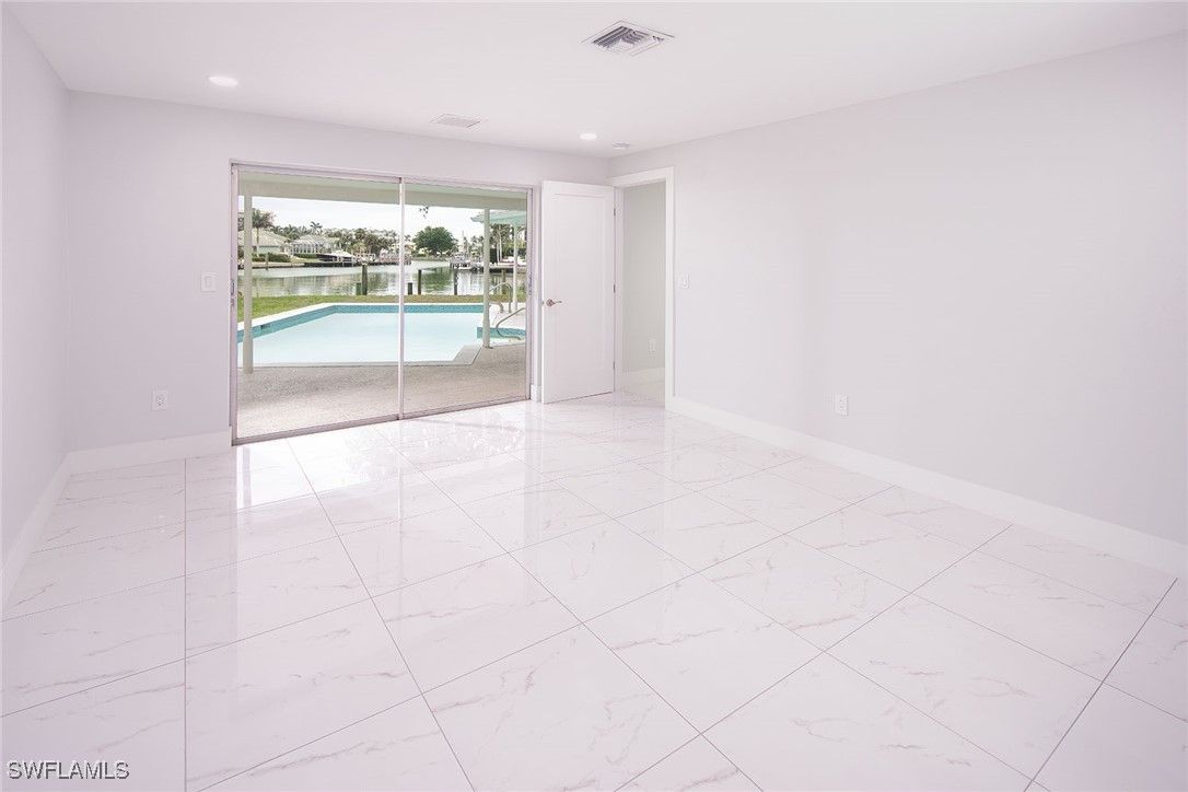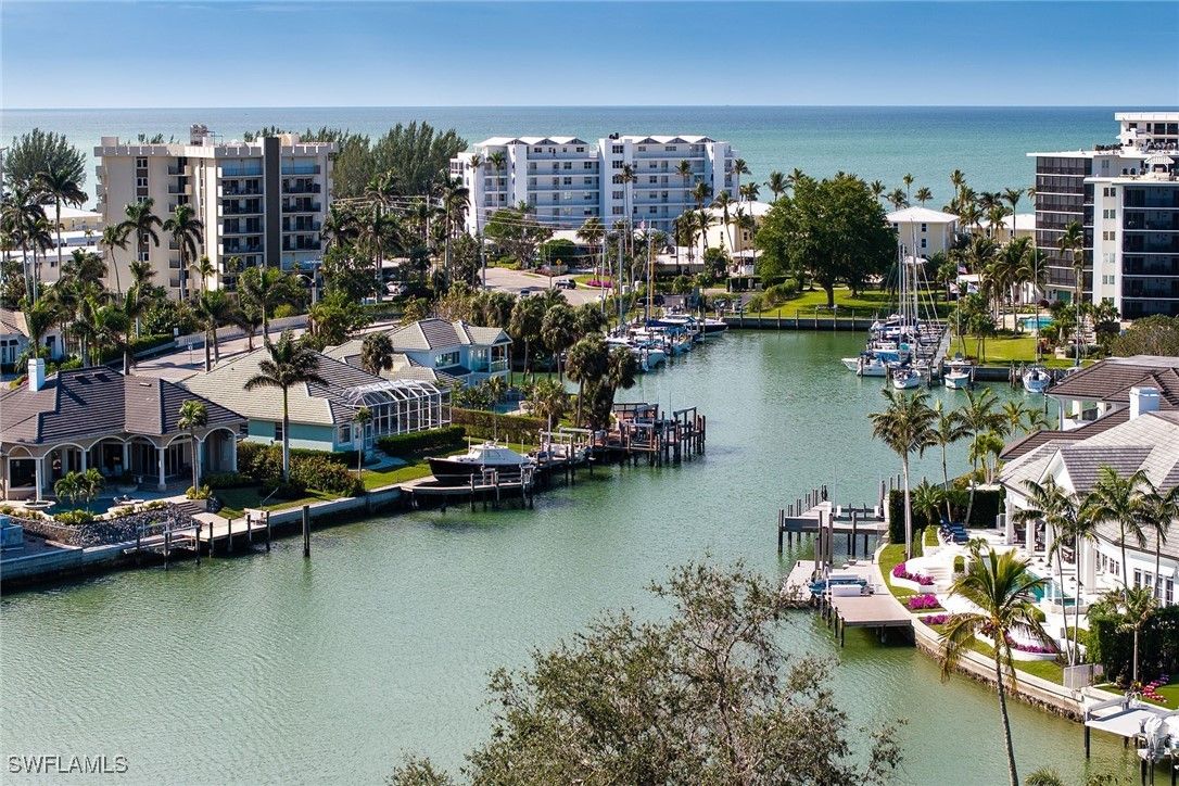 This is the optimum waterfront site for a sailor or power-boater who wants a sheltered mooring site with almost immediate access to the gulf. Doctor's Pass is five minutes from the dock. There are no bridges and adequate depth! The southwest exposure from the rear yard and dock provides stunning sunsets over the wide lagoon, and the soft prevailing sea-breezes keep the pool area comfortable year-round. The residence has been completely re-constructed over the last two years with a new roof, new partition walls, baseboards, cabinetry baths, appliances and HV/AC equipment, and is ready for owner decorating and occupancy or rental. The floor plan has split primary suites, a third guest bedroom and a large den or office. Surrounded by mature live oaks in one of Naples loveliest neighborhoods, it is offered at lot value and awaits your pleasure.