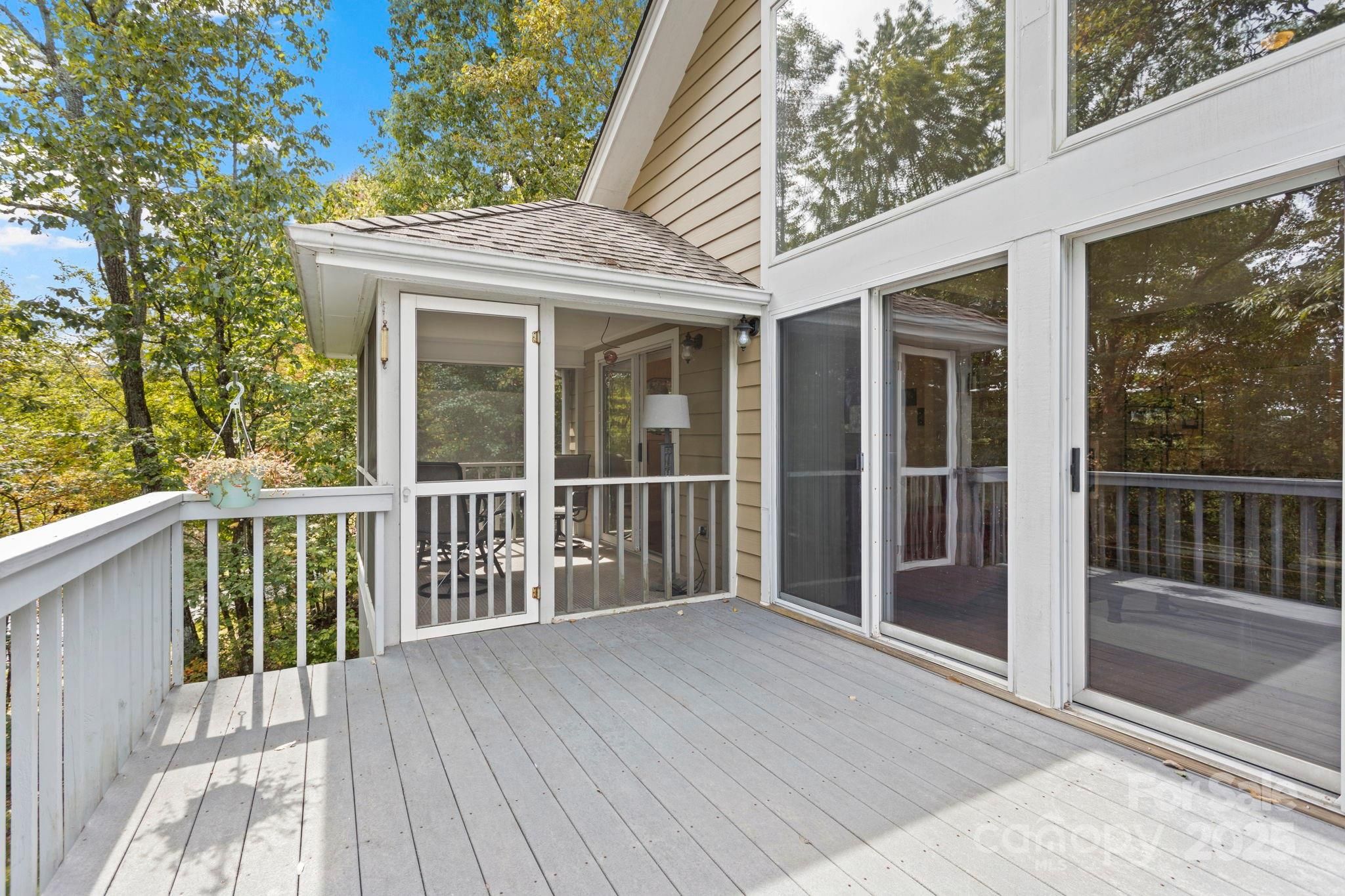 Welcome to this beautifully designed freestanding villa located in the prestigious, gated golf course community of Kenmure. With an ideal floor plan and over 2800 SQFT of living space, this exceptional 4 bedroom/ 4 bath home combines spacious comfort, functionality and refined mountain spaces – perfect for full-time living or a fantastic mountain retreat. Step into the expansive great room, where soaring vaulted ceilings, a cozy gas fireplace and a dramatic wall of windows flood the space with natural light. Flowing seamlessly into the dining area and kitchen, the open layout is ideal for entertaining or family gatherings. The oak cabinetry, generous counter and cabinet space with breakfast nook make the kitchen both practical and inviting. The primary suite is a true retreat featuring a walk-in closet and beautifully updated bath with granite countertops, makeup vanity and a stunning tiled walk-in shower. A guest bedroom with ensuite bath, laundry room and multiple outdoor living spaces including an open deck and screened porch complete the main level. Upstairs a loft area offers the perfect space for a study or creative studio. Downstairs, discover a spacious family room with custom wet bar/kitchenette – complete with refrigerator, microwave and ample cabinetry making it an ideal guest suite or entertainment zone. The second primary suite includes its own walk-in closet, full bath with makeup vanity and second laundry area, while another guest bedroom and full bath provide plenty of room for visitors. Enjoy multiple outdoor living areas: a covered deck, open LL deck and stairs leading to a private backyard. All of this in a prime location with easy golf cart access to the clubhouse and all of Kenmure’s upscale amenities including golf, tennis, pickleball, fitness center, indoor/outdoor pool and fine dining. Don’t miss this rare opportunity to own a well-appointed villa in one of Western NC’s premier communities.
