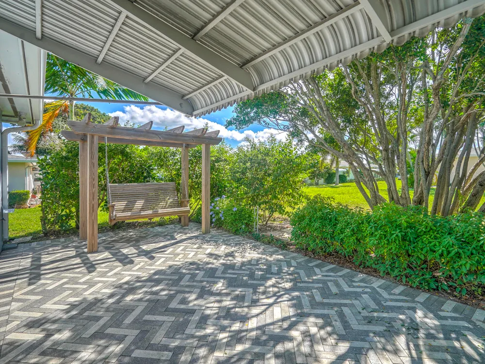Fully Renovated Open Floor Plan 2 bed/ 2 bath. Modern Design First Floor Villa with Bonus Florida Room. Highly desired Corner Unit with Private Rear Patio featuring Bench Swing Pergola and Lush Landscaping. Custom Kitchen with Matte Stone Countertops with Penisula Bar and Newer Appliances. Built- in Entertainment Center in Living Area. Master Bath w/ Walk-In Shower and Walk-In Closet. Custom Tongue and Groove Cedar Paneled Ceiling in Florida Room/Crown Moulding and Ceramic Tile Throughout.Best of South Florida Living!!! Over 55 Community conveniently located near restaurants, shopping, beaches.....