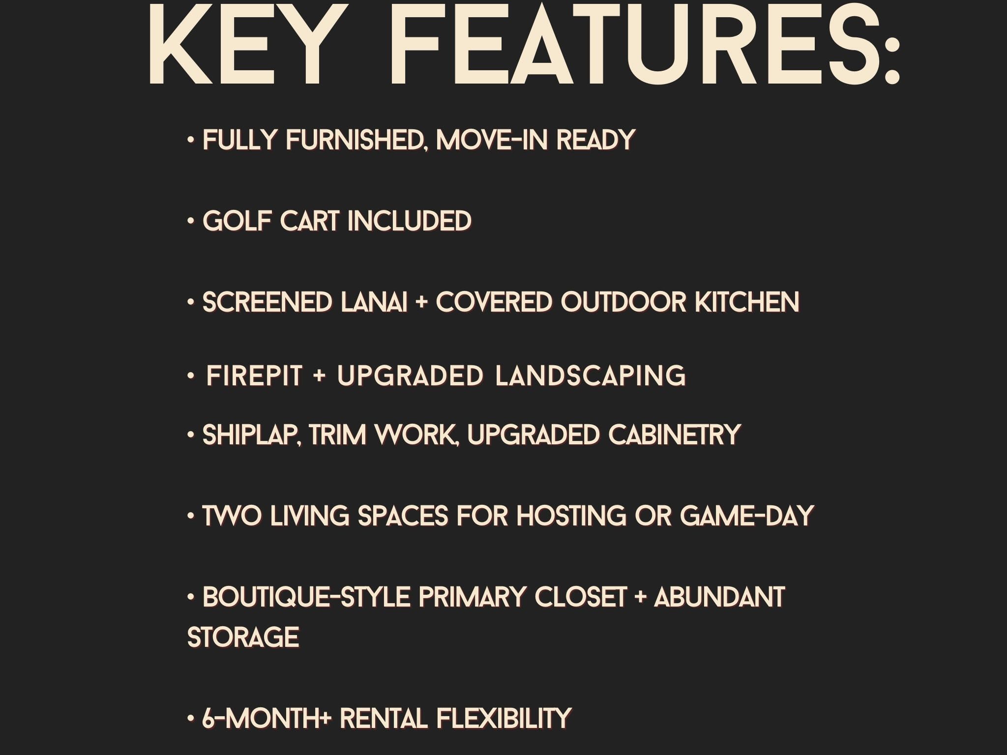 With the golf cart included and every detail turnkey and furnished, this home delivers immediate, elevated living in NatureWalk at Watersound Origins. Exceptional curb appeal features a gas lantern, custom shutters, a custom-painted front door, enhanced landscaping, a screened-in lanai, a covered outdoor kitchen, and a firepit for cool evenings. Inside, upgraded trim work, paneling, shiplap, enhanced cabinetry, a central fireplace, and abundant closet space create a refined yet comfortable setting. Enjoy instant access to Lake Powell, community pools, fitness, trails, golf, shopping, dining, and the option for 6-month+ rentals.