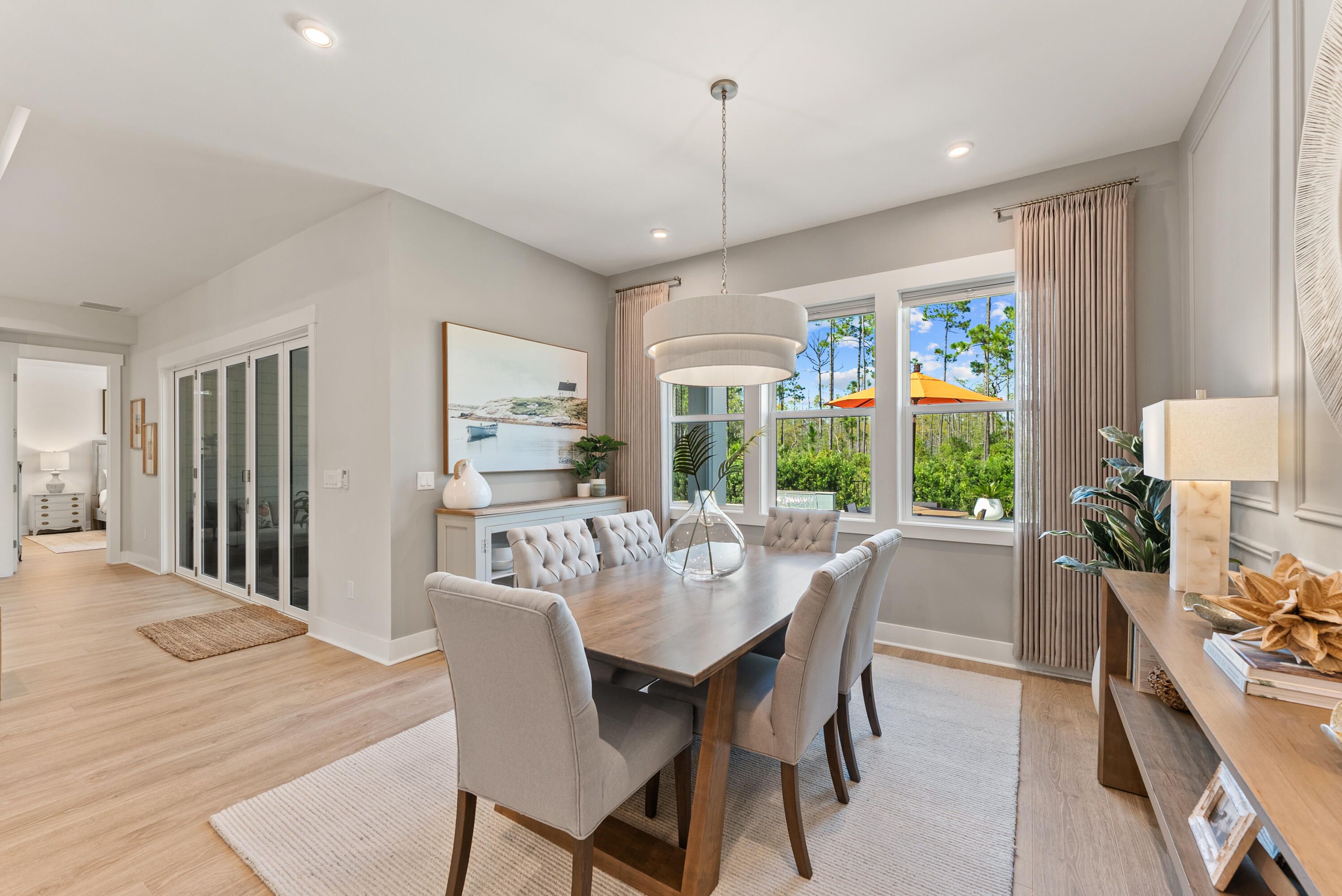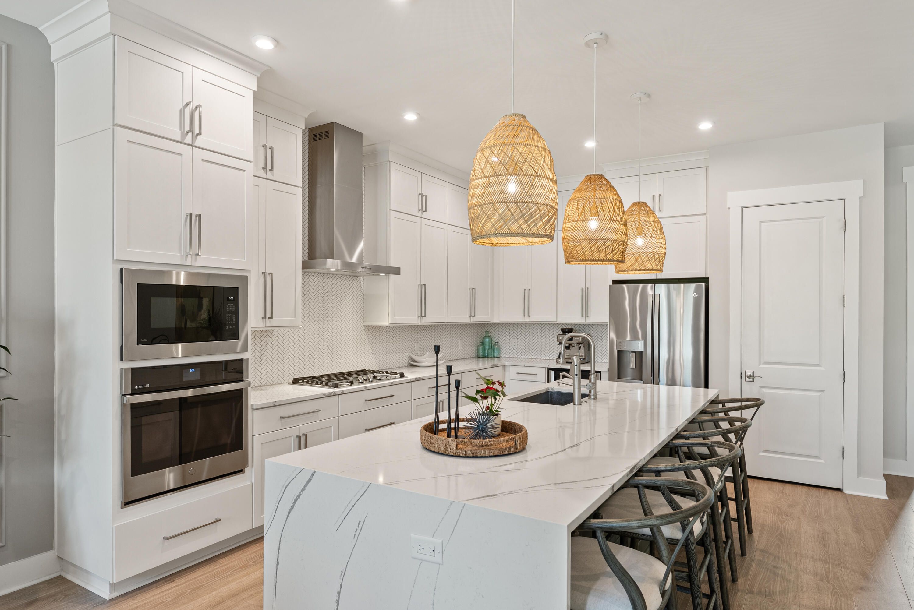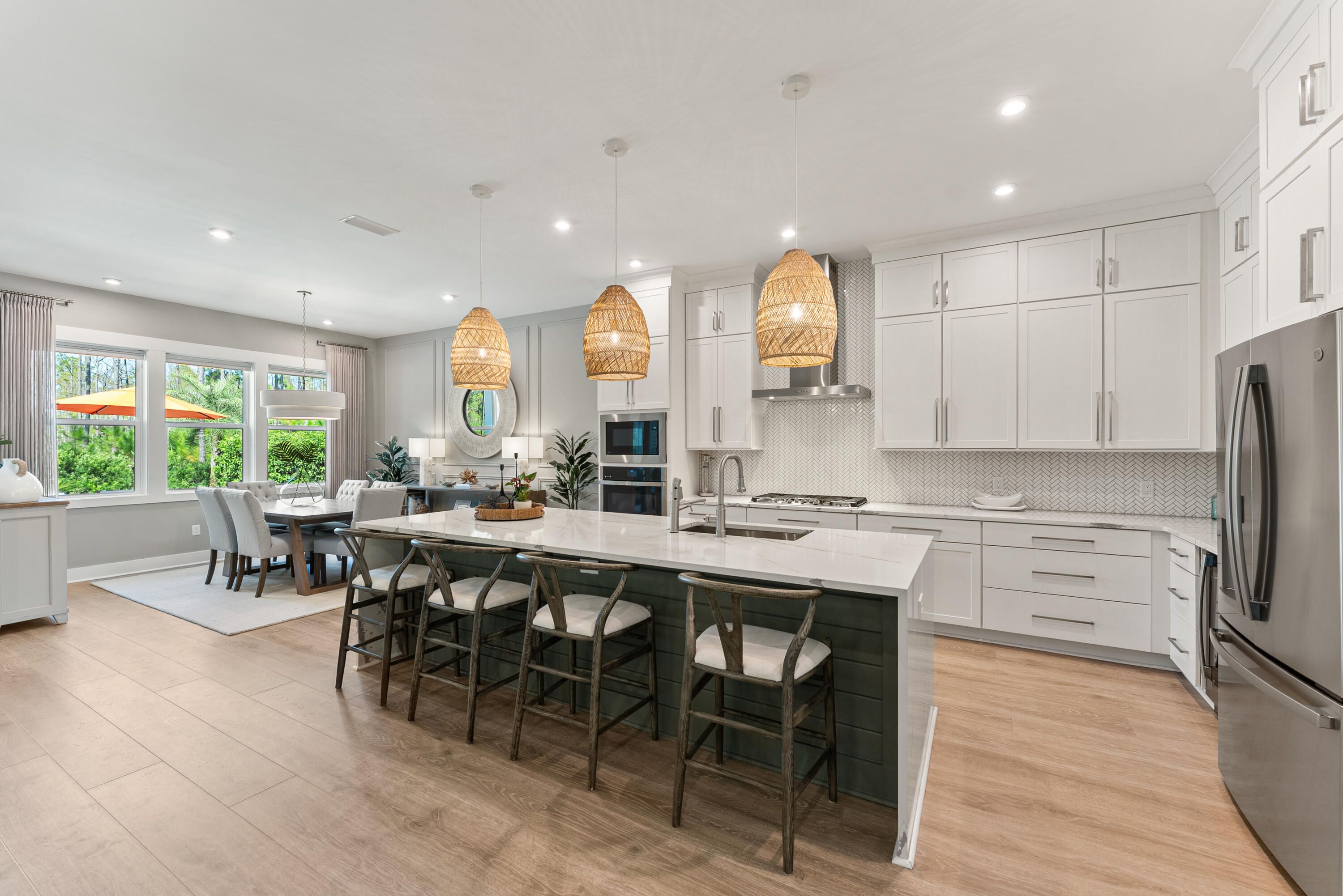 Welcome to Naturewalk at Watersound Origins, a luxury gated community along the 30A corridor offering exclusive resort-style amenities. This stunning 4BR|3.5BA Redington floorplan rests on a premium, ultra-private lot backing to a protected nature preserve delivering serene views & complete tranquility. Thoughtfully designed for effortless single-level living, the open concept layout seamlessly blends indoor/outdoor spaces. With over $250k in curated upgrades & offered fully furnished, every detail has been selected for elegance and comfort. Inside you'll find 10ft ceilings, 8ft doors, custom woodwork, Levolor top-down/bottom-up cellular shades & designer lighting which create a warm refined atmosphere. Living Rm features beautiful wood beamed ceiling, built-in cabinetry, 5-panel folding glass doors that open to the Lanai complete with motorized, retractable screens-creating seamless indoor-outdoor living year round! You will fall in love with this dream Kitchen fully equipped with stacked cabinetry that stretch to the ceiling and custom layout upgraded with deep pot drawers, stainless steel appliance package with GE Café 5 burner gas cooktop & wine fridge, premium quartz island with waterfall edge wrapped in shiplap, under cabinet lighting & water filtration system. Primary Suite is a true sanctuary tucked away at the rear of the home flooded with natural light & offering direct lanai access. Spa-inspired bath boasts a soaking tub, walk-in shower, dual vanity & a showstopping custom closet designed with organization and style in mind! Guest suites are equally refined, each with en-suite baths enhanced with wainscoting & elegant finishes. Additional highlights include a spacious laundry room with tons of cabinetry, sink & custom coat closet - W/D stay, 2 car garage with EV charger outlet & additional refrigerator along with garage ceiling storage racks. Step outside to experience the crown jewel of this home - a backyard oasis featuring a 14 x 26ft saltwater pool w/an 8 x 8ft tanning ledge, sheer descent waterfall, glass bead gunite finish and lush professional landscaping & lighting along w/sprinkler system - overlooking the nature preserve. Whether hosting summer barbecues or enjoying quiet evenings under the stars, this outdoor retreat is the ultimate extension of your living space. As part of Naturewalk at Watersound Origins, residents enjoy access to all Origins premier amenities including resort-style pools, hot tub, firepit, fitness centers, pickleball & tennis courts, walking trails, unlimited golf, playgrounds, access to Lake Powell w/complimentary kayaks for residents-all within this non-short-term rental community. Additionally, at the neighborhood entrance, Watersound Town Center is growing and includes Publix, multiple restaurants, coffee shops and much more. 30Avenue, Rosemary and Alys Beach are just a short bike ride away! Enjoy everything the sugar white sands of the Emerald Coast has to offer!