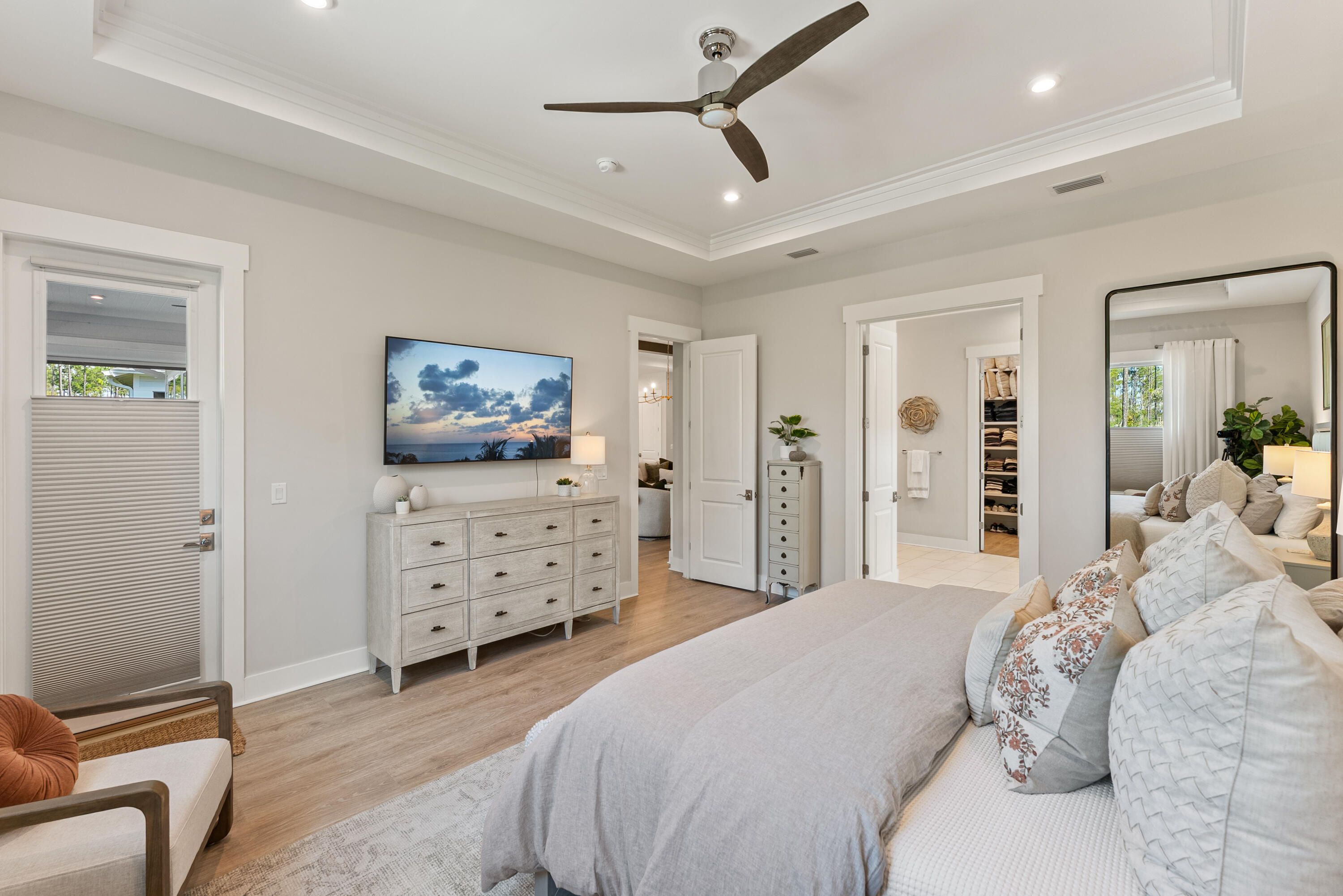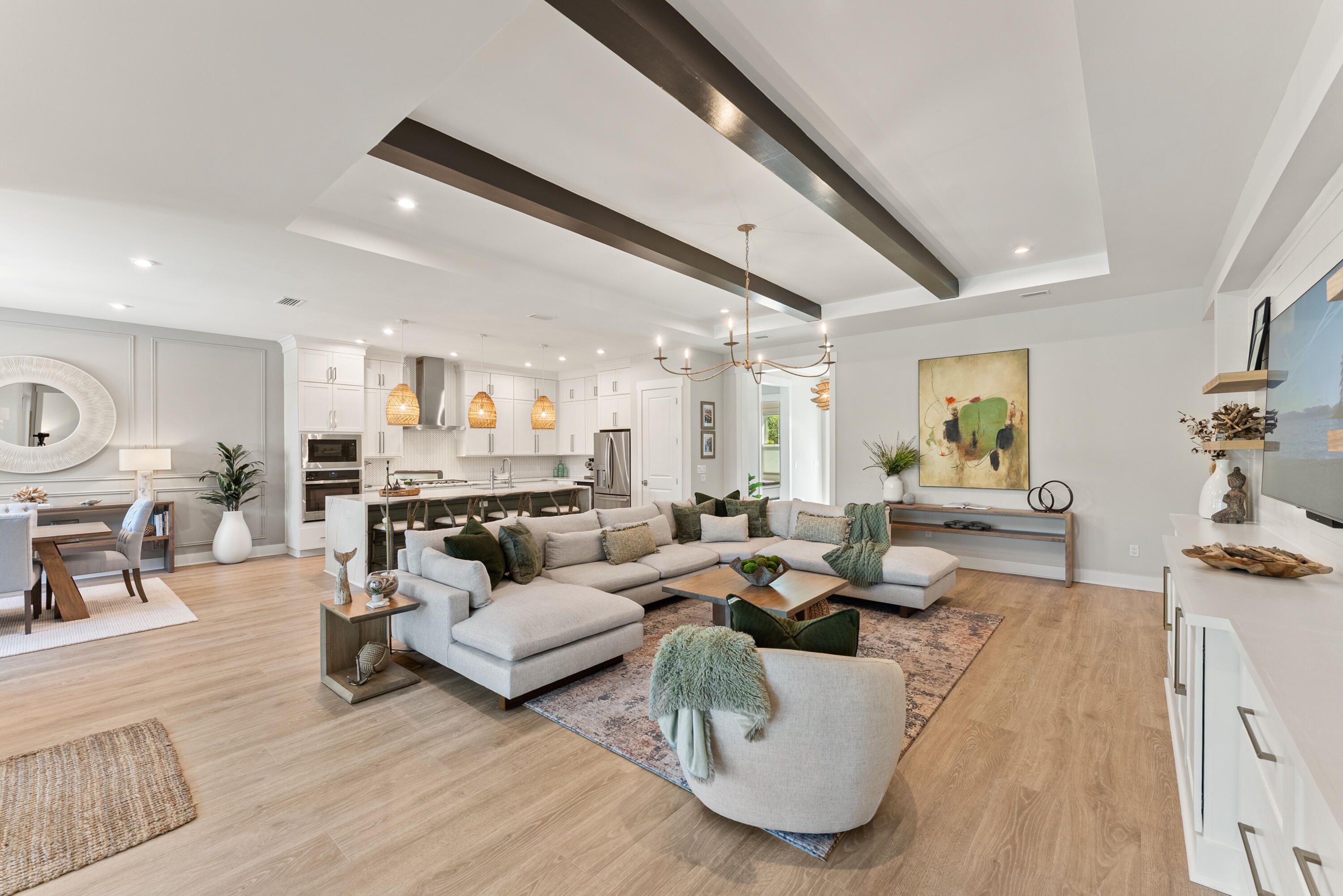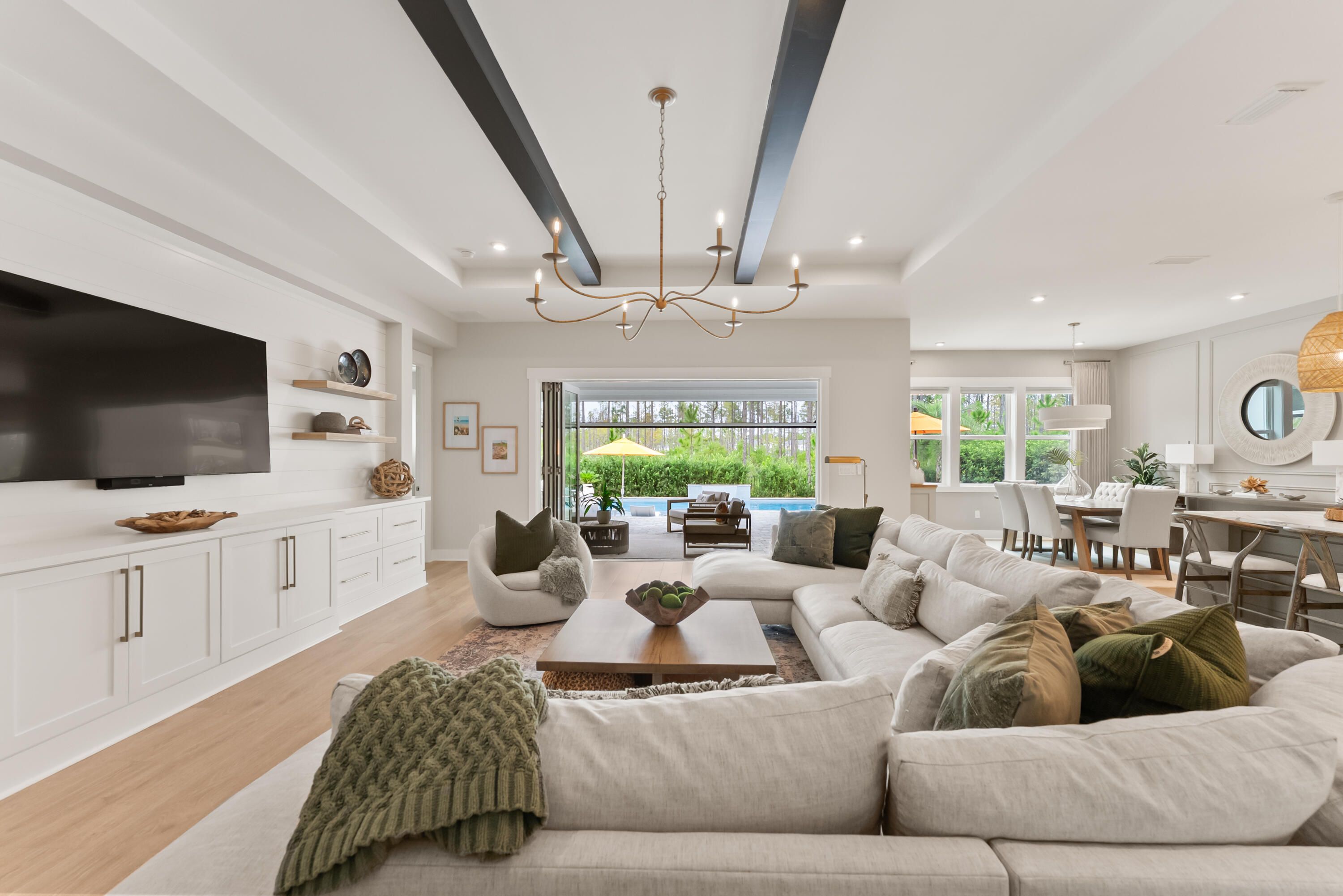 Welcome to Naturewalk at Watersound Origins, a luxury gated community along the 30A corridor offering exclusive resort-style amenities. This stunning 4BR|3.5BA Redington floorplan rests on a premium, ultra-private lot backing to a protected nature preserve delivering serene views & complete tranquility. Thoughtfully designed for effortless single-level living, the open concept layout seamlessly blends indoor/outdoor spaces. With over $250k in curated upgrades & offered fully furnished, every detail has been selected for elegance and comfort. Inside you'll find 10ft ceilings, 8ft doors, custom woodwork, Levolor top-down/bottom-up cellular shades & designer lighting which create a warm refined atmosphere. Living Rm features beautiful wood beamed ceiling, built-in cabinetry, 5-panel folding glass doors that open to the Lanai complete with motorized, retractable screens-creating seamless indoor-outdoor living year round! You will fall in love with this dream Kitchen fully equipped with stacked cabinetry that stretch to the ceiling and custom layout upgraded with deep pot drawers, stainless steel appliance package with GE Café 5 burner gas cooktop & wine fridge, premium quartz island with waterfall edge wrapped in shiplap, under cabinet lighting & water filtration system. Primary Suite is a true sanctuary tucked away at the rear of the home flooded with natural light & offering direct lanai access. Spa-inspired bath boasts a soaking tub, walk-in shower, dual vanity & a showstopping custom closet designed with organization and style in mind! Guest suites are equally refined, each with en-suite baths enhanced with wainscoting & elegant finishes. Additional highlights include a spacious laundry room with tons of cabinetry, sink & custom coat closet - W/D stay, 2 car garage with EV charger outlet & additional refrigerator along with garage ceiling storage racks. Step outside to experience the crown jewel of this home - a backyard oasis featuring a 14 x 26ft saltwater pool w/an 8 x 8ft tanning ledge, sheer descent waterfall, glass bead gunite finish and lush professional landscaping & lighting along w/sprinkler system - overlooking the nature preserve. Whether hosting summer barbecues or enjoying quiet evenings under the stars, this outdoor retreat is the ultimate extension of your living space. As part of Naturewalk at Watersound Origins, residents enjoy access to all Origins premier amenities including resort-style pools, hot tub, firepit, fitness centers, pickleball & tennis courts, walking trails, unlimited golf, playgrounds, access to Lake Powell w/complimentary kayaks for residents-all within this non-short-term rental community. Additionally, at the neighborhood entrance, Watersound Town Center is growing and includes Publix, multiple restaurants, coffee shops and much more. 30Avenue, Rosemary and Alys Beach are just a short bike ride away! Enjoy everything the sugar white sands of the Emerald Coast has to offer!