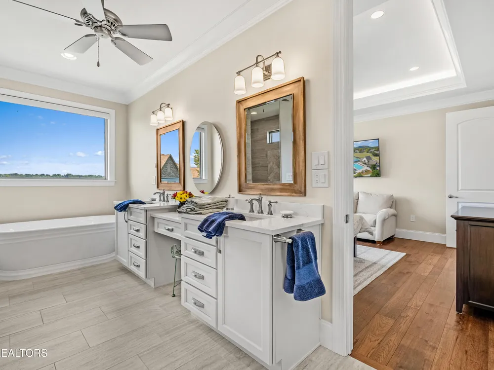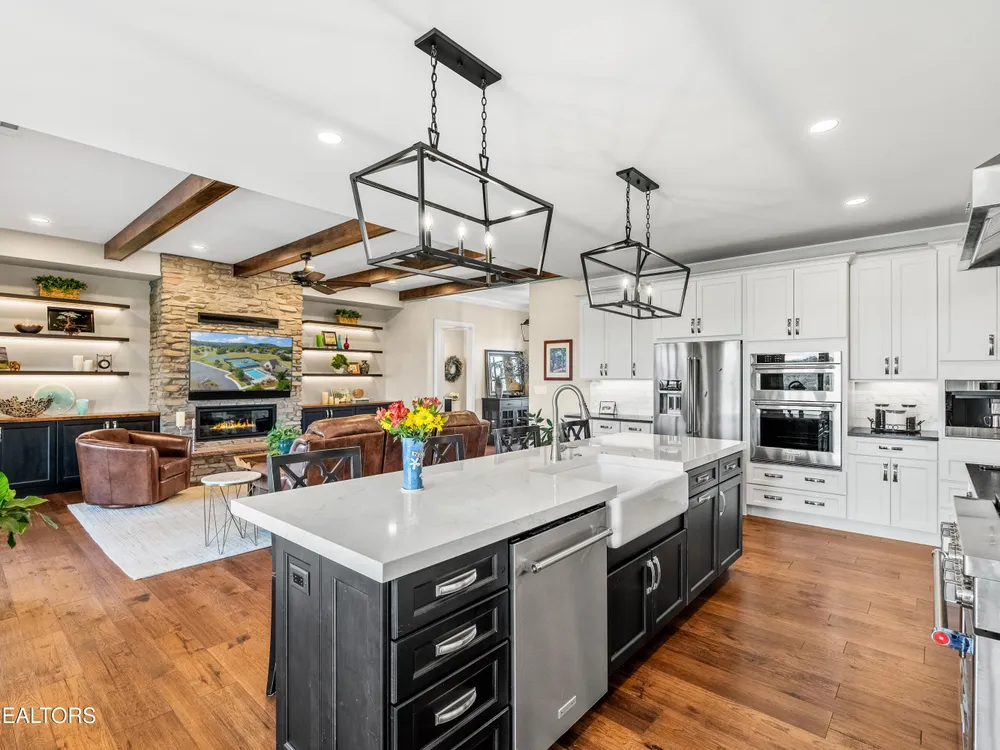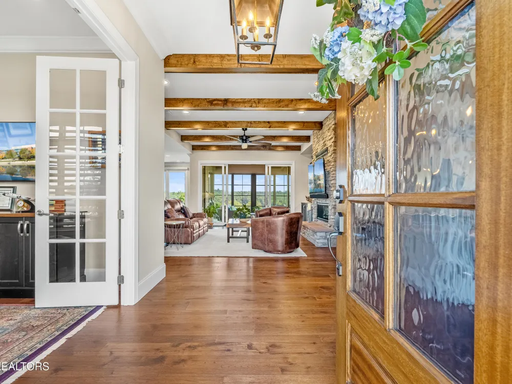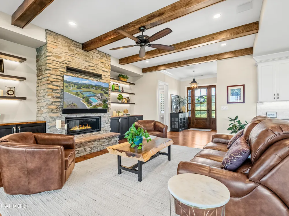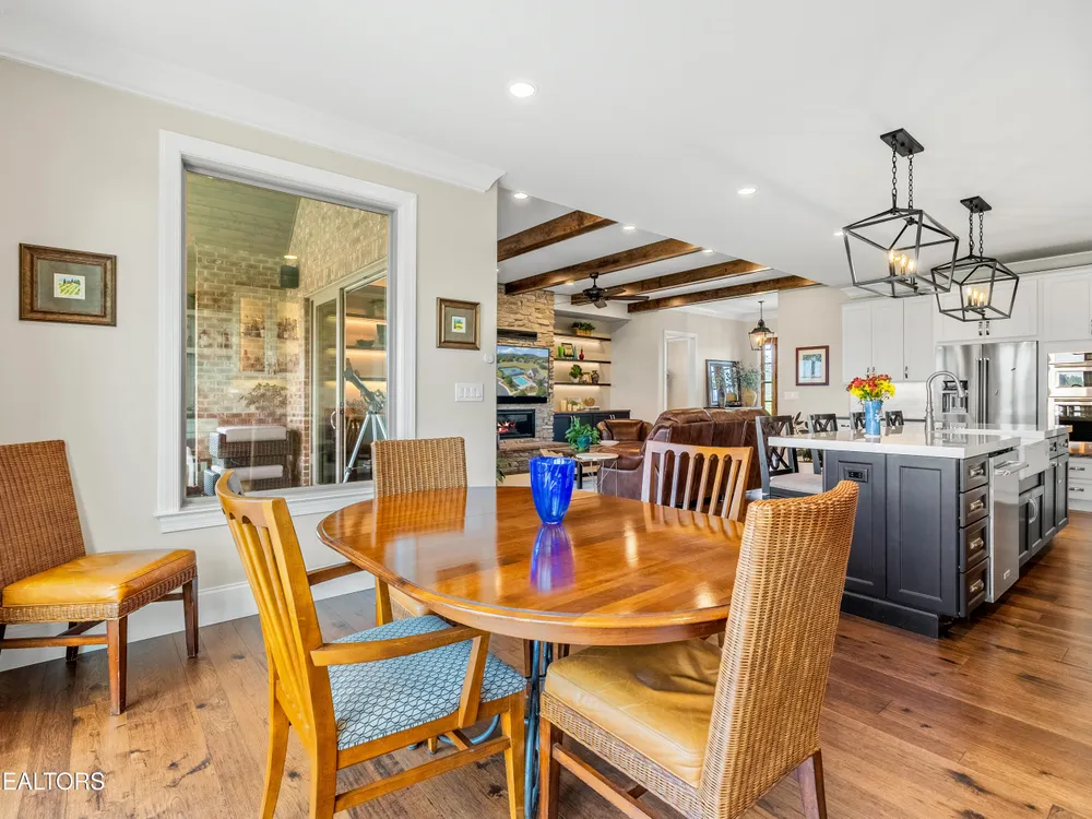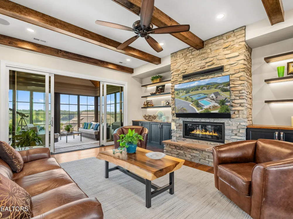 Step into a residence where sophistication meets serenity. This exquisite home masterfully blends timeless elegance with modern design, offering a harmonious balance of luxury, comfort, and effortless living. Every detail has been thoughtfully curated to create a sanctuary that feels both grand and welcoming—an ideal retreat for those who appreciate refined living and impeccable craftsmanship. Interior Features This stunning ~2,500 sq. ft. single-level custom home, built in 2022 by McCamy Construction, offers effortless living and breathtaking views. From the moment you step inside, you're greeted by an open-concept living area filled with natural light. The beamed ceiling and expansive windows beautifully frame the shimmering waters of Tellico Lake and the majestic Smokie Mountains beyond. The gourmet kitchen is a chef's dream, featuring a mix of quartz and honed granite countertops, a large center island, and top-of-the-line stainless steel appliances—including a built-in coffee machine and clear-ice ice maker. Whether you're hosting friends or enjoying a quiet meal at home, this space is designed to impress. A cozy gas fireplace anchors the living room, adding warmth and charm to every gathering. The primary suite provides a serene retreat with a spacious walk-in closet and a luxurious en-suite bath adorned with premium fixtures and heated flooring. Three additional bedrooms—plus an office or den—offer versatility and comfort for family, guests, or workspace needs. Each room is thoughtfully designed with generous storage and access to a beautifully appointed guest bath. Step outside to a meticulously landscaped yard or enjoy the tranquil setting from the enclosed climate-controlled screened porch—perfect for morning coffee, alfresco dining, or simply soaking in the incredible views. Additional highlights include elegant flooring throughout, abundant storage solutions, and a spacious garage featuring epoxy-coated floors and custom built-in cabinetry. Community & Lifestyle Discover Rarity Bay, a prestigious gated lakefront and golf course community on the shores of Tellico Lake. Here, every day feels like a resort getaway. Enjoy access to world-class amenities including the championship golf course, clubhouse, tennis and pickleball courts, community docks, and a vibrant social calendar that brings neighbors together. With over 500 stunning homes and panoramic views at every turn, Rarity Bay offers a lifestyle defined by elegance, leisure, and natural beauty.