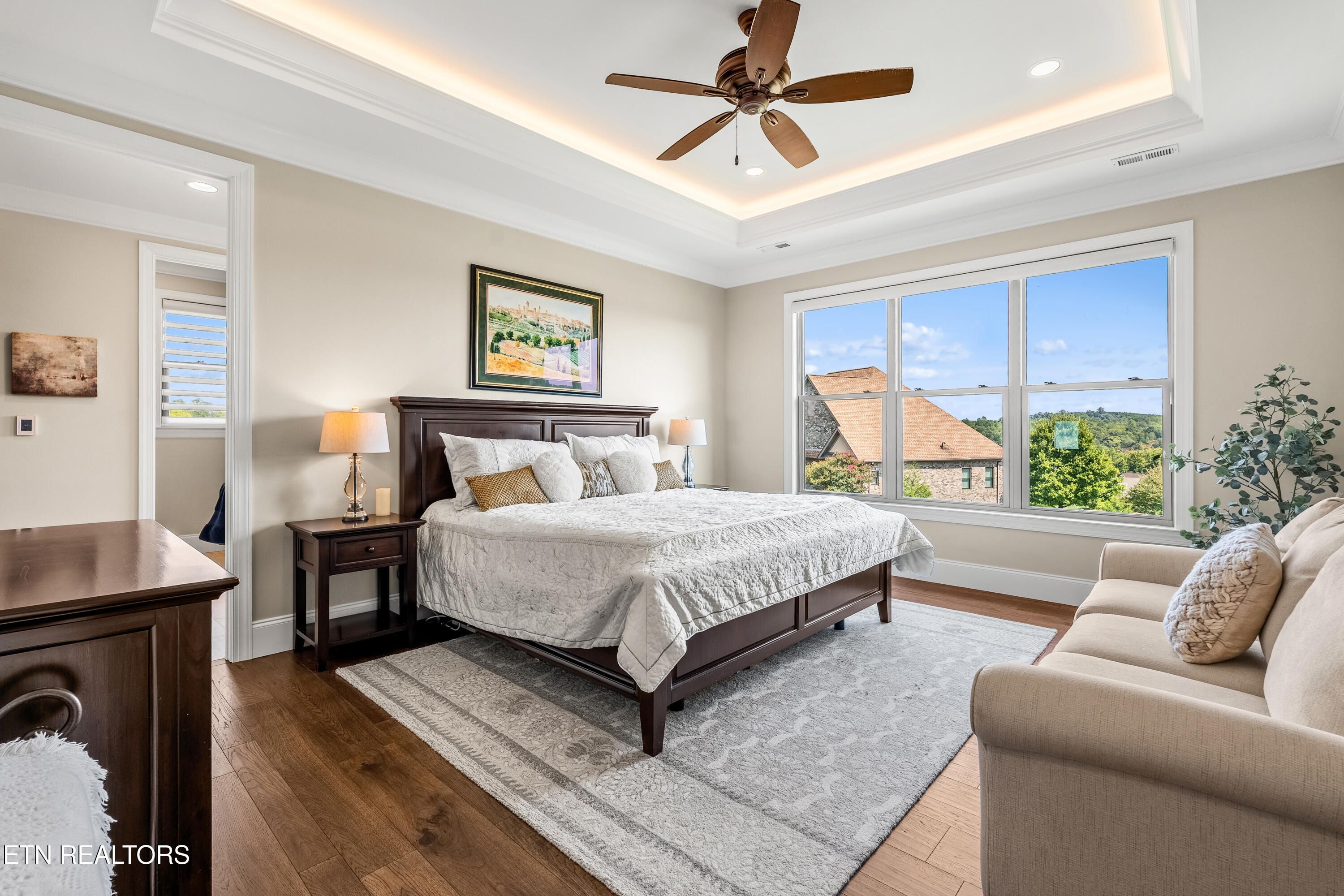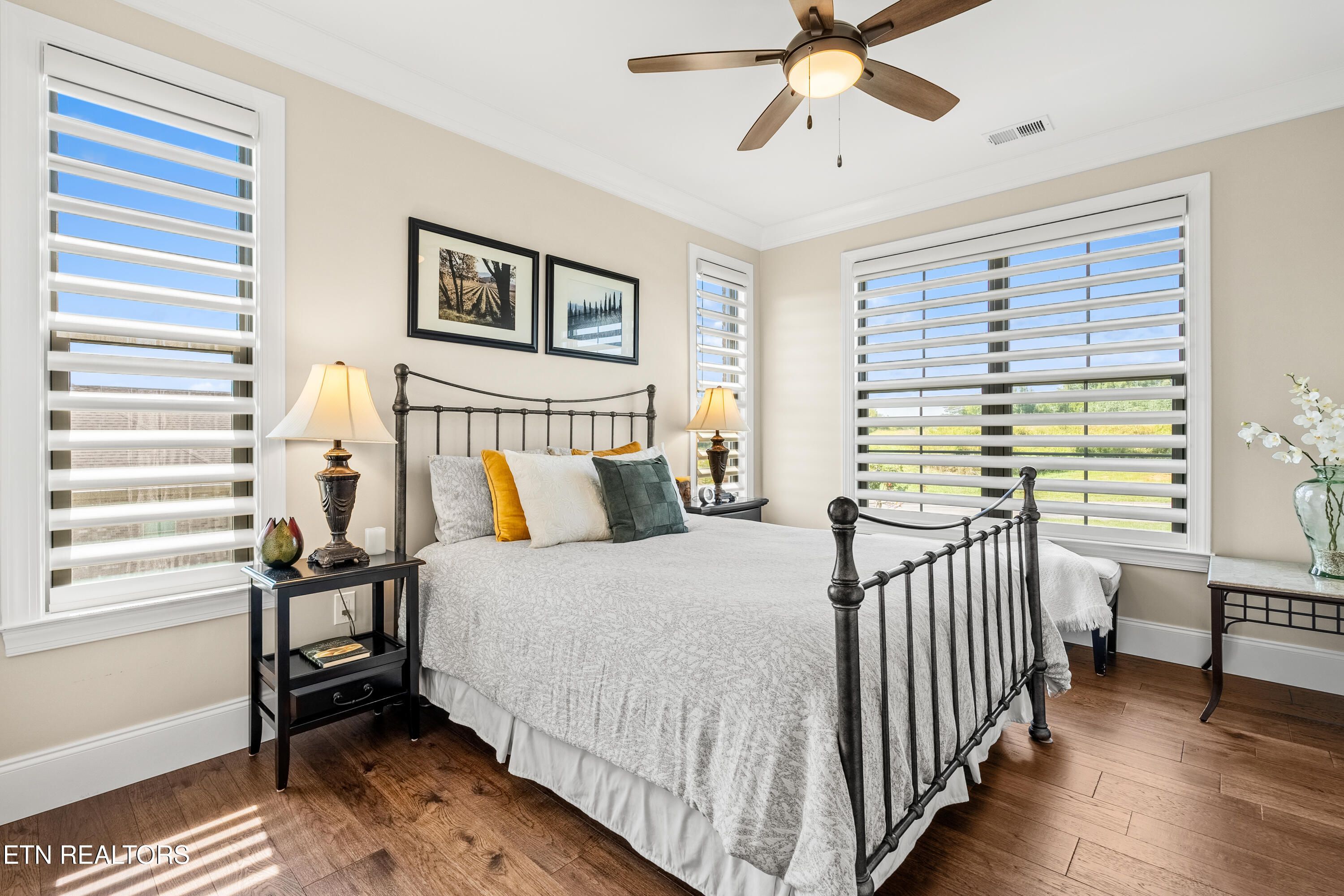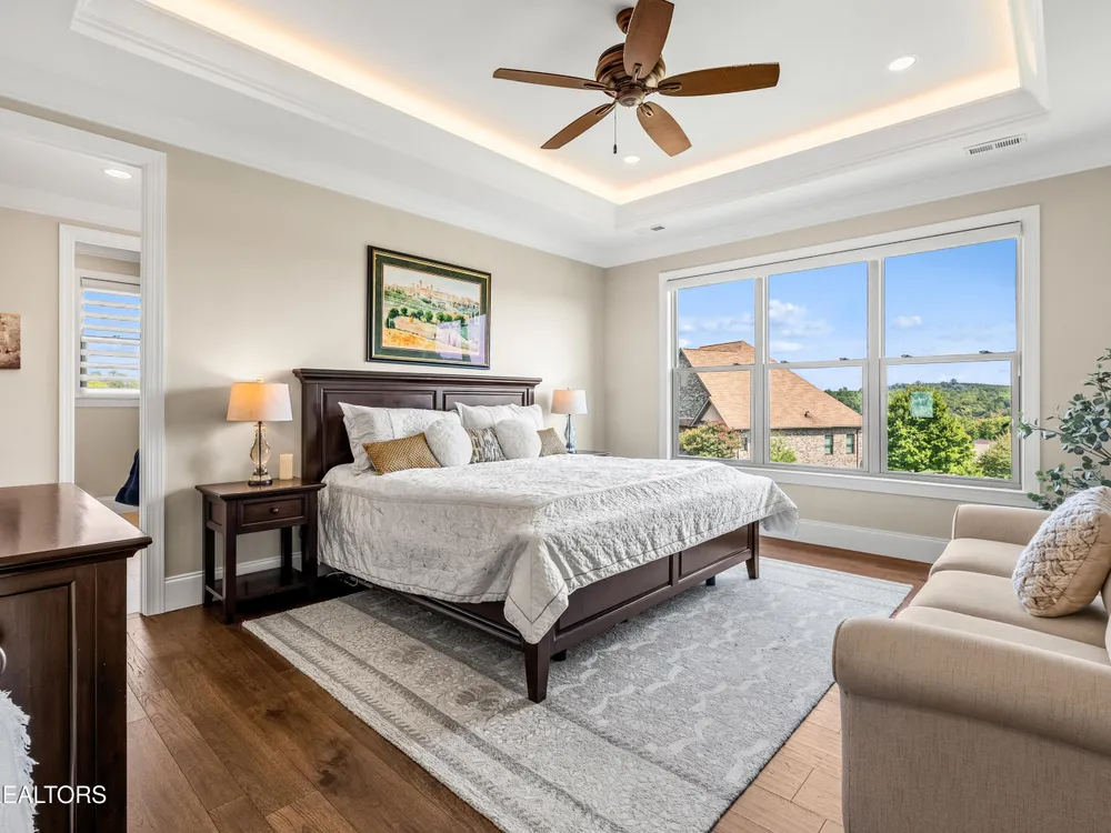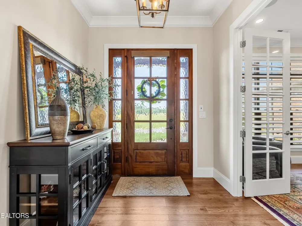 Step into a residence where sophistication meets serenity. This exquisite home masterfully blends timeless elegance with modern design, offering a harmonious balance of luxury, comfort, and effortless living. Every detail has been thoughtfully curated to create a sanctuary that feels both grand and welcoming—an ideal retreat for those who appreciate refined living and impeccable craftsmanship. Interior Features This stunning ~2,500 sq. ft. single-level custom home, built in 2022 by McCamy Construction, offers effortless living and breathtaking views. From the moment you step inside, you're greeted by an open-concept living area filled with natural light. The beamed ceiling and expansive windows beautifully frame the shimmering waters of Tellico Lake and the majestic Smokie Mountains beyond. The gourmet kitchen is a chef's dream, featuring a mix of quartz and honed granite countertops, a large center island, and top-of-the-line stainless steel appliances—including a built-in coffee machine and clear-ice ice maker. Whether you're hosting friends or enjoying a quiet meal at home, this space is designed to impress. A cozy gas fireplace anchors the living room, adding warmth and charm to every gathering. The primary suite provides a serene retreat with a spacious walk-in closet and a luxurious en-suite bath adorned with premium fixtures and heated flooring. Three additional bedrooms—plus an office or den—offer versatility and comfort for family, guests, or workspace needs. Each room is thoughtfully designed with generous storage and access to a beautifully appointed guest bath. Step outside to a meticulously landscaped yard or enjoy the tranquil setting from the enclosed climate-controlled screened porch—perfect for morning coffee, alfresco dining, or simply soaking in the incredible views. Additional highlights include elegant flooring throughout, abundant storage solutions, and a spacious garage featuring epoxy-coated floors and custom built-in cabinetry. Community & Lifestyle Discover Rarity Bay, a prestigious gated lakefront and golf course community on the shores of Tellico Lake. Here, every day feels like a resort getaway. Enjoy access to world-class amenities including the championship golf course, clubhouse, tennis and pickleball courts, community docks, and a vibrant social calendar that brings neighbors together. With over 500 stunning homes and panoramic views at every turn, Rarity Bay offers a lifestyle defined by elegance, leisure, and natural beauty.