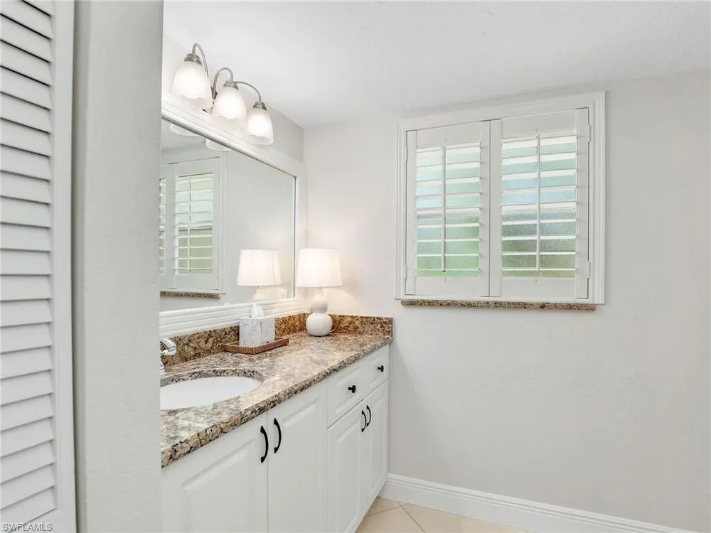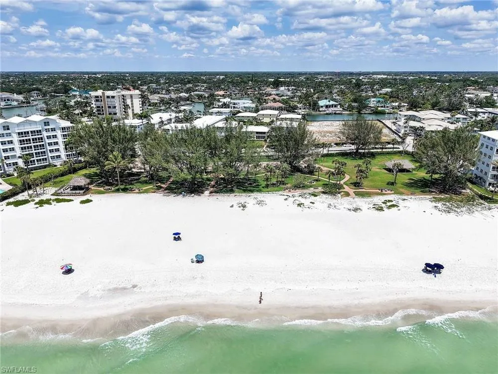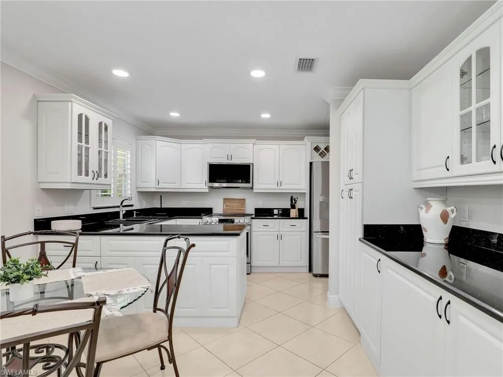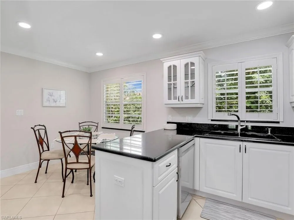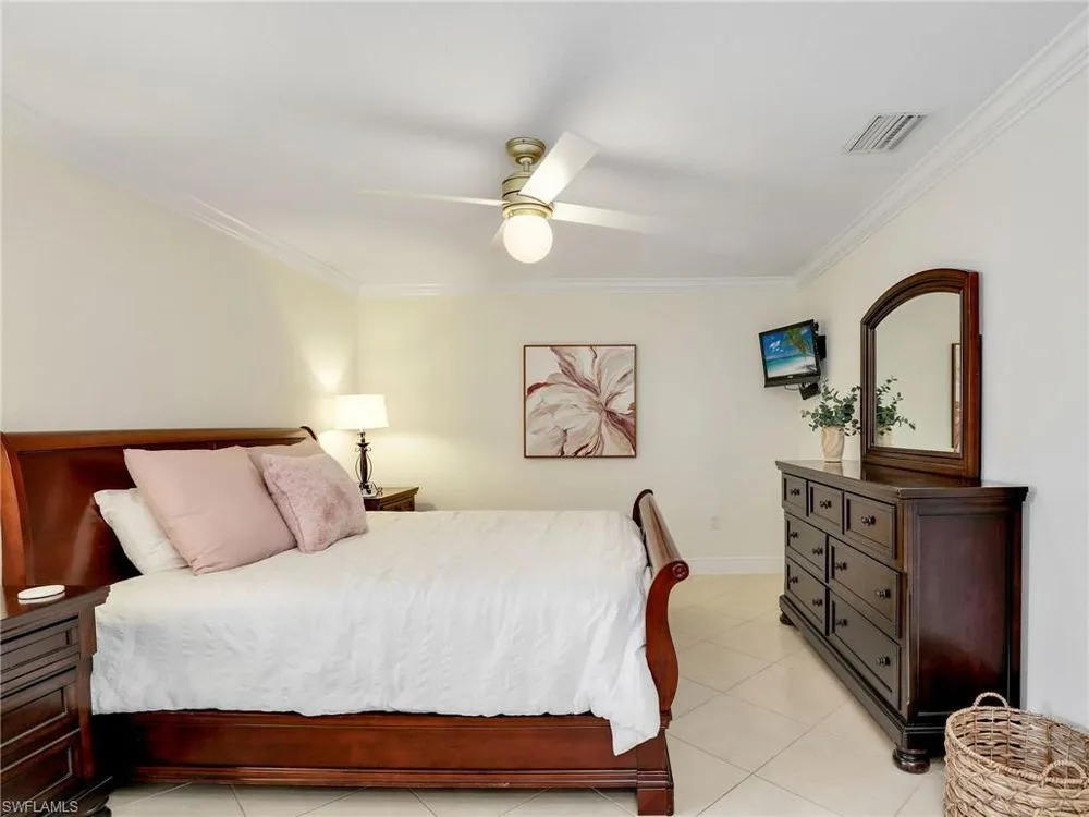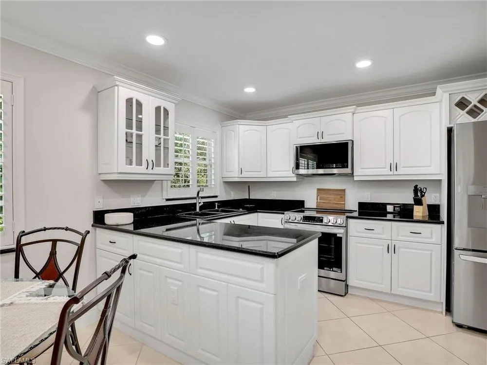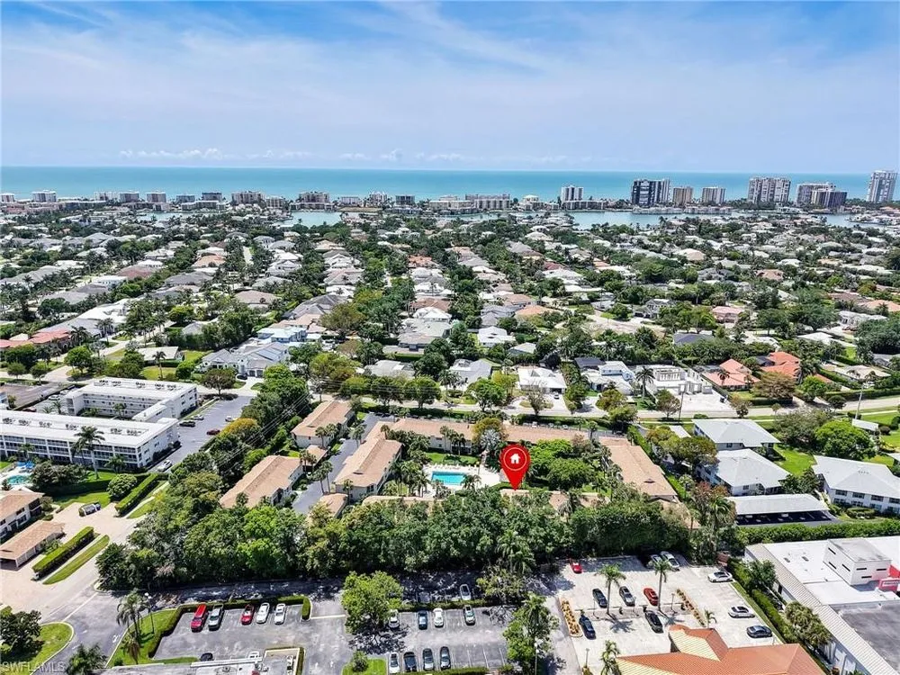 Located in the Navarra Club just minutes from Naples beaches and Fifth Avenue South, this fully furnished second-floor 2 bedroom, 2 bathroom condo is leased from October 1 through May 31, generating $30,100 in net seasonal income. Ideal for seasonal owners looking to offset costs or enjoy future rental income. The unit has been freshly painted and features tile flooring, crown molding, new recessed lighting, ceiling fans, and plantation shutters throughout. The kitchen includes granite countertops, classic white cabinetry, an eat-in area, and all new LG stainless appliances installed in May. Both bathrooms also feature granite and matching cabinetry. The primary suite includes two closets, one walk-in, and an en-suite bath with frameless walk-in shower. The guest room is adjacent to a full bath with tub/shower combo. The enclosed lanai adds usable year-round space with its own air vent. Water heater replaced in 2022. Community amenities include a pool, spa, grilling area, cabana, and private beach access with parking and bathrooms amenities for a small fee.