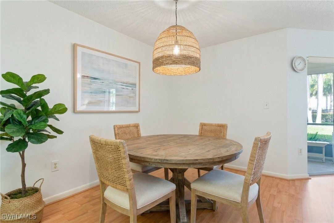 Welcome to an exceptional opportunity in the highly desirable community of The Moorings. This spacious two bedroom, two bathroom condo is located in a smaller complex of just 33 units and offers 1,350 square feet of living space. The western exposure offers plenty of natural light throughout the condo. The thoughtfully designed layout includes a large formal dining and living area along with a breakfast nook, providing ample space for both everyday living and entertaining. The split floor plan ensures maximum privacy for you and your guests. The generously sized guest bedroom easily accommodates two queen-sized beds, while both bedrooms feature walk-in closets for excellent storage. The unit features newer windows and sliders and a large lanai overlooking the courtyard has been enclosed with sliders so that you can enjoy the lanai all year around. This condo is being offered furnished, turnkey for your convenience. Enjoy the benefits for first floor living knowing that this building is very elevated and has been high and dry throughout the storms as it is not in a flood zone (X500) and still offers the benefits of being west of 41 and close to the beach. The Navarra Club has a pool, spa, tiki hut and grill area for residents to enjoy. This unit comes with a carport, storage locker and a newer in-unit washer and dryer. As a resident of The Moorings, you’ll have the option to join the private beach park for a modest annual fee. With world-class shopping and dining nearby—including Downtown Naples, Venetian Village, and Waterside Shops—your perfect Naples lifestyle awaits. What more are you waiting for? Come get your slice of paradise today!