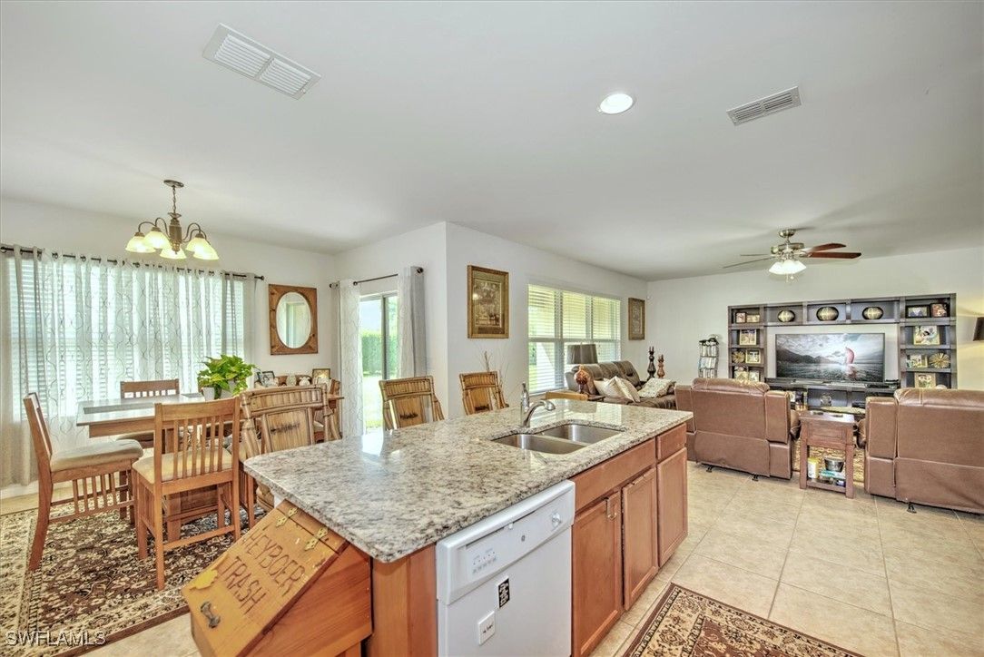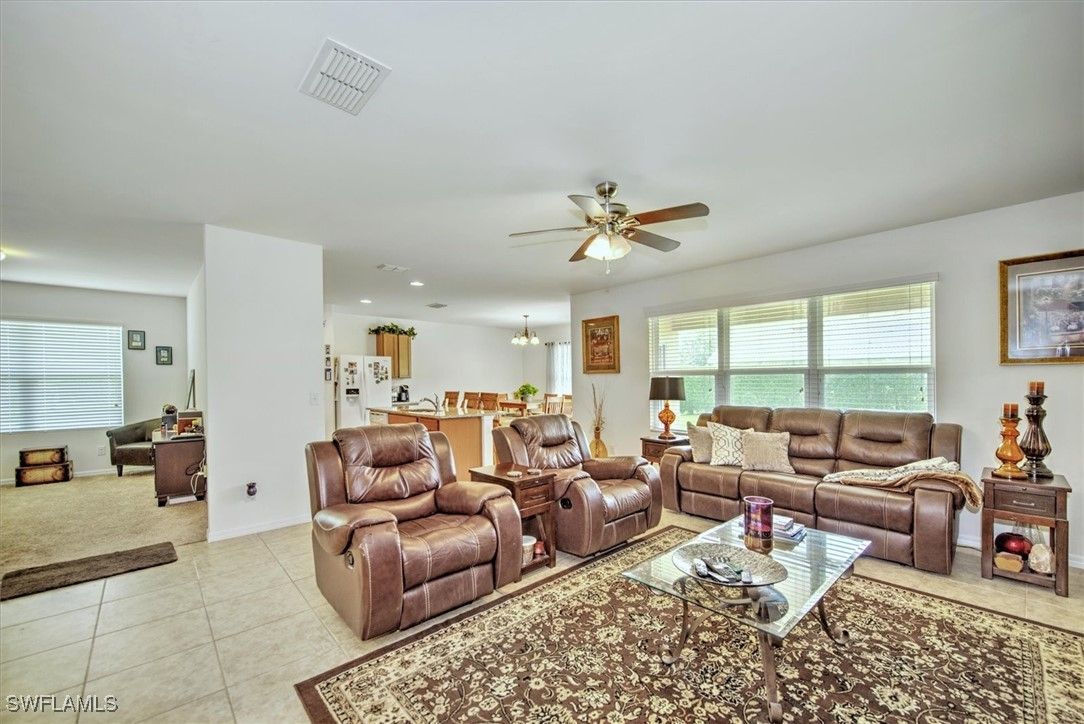Fantastic buy for the size and location!! Seller Financing Available. Discover the perfect blend of luxury and community living in this spacious Cairn floor plan nestled within the scenic Cascades at River Hall. Situated on a corner lot overlooking a lakeview preserve, this home offer ideal setting for adding a pool or extended lanai effortlessly. No hurricane damage here! No flooding here! Spanning 2,090 square feet under air, the home features 3 bedrooms, den, 2 baths, 2 car garage, and a covered open lanai. Upon entry through the spacious foyer, a well-appointed layout unfolds with two guest rooms and a bath conveniently located to the right of entry, along with a dedicated laundry area. Continuing down the hall leads to a versatile den, ideal for a home office or additional living space. The heart of the home opens up into a bright and airy living, dining and kitchen area. The kitchen boasts GE appliances, a counter height granite island with ample seating, generous counter space and a walk in pantry. The adjacent dining area flows seamlessly onto the covered lanai, offering tranquil views of the waterfront preserve. Retreat to the expansive main suite, comfortably accommodating a king-size bedroom set. The main bath features double sinks, a spacious shower and an oversized walk-in closet, ensuring ample storage and comfort. Additional storage closets are available off of the entry hallway. Cascades at River Hall presents an unparalleled 55+ active community lifestyle, complete with resort-style amenities such as a pool, hot tub, BBQ Grills, ample deck seating, pickleball courts, tennis courts, bocce ball courts, a clubroom for activities, exercise and yoga rooms and extensive walking and biking trails. Conveniently located east of Downtown Fort Myers River District, with easy access to I-75 just 7 miles away with a wealth of shopping, dining and cultural options, this home offers both luxury and convenience in one remarkable package. New hot water heater, new washer & dryer, new refrigerator, water filtrations system and new garage door drive system. Homebuyer warranty is also included for peace of mind.