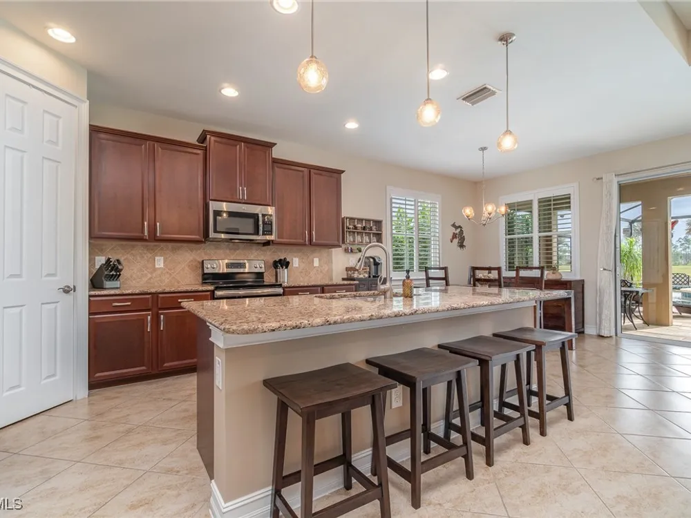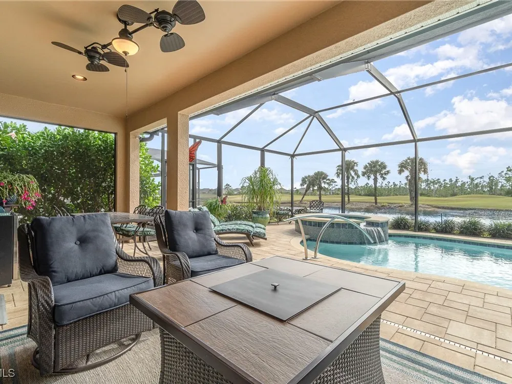 Stunning Golf & Lake Views | Oversized Saltwater Pool | Entertainer’s Dream - Welcome to your private paradise in Magnolia Landing — a beautifully upgraded and rarely available 3-bedroom + den, 3-car garage, pool/spa home offering breathtaking golf and water views, enhanced privacy, and luxury finishes throughout. Perfectly positioned alongside a tranquil preserve with expansive views of the lake and 11th green, this serene retreat is everything you’ve been waiting for. From the moment you step inside, you’re greeted by an open-concept design and triple sliders that frame the sparkling oversized saltwater pool and panoramic views beyond. Designed for effortless indoor-outdoor living, the screened-in lanai features an expansive covered area ideal for sunset soirées, weekend pool parties, or simply unwinding in peace. The upgraded pool equipment ensures easy maintenance and year-round enjoyment. The lanai is oversized providing plenty of room for your BBQ and pool toys. Inside, elegant plantation shutters, hard-surface flooring throughout, and wood-look porcelain tile in the bedrooms combine style and durability. The impressive kitchen boasts 42” cabinetry, granite countertops, a stylish backsplash, and an upgraded walk-in pantry for exceptional storage. The spacious primary suite is a luxurious escape with walk-in closets and a spa-like ensuite featuring a walk-in shower. Both bathrooms include walk-in showers, and thoughtful upgrades continue into the laundry room with abundant cabinetry, a utility sink, and a Bluetooth washer and dryer. The home also features tray ceilings, an Arlo security system, and one side of the home offers added privacy with uninterrupted nature views. The oversized 3-car garage includes an epoxy-finished floor and overhead storage, perfect for organization and convenience. This gorgeous property is situated on a 65' wide lot with a deep driveway offering plenty of parking for friends and family. Located in the highly sought-after Magnolia Landing, a premier gated community offering optional golf, two pools, pickleball, bocce, shuffleboard, a fitness center, and more — this home delivers true resort-style living. A rare opportunity like this doesn’t come along often — schedule your private showing today!