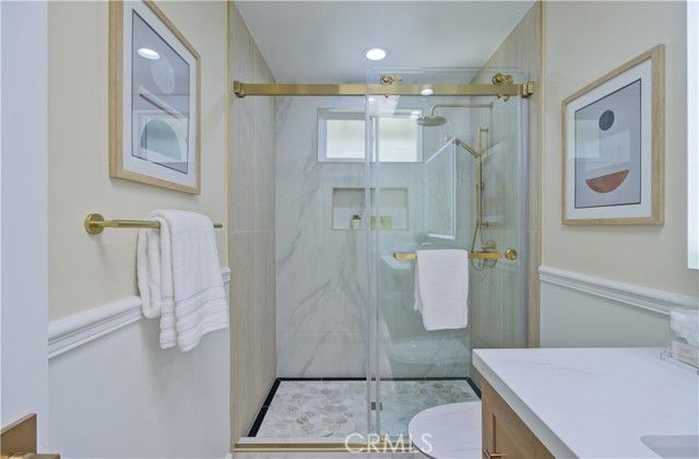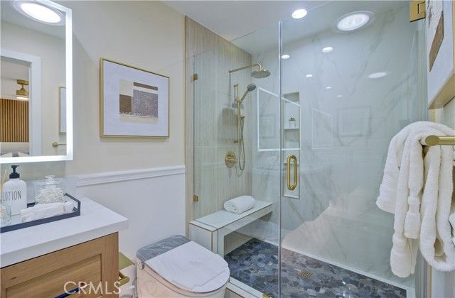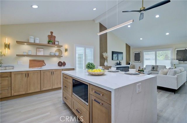 ALL NEW! ALL BRAND NEW! 3BED and 2BATH with top brand of all New appliances with VIEW and VIEW Experience the ultimate in elevated retirement living in this rare, expanded 'La Reina' end-unit, a step-free masterpiece featuring dual fireplaces, a massive chef’s island with a VIEW, and high-end modern upgrades including a 220V EV-ready, 2 car garage with EPOXY FLOORS. Your retirement lifestyle through every detail. This home is thoughtfully upgraded for a seamless, high-end experience. To complete the ultimate self-care routine, a premium whole-home WATER SOFTENING SYSTEM ensures every drop of water is gentle on your skin and home. Enjoy the VIEW from the kitchen and back enclosed patio with WINE COOLER. Step inside and you'll be welcomed by a spacious living room and separated primary master with private bathroom ,walking closet and a very private fire place for your special taste. TWO FIREPLACES and 3BED and 2BATH! Kitchen Features all brand new Stainless Steel Appliances with amazing size of ISLAND creating a delightful space for meal preparation and hosting gatherings. The home showcases natural color of laminate flooring throughout, Offering comfortable feel, the most modern style of bathrooms and kitchen. This home offers a luxury life style of your retirement. Living in Laguna Woods Village provides a multitude of exceptional amenities that cater to an active and vibrant lifestyle. Enjoy access to a 27-Hole Golf Course, Perfect for golf enthusiasts looking to indulge in their favorite Sport. engage in friendly competition on the pickleball and tennis courts. The community boasts 7 Clubhouses, where you can participate in a variety of recreational activities. Clubhouse 4 stands out, hosting amazing classes in art, ceramics, woodshop, jewelry-making, and sewing, fostering creativity and personal growth. With its proximity to Laguna Beach, You'll have easy access to stunning coastal scenery and the vibrant beach culture. Laguna Woods Village is a close-knit and welcoming community, offering numerous clubs and interest groups catering to a wide range of hobbies and interests. Whether You're looking to socialize, stay active, or explore new passions, this community provides a fulfilling and enriching lifestyle.