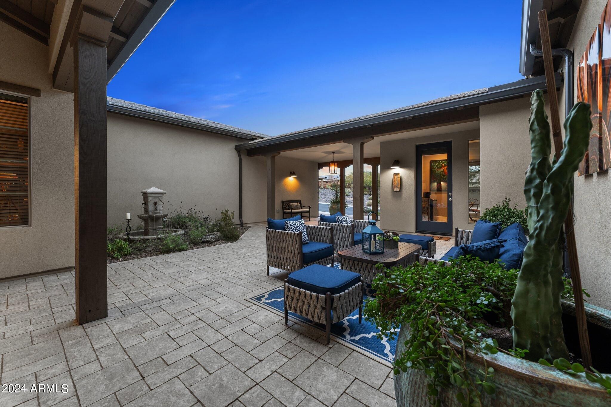 The kind of home that feels intentional from room to room, this property blends refined design with a relaxed, easygoing warmth. The main living spaces move with a smooth, natural flow, open enough to feel connected while still allowing each area to carry its own sense of purpose. The kitchen has a modern, tailored look with sleek surfaces, quality appliances, and cabinetry that feels curated and thoughtfully designed. It is a space that feels just as comfortable during quiet mornings as it does when sharing an evening with friends. The main home includes two bedrooms, two and a half bathrooms, and an office that feels like a natural extension of the living space rather than a separate corner. It offers a comfortable place for work, planning, or creative projects. The primary suite has a calm, grounded feel, with a spa-inspired bathroom featuring dual vanities, a separate shower, and a soaking tub that invites you to slow down and unwind. The guest suite includes its own private bath, giving visitors a sense of independence and comfort during their stay. The separate-entry casita is another standout element, ideal for longer visits, privacy-minded guests, or a flexible space that can adapt as life evolves. Outdoors, the private courtyard sets a welcoming tone on arrival, while the fenced backyard offers a relaxed environment for evenings outside, casual gatherings, or simply enjoying a quiet moment at the end of the day. A three car garage adds to the home's overall livability, providing extra room for vehicles, storage, projects, or hobbies while keeping everything feeling organized and thoughtfully planned. Every detail in this home feels considered and well-placed, polished without feeling formal, and luxurious in a way that feels natural and livable.