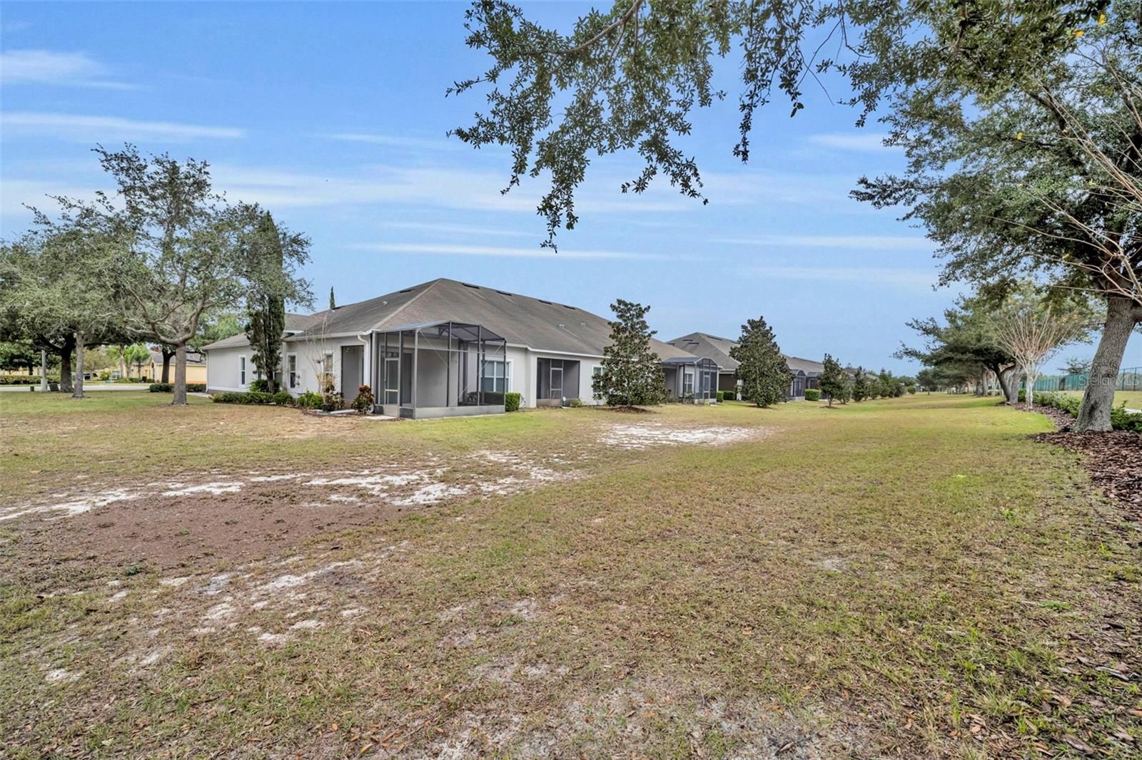 Walking Distance to the Clubhouse! This beautifully maintained 2-bedroom, 2-bath end-unit villa sits on a premium lot with no rear neighbors, offering extra privacy and peaceful views. Start your day or unwind in the evening on the lanai while enjoying unobstructed south facing lanai with views of west-facing sunsets. Perfect for year round enjoyment. Inside, the home feels fresh and inviting with new paint and engineered hardwood floors throughout the main living area. The primary suite features a walk-in closet and a glass-enclosed shower. The open living and dining areas flow nicely and are perfect for everyday living or entertaining. The kitchen includes wood cabinets, granite countertops, stainless steel appliances, and a convenient breakfast bar. A flexible bonus room makes a great home office, den, or hobby space. The HOA covers exterior maintenance, lawn care, Spectrum cable, and scheduled painting—making for an easy, low-maintenance lifestyle. (New Roof Scheduled for 2026 - HOA) Heritage Hills offers fantastic amenities like a heated pool and spa, tennis and pickleball courts, bocce ball, shuffleboard, basketball, and a putting green. The clubhouse includes a fitness center, golf simulator, craft and card rooms, a library, and plenty of clubs and activities. Located close to shopping, dining, medical facilities, golf, and major highways, this villa is a great find in the heart of Clermont.