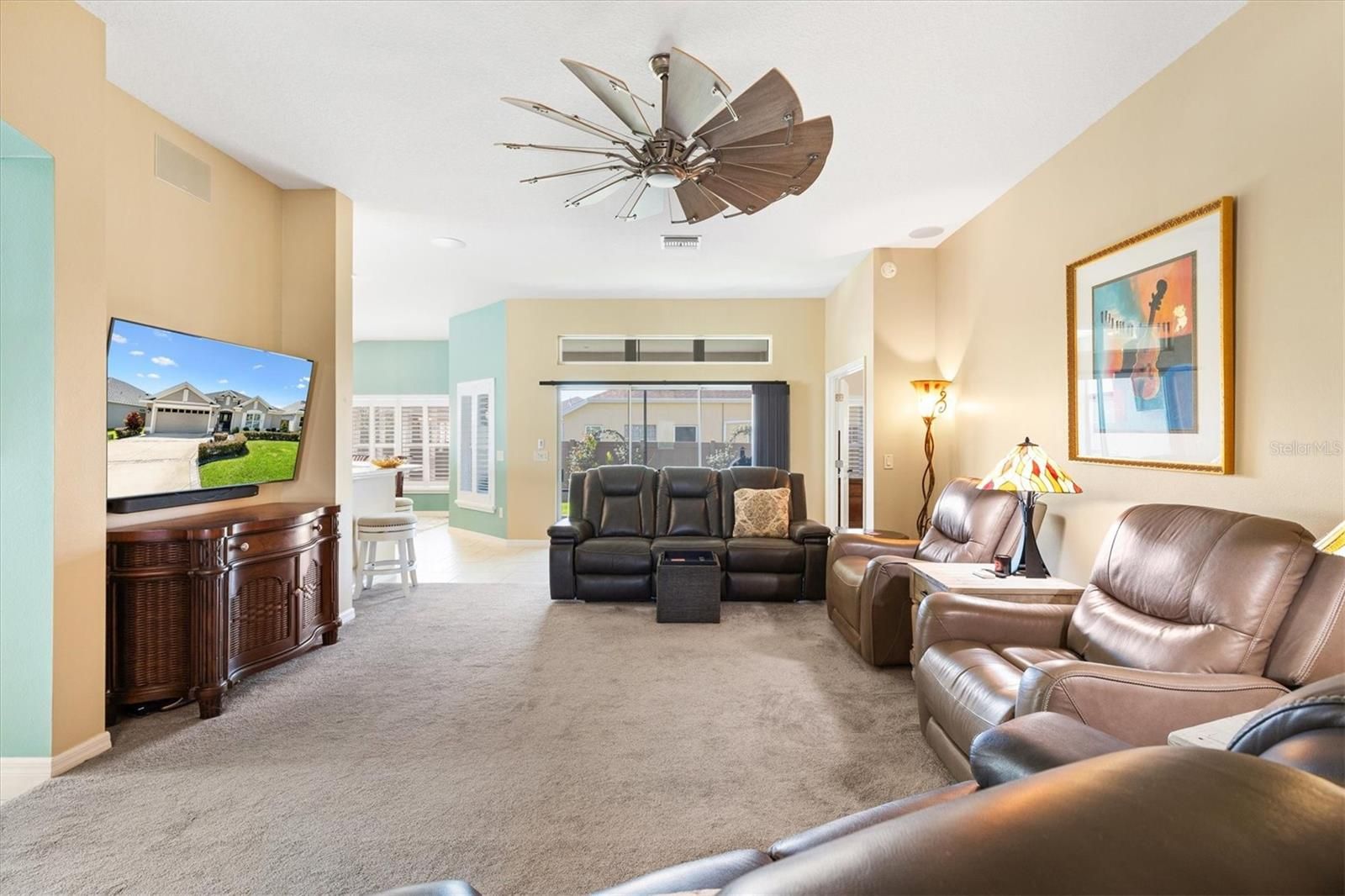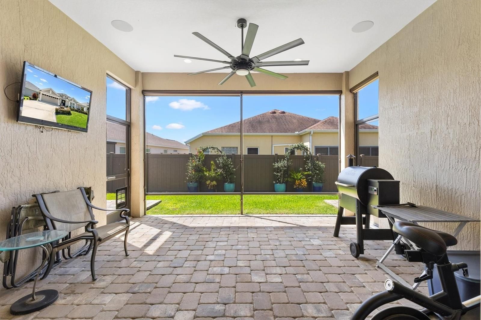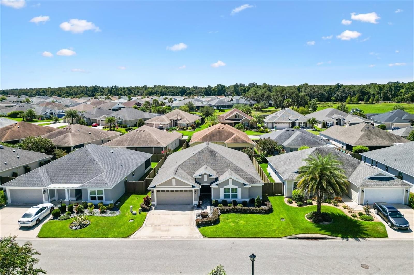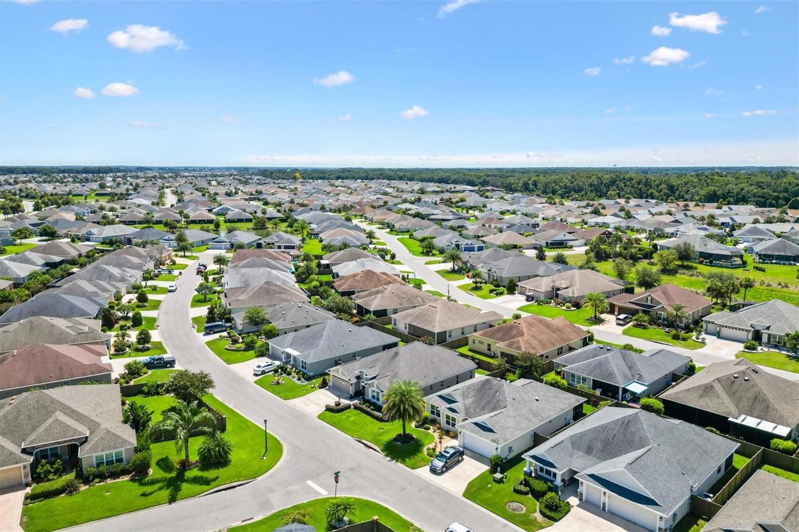 Veranda with Privacy Courtyard • Upgraded 3-Bedroom Holly Model • Move-In Ready. Don't miss this beautifully upgraded Holly Veranda located in the desirable Village of Fenney in The Villages, Florida. Designed for privacy and comfort, this 3-Bedroom, 2-Bathroom Veranda home features a courtyard wall that creates a private outdoor retreat, perfect for relaxing or entertaining. Step inside to discover a spacious and thoughtfully designed floor plan with elegant upgrades throughout. The large kitchen is ideal for everyday living and hosting gatherings, showcasing a curved peninsula, center work island, built-in desk, granite countertops, and pull-out shelving for practical convenience. The dining room is separate from the living area, creating defined yet connected spaces for entertaining and relaxation. The Primary Suite offers two walk-in closets with custom built-ins and a luxurious ensuite bath featuring a Roman shower, split dual vanities, and a separate water closet. The guest suite is located on the opposite side of the home for privacy, with the second and third bedrooms thoughtfully separated by the guest bath. The third bedroom features a tray ceiling and walk-in closet, making it a versatile space for guests or an office. Enjoy outdoor living at its best. Just beyond the screened lanai, you’ll find two patios, including one with a custom hardscape fire pit—perfect for quiet evenings or entertaining under the stars. The private courtyard wall adds a sense of seclusion rarely found in veranda homes, while still allowing open-air enjoyment of the Florida lifestyle. The laundry room is generously sized, with a cabinet-enclosed utility sink, folding station, and upper cabinetry for extra storage. The air-conditioned garage ensures comfort and practicality year-round. Other highlights include neutral color palette, high ceilings, gas utilities, gutters, and added insulation for energy efficiency. This home is move-in ready, meticulously maintained, and loaded with thoughtful upgrades that elevate both style and function. Perfectly situated in one of the most picturesque and natural settings in The Villages, the home is conveniently located near some of Fenney’s best amenities: Blue Heron Postal & Recreation Center (0.6 mi), Fenney Grill (0.6 mi), Spanish Moss Sports Pool & Recreation Center (0.8 mi), and Red Fox & Gray Fox Executive Golf Courses (1.2 mi).This upgraded Holly Veranda delivers the rare combination of privacy, convenience, and elegant design, all within easy reach of dining, recreation, and golf. Discover why the Village of Fenney is one of The Villages’ most sought-after neighborhoods, where nature, lifestyle, and comfort blend perfectly.