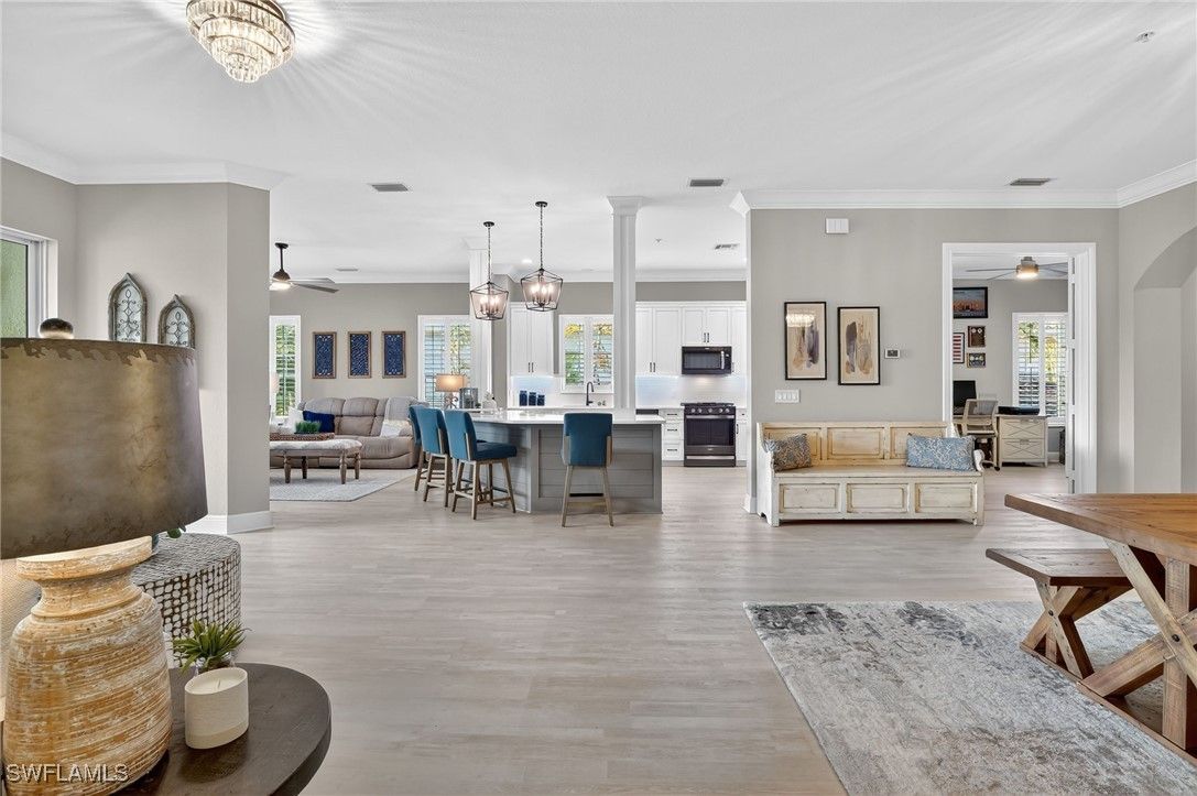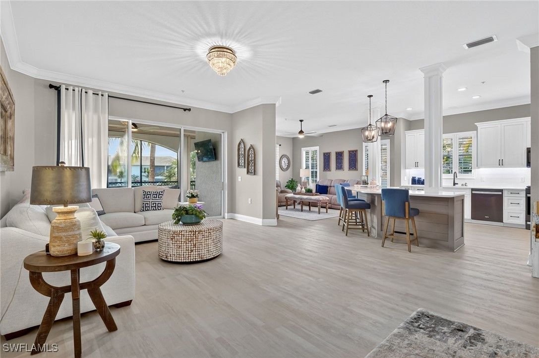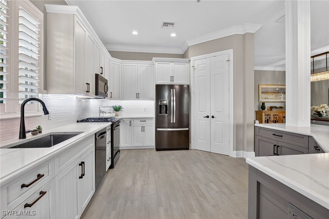 Experience luxury and comfort in this beautifully remodeled 3-bedroom+ Den, 3-bath coach home located in the desirable Serena neighborhood of Fiddler’s Creek. Situated on the 2nd floor with the convenience of a new private ELEVATOR, this light-filled residence boasts expansive water views from the spacious screened-in lanai—a perfect retreat for relaxing or entertaining. Step inside to find brand flooring, a remodeled open-concept kitchen with an oversized island offering abundant seating, striking quartz countertops, black stainless-steel appliances, and crisp white cabinetry. The primary suite is a luxurious escape, featuring impact windows, a fully remodeled bath with marble flooring, dual vanities with elegant cabinetry, and a large glass-enclosed shower. Two spacious guest suites each offer en-suite baths, ensuring comfort and privacy for visitors. Additional highlights include Storm Smart screens on the lanai, whole-home GENERATOR, new lighting throughout, 2-car garage with storage racks and garage flooring, a spacious office/den, and large laundry room with laundry tub and plenty of storage. Close to the Serena community pool with a chiller and heater to keep the water temp comfy all year long. Residents of Fiddler’s Creek enjoy access to world-class amenities, including a 54,000-square-foot Club & Spa with two on-site restaurants, resort-style pools, fitness center, tennis, pickleball, and bocce courts. Optional memberships are available for golf, beach, and boating. Ideally located just minutes from the white-sand beaches of Marco Island, downtown Naples, and an array of shopping and dining destinations. This home is the perfect blend of style, functionality, and resort living.