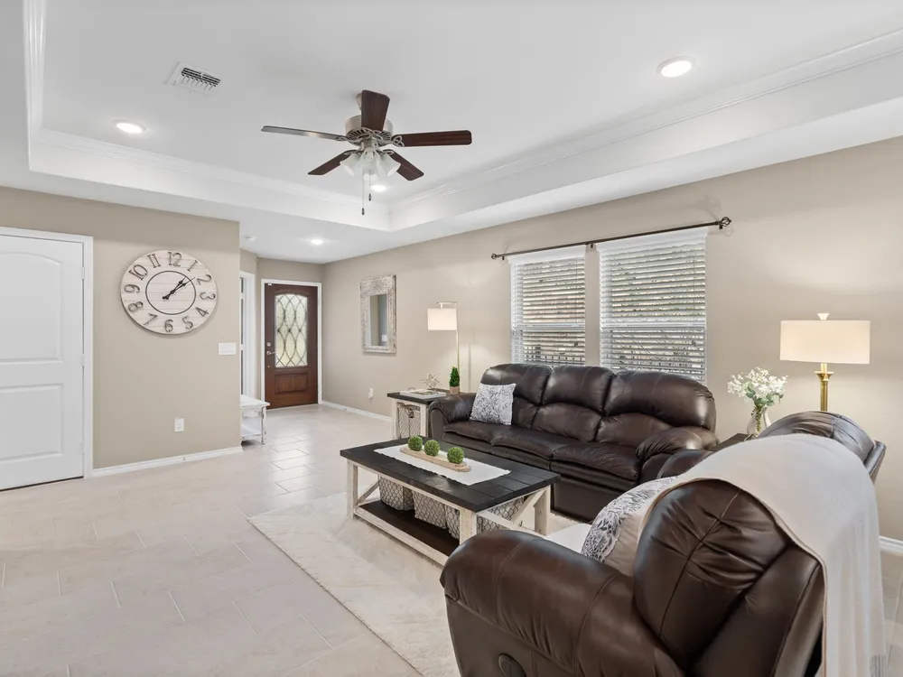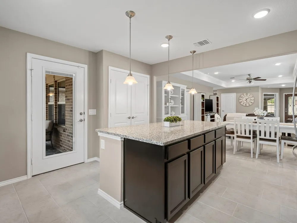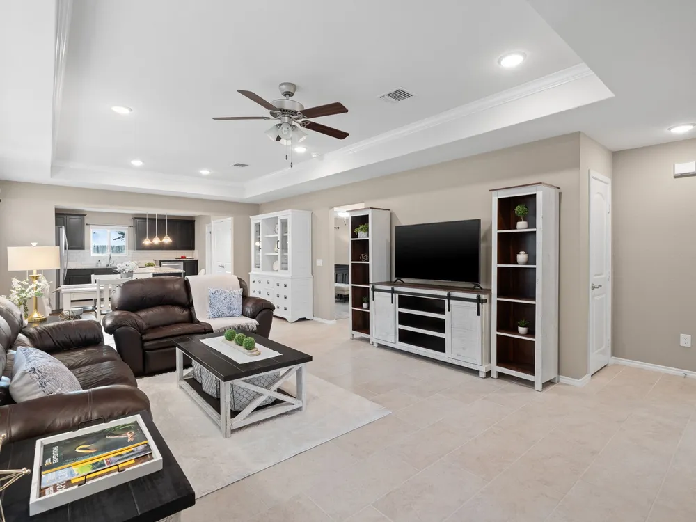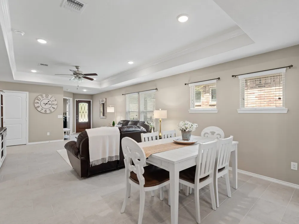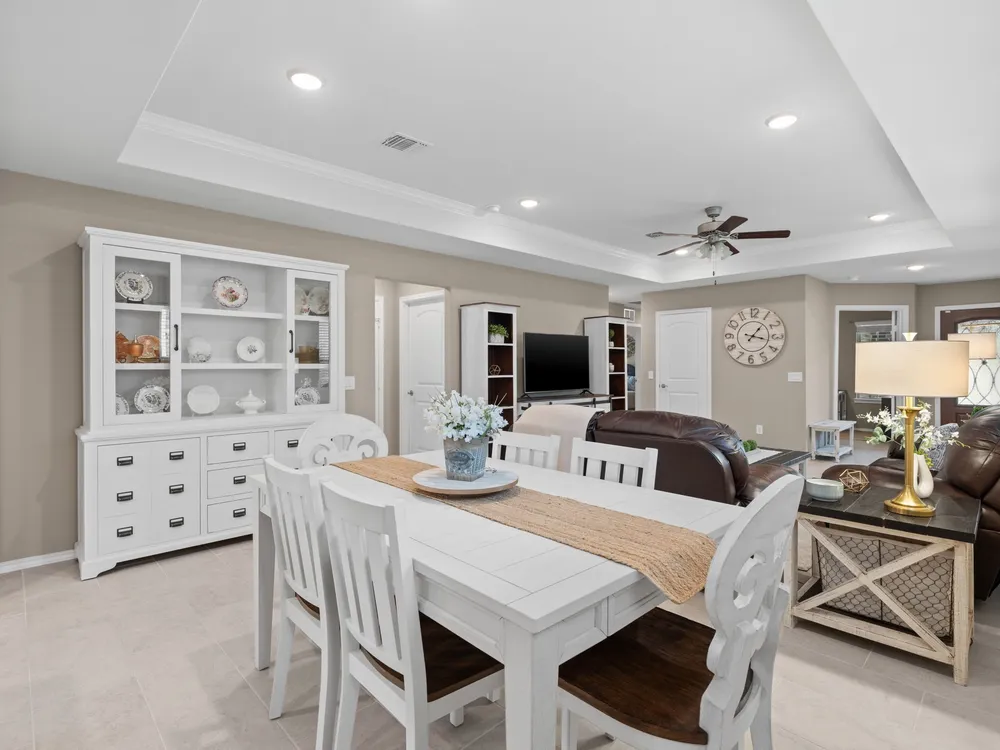 - Crown Molding, Double Vanity, Handicap Access, High Ceilings, Kitchen Island, Kitchen/Family Room Combo, Tub Shower, Window Treatments, Kitchen/Dining Combo, Living/Dining Room, Programmable Thermostat