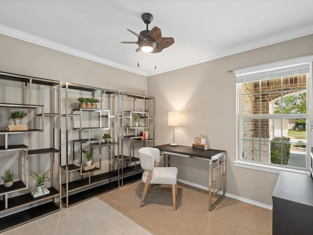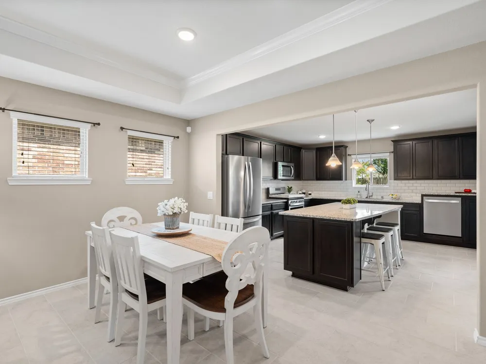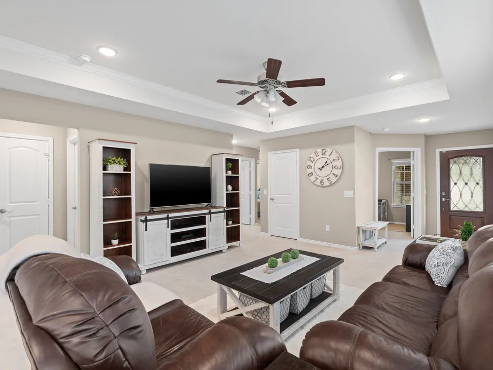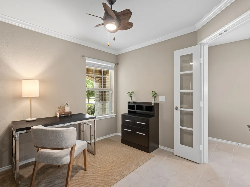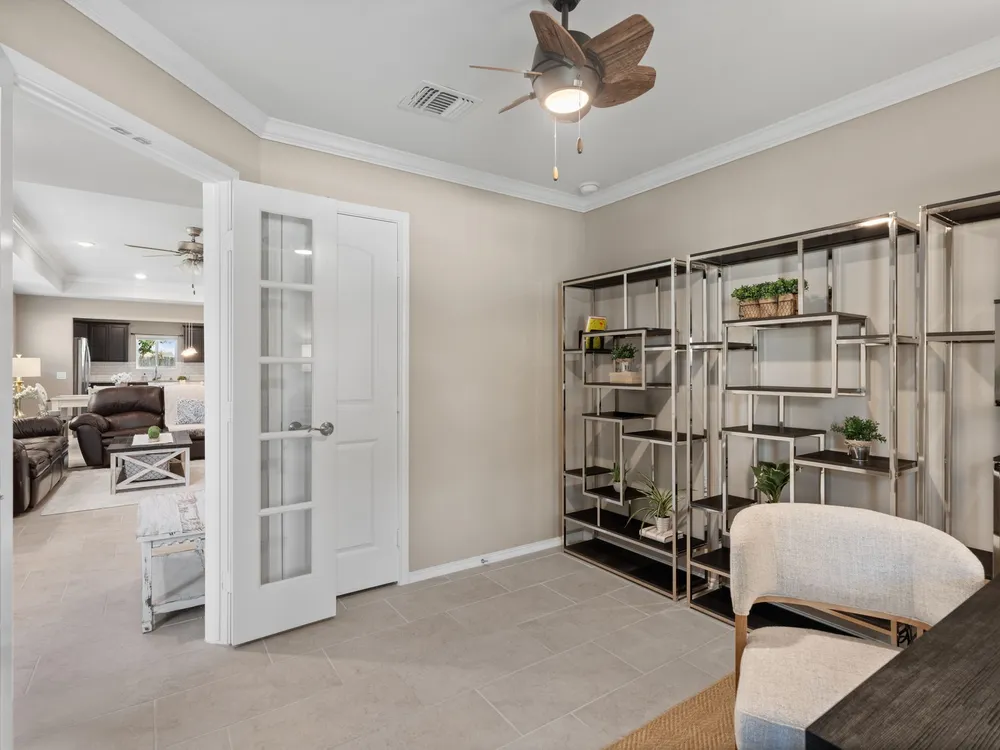 - Crown Molding, Double Vanity, Handicap Access, High Ceilings, Kitchen Island, Kitchen/Family Room Combo, Tub Shower, Window Treatments, Kitchen/Dining Combo, Living/Dining Room, Programmable Thermostat