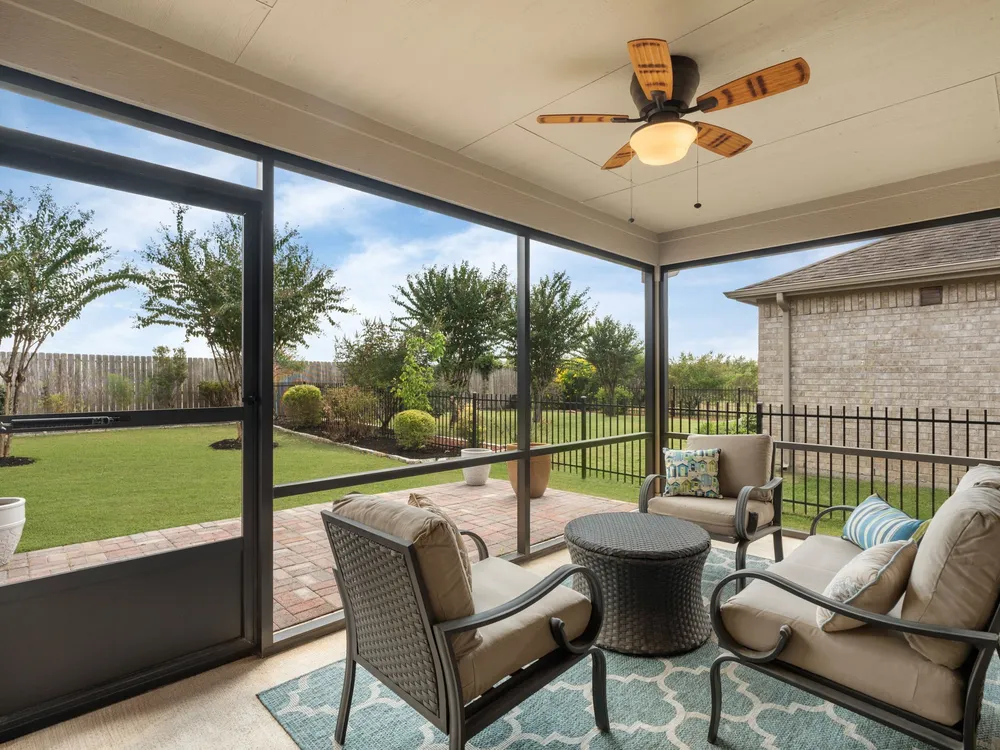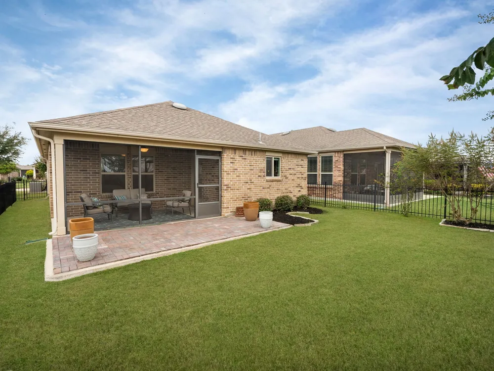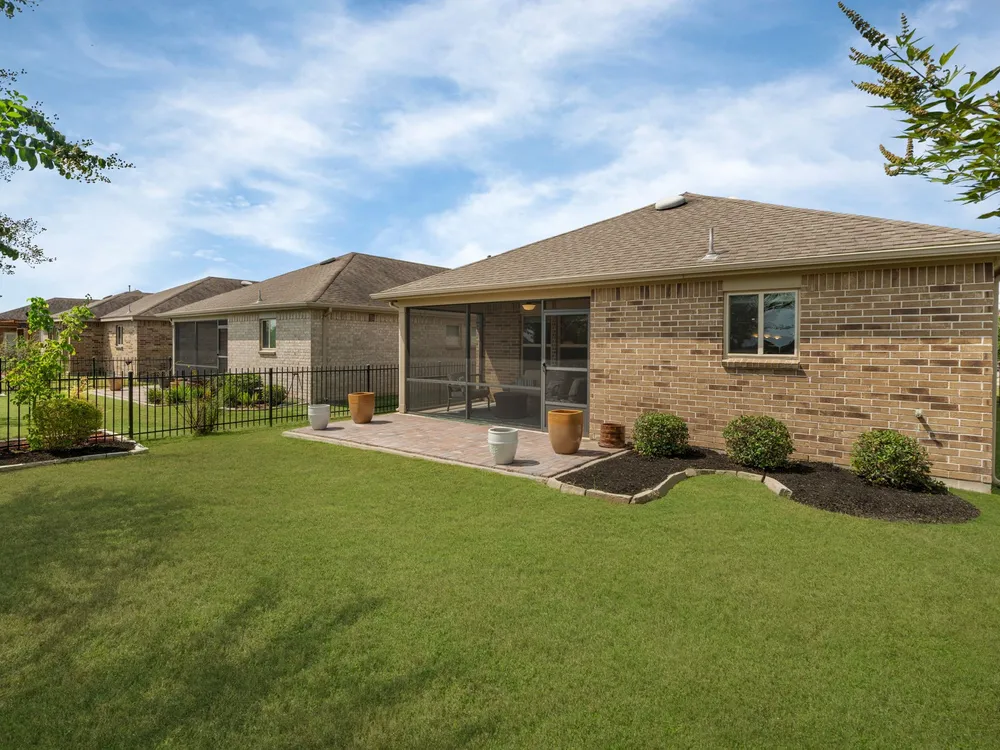 Unique One-of-a-kind home — Only Garden Series home currently on the market w/private backyard! Highly sought-after 2BR/2BA Taft + Study w/French doors & 4-sides brick. Exterior showcases upgraded design blending brick & stone w/ upgraded mortar for standout curb appeal. Inside, you’ll find thoughtful upgrades. Tray ceilings w/crown molding creates an airy, inviting feel. Kitchen is a true delight w/large island, upgraded granite countertops, and 3x6 offset Bone Bevel backsplash, all complemented warm cabinetry—perfect for cooking. Serene primary suite invites you to unwind while overlooking your private oasis. Ensuite bath features tiled walk-in shower w/bench, double sinks & spacious walk-in closet. Outdoors extended patio with pavers and roomy 15x8 screened-in porch offers tranquil spot for morning coffee, surrounded by lush landscaping & three graceful crepe myrtles. Added bonuses include full sprinklers, gutters, laundry rm cabinets, gas stub-out @ patio and all appliances convey.