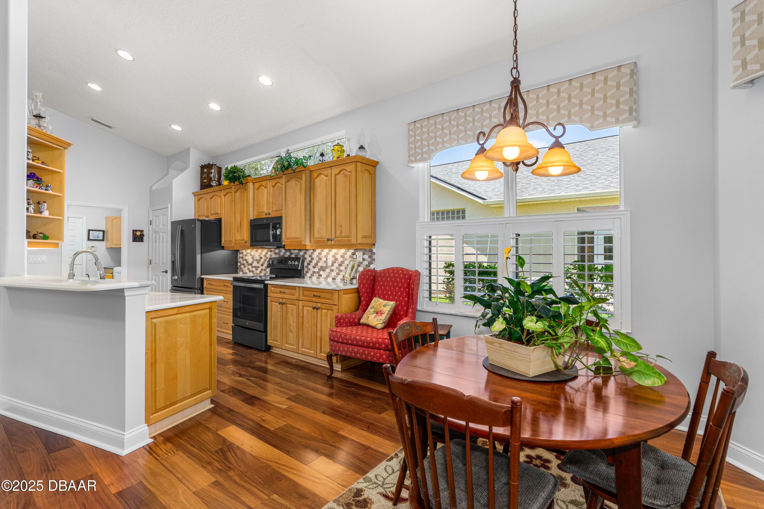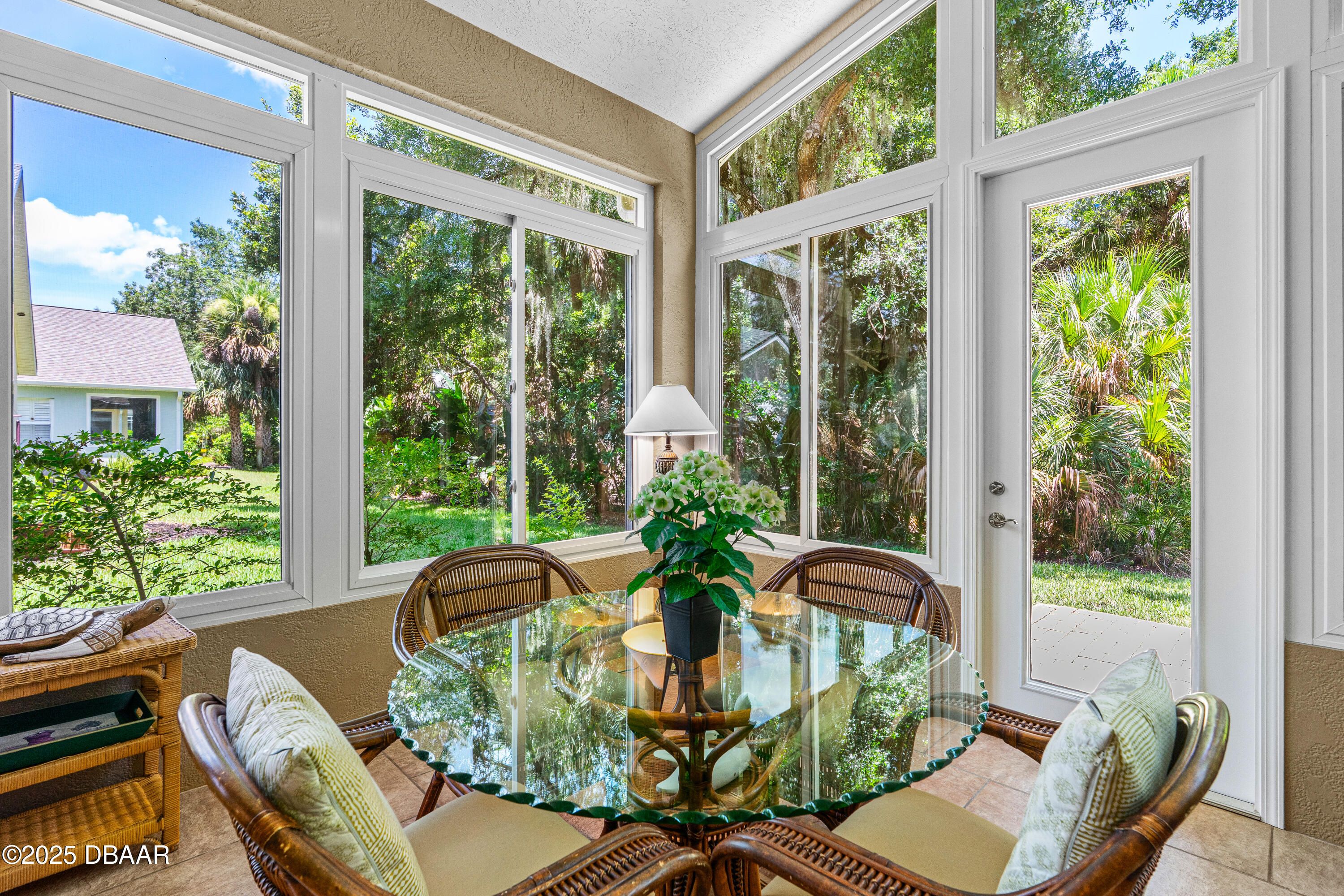 NEW PRICE!Halifax Plantation Golf Community Custom Home offers 3 Bedrms 2 Baths, Oversized Garage. This home has been designed with many interesting architectural features and currently upgraded Kitchen with beautiful wood cabinets, wine rack and gorgeous quartz countertop and tiled back splash. Guest Bath with new cabinets and counters, new mirrors, lights, fixtures and new tiled Shower and Glass Enclosure. Master Bath also completely updated with designer tile and new counters, mirrors, lights and fixtures. The 3rd Bedrm is used as Office with semi-built-in desk unit. Flooring throughout living area is Brazilian Cherry wood. Master Bedrm large enough for a relaxing sitting area. Most windows have plantation shutters. In the rear of the home you will find a breathtaking Sun Room with 2 Walls of windows and transoms . Wooded back yard for total privacy. A MUST SEE HOME! BUYER WILL RECEIVE $5000.00 CONTRIBUTION TO CLOSING COSTS IF CONTRACT ACCEPTED ON OR BEFORE NOVEMBER 30, 2025 in Tomoka and Bulow State Parks. Take a morning walk through the streets of Halifax Plantation and meet your neighbors and their dogs. Shopping in the Halifax Shopping Center with a Publix , Truist Bank, Gas Station, Dentist, Pizza Place etc. The Golf Club offers amenities Like Golf , Tennis and Pool. Some by membership others as Pay and Play. Come Dine or have a Snack and a Drink at the PUB and watch your favorite sport on the TV surrounding the inviting Bar. Meet your Neighbors at the Trivia night! Join a Book Club, Play Bridge or is Majong your thing? You will find it all in Halifax Plantation!