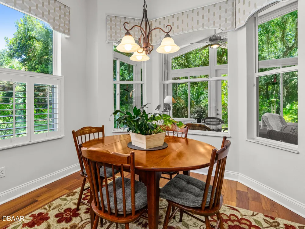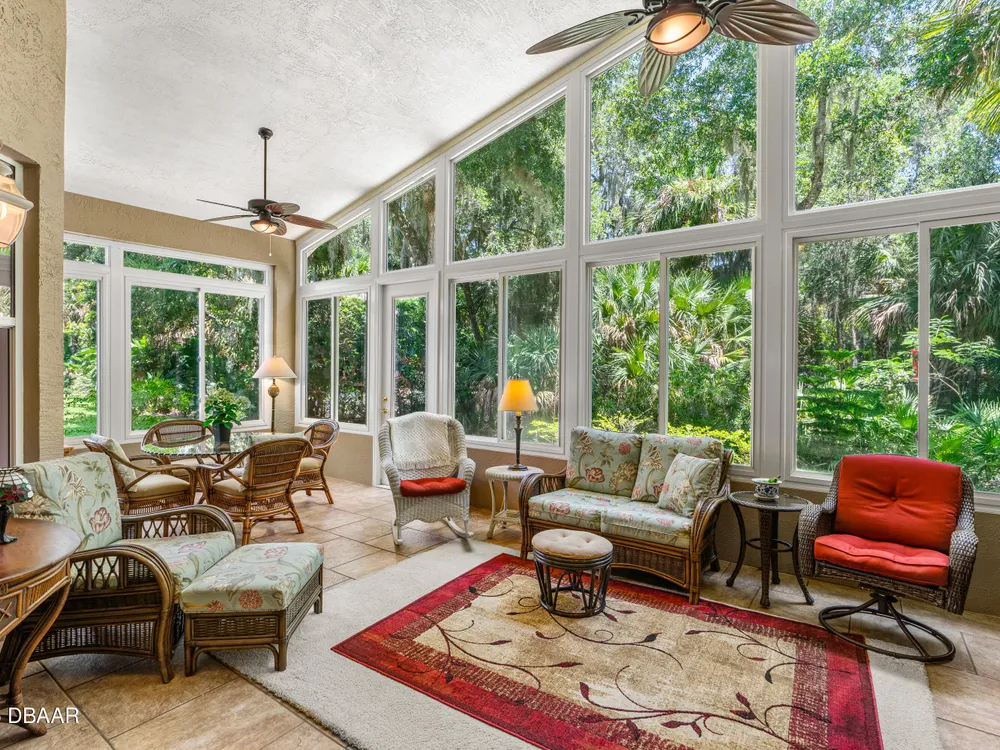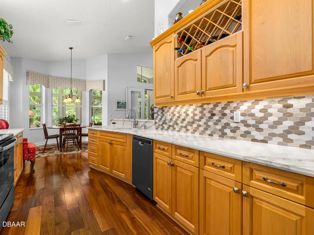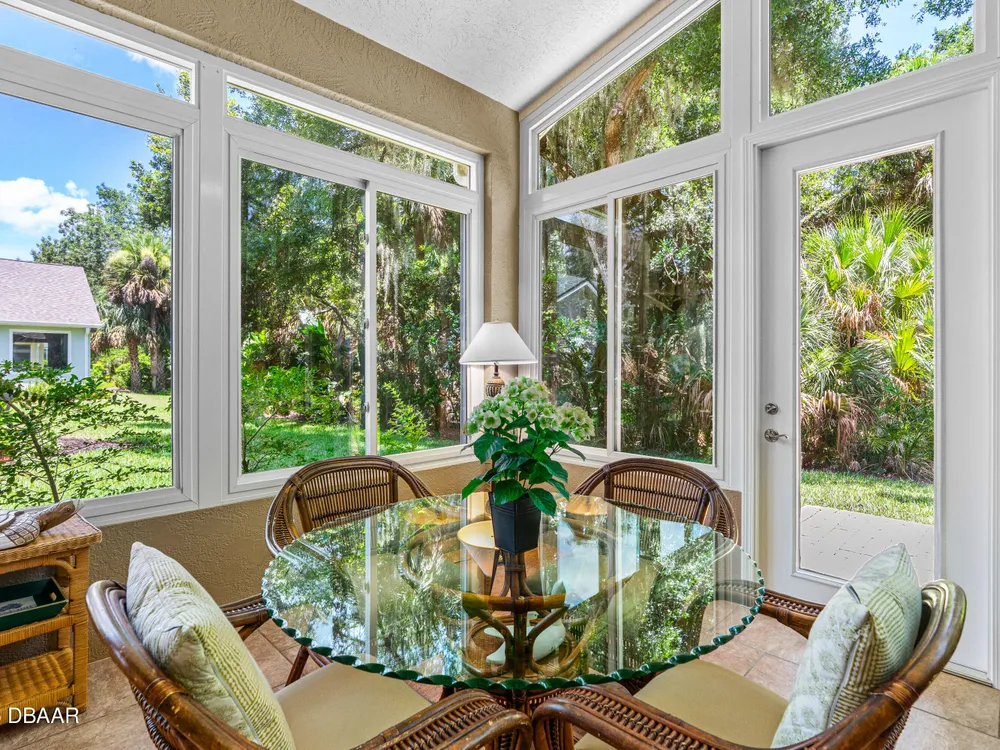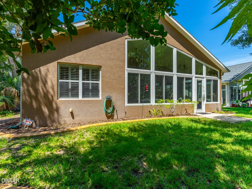 Halifax Plantation Golf Community Custom Home offers 3 Bedrms 2 Baths, Oversized Garage. This home has been designed with many interesting architectural features and currently upgraded Kitchen with beautiful wood cabinets, wine rack and gorgeous quartz countertop and tiled back splash. Guest Bath with new cabinets and counters, new mirrors, lights, fixtures and new tiled Shower and Glass Enclosure. Master Bath also completely updated with designer tile and new counters, mirrors, lights and fixtures. The 3rd Bedrm is used as Office with semi-built-in desk unit. Flooring throughout living area is Brazilian Cherry wood. Master Bedrm large enough for a relaxing sitting area. Most windows have plantation shutters. In the rear of the home you will find a breathtaking Sun Room with 2 Walls of windows and transoms . Wooded back yard for total privacy. A MUST SEE HOME! BUYER WILL RECEIVE $5000.00 CONTRIBUTION TO CLOSING COSTS IF CONTRACT ACCEPTED ON OR BEFORE NOVEMBER 30, 2025 in Tomoka and Bulow State Parks. Take a morning walk through the streets of Halifax Plantation and meet your neighbors and their dogs. Shopping in the Halifax Shopping Center with a Publix , Truist Bank, Gas Station, Dentist, Pizza Place etc. The Golf Club offers amenities Like Golf , Tennis and Pool. Some by membership others as Pay and Play. Come Dine or have a Snack and a Drink at the PUB and watch your favorite sport on the TV surrounding the inviting Bar. Meet your Neighbors at the Trivia night! Join a Book Club, Play Bridge or is Majong your thing? You will find it all in Halifax Plantation!