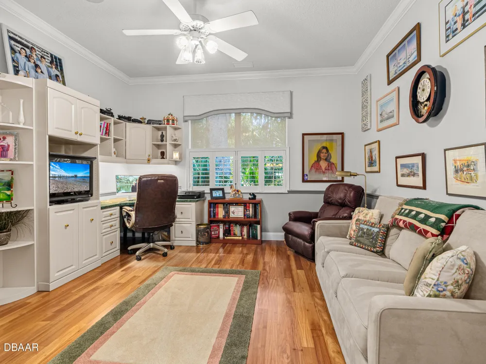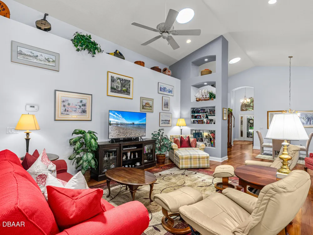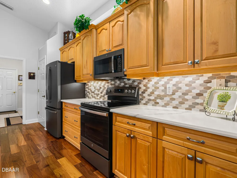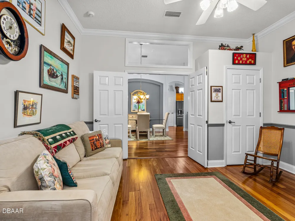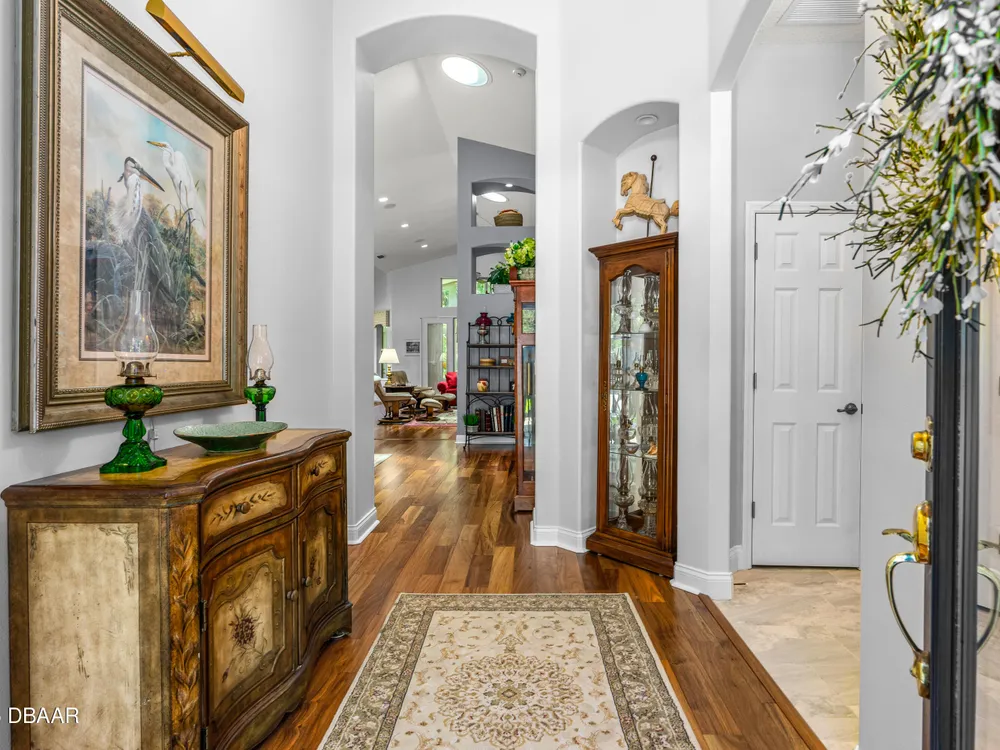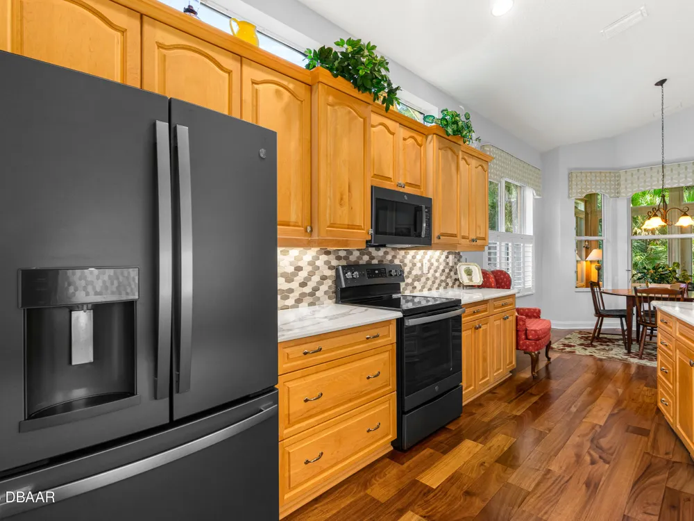 Halifax Plantation Golf Community Custom Home offers 3 Bedrms 2 Baths, Oversized Garage. This home has been designed with many interesting architectural features and currently upgraded Kitchen with beautiful wood cabinets, wine rack and gorgeous quartz countertop and tiled back splash. Guest Bath with new cabinets and counters, new mirrors, lights, fixtures and new tiled Shower and Glass Enclosure. Master Bath also completely updated with designer tile and new counters, mirrors, lights and fixtures. The 3rd Bedrm is used as Office with semi-built-in desk unit. Flooring throughout living area is Brazilian Cherry wood. Master Bedrm large enough for a relaxing sitting area. Most windows have plantation shutters. In the rear of the home you will find a breathtaking Sun Room with 2 Walls of windows and transoms . Wooded back yard for total privacy. A MUST SEE HOME! BUYER WILL RECEIVE $5000.00 CONTRIBUTION TO CLOSING COSTS IF CONTRACT ACCEPTED ON OR BEFORE NOVEMBER 30, 2025 in Tomoka and Bulow State Parks. Take a morning walk through the streets of Halifax Plantation and meet your neighbors and their dogs. Shopping in the Halifax Shopping Center with a Publix , Truist Bank, Gas Station, Dentist, Pizza Place etc. The Golf Club offers amenities Like Golf , Tennis and Pool. Some by membership others as Pay and Play. Come Dine or have a Snack and a Drink at the PUB and watch your favorite sport on the TV surrounding the inviting Bar. Meet your Neighbors at the Trivia night! Join a Book Club, Play Bridge or is Majong your thing? You will find it all in Halifax Plantation!